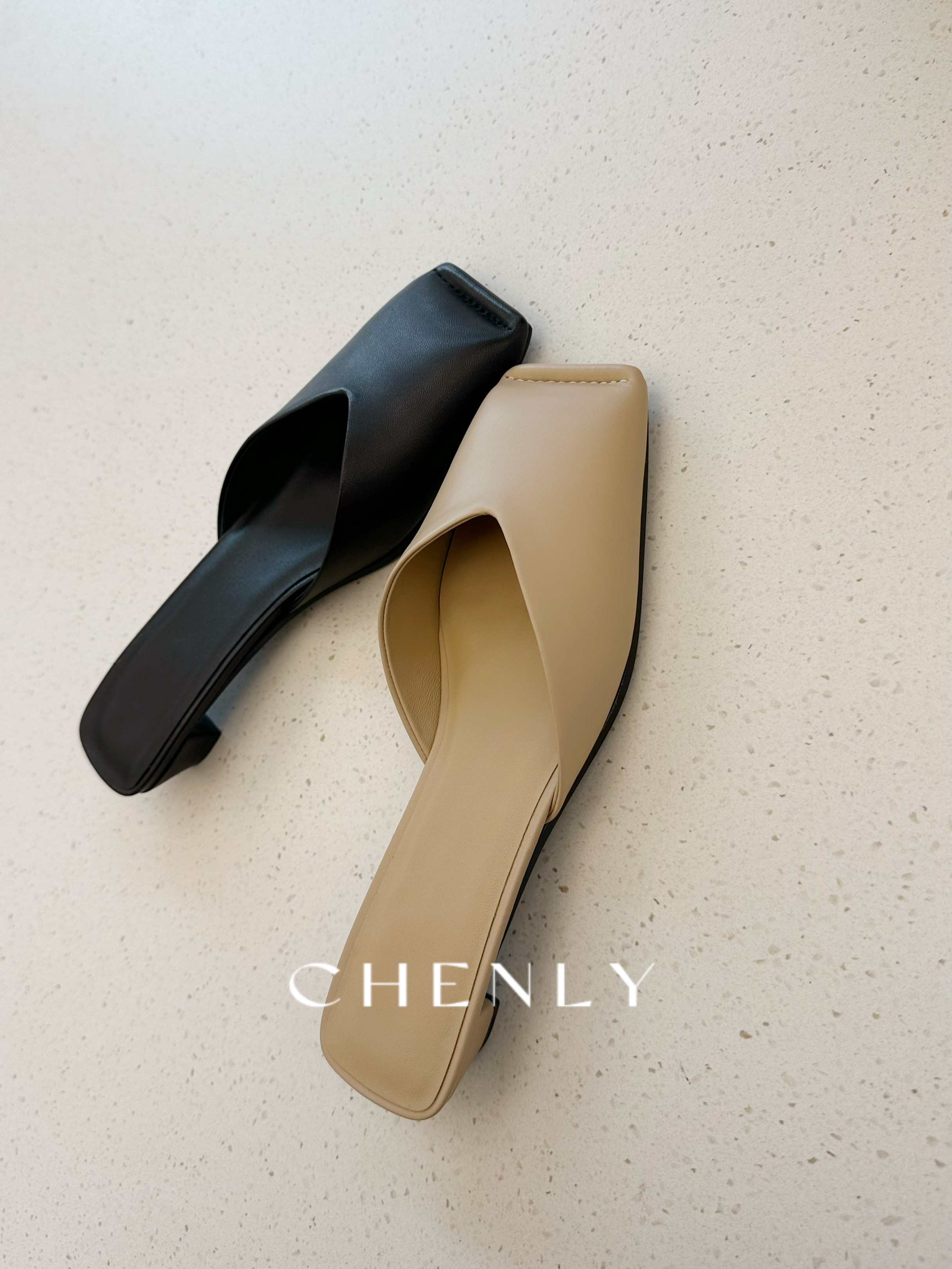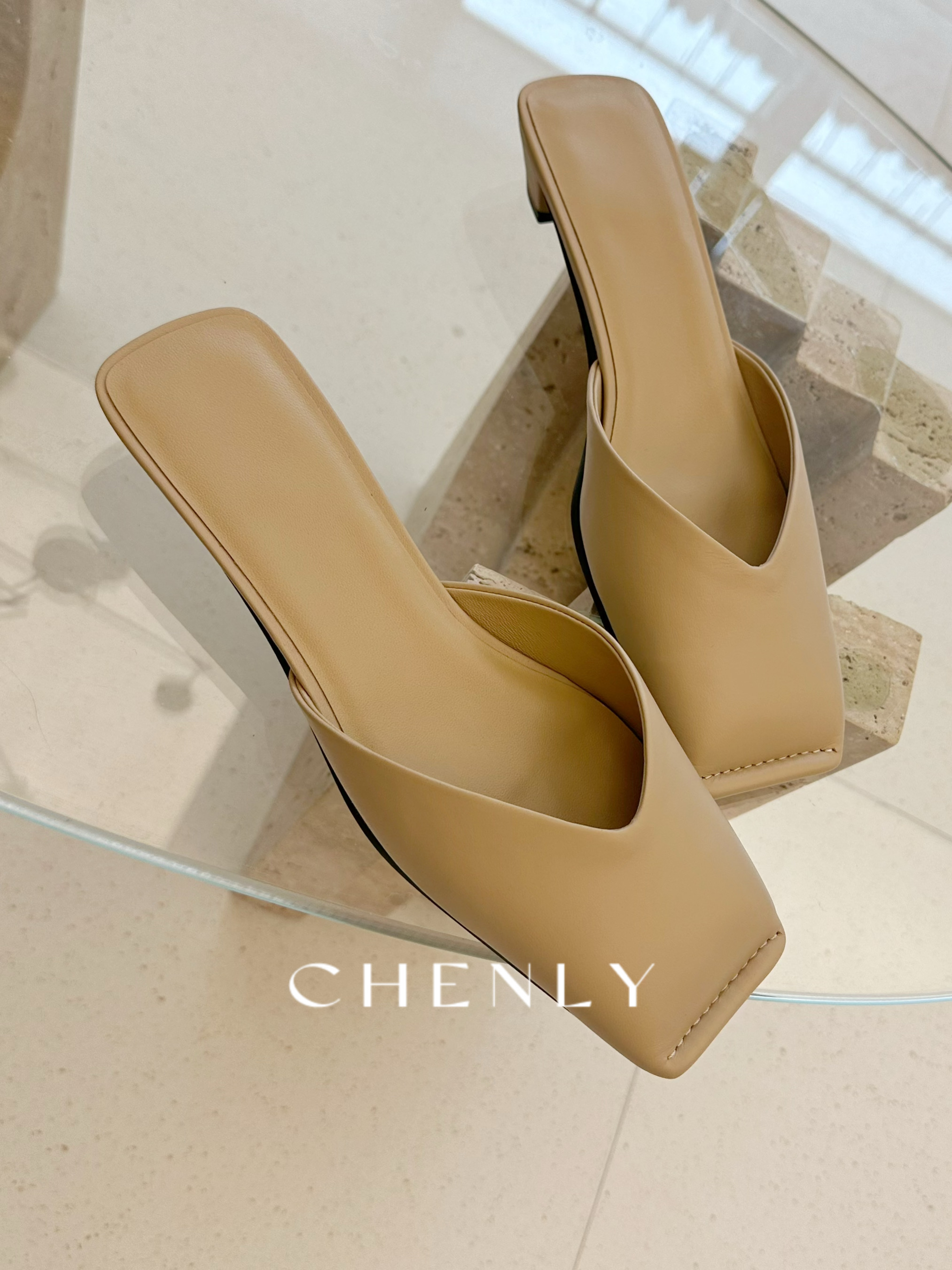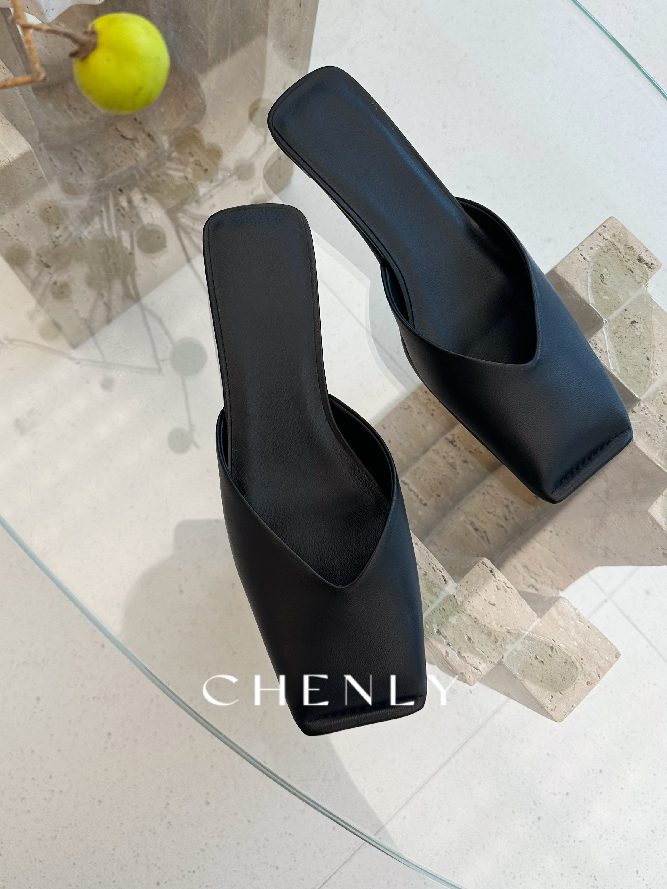 不退不换!尘衣|25春夏方头高跟穆勒拖鞋