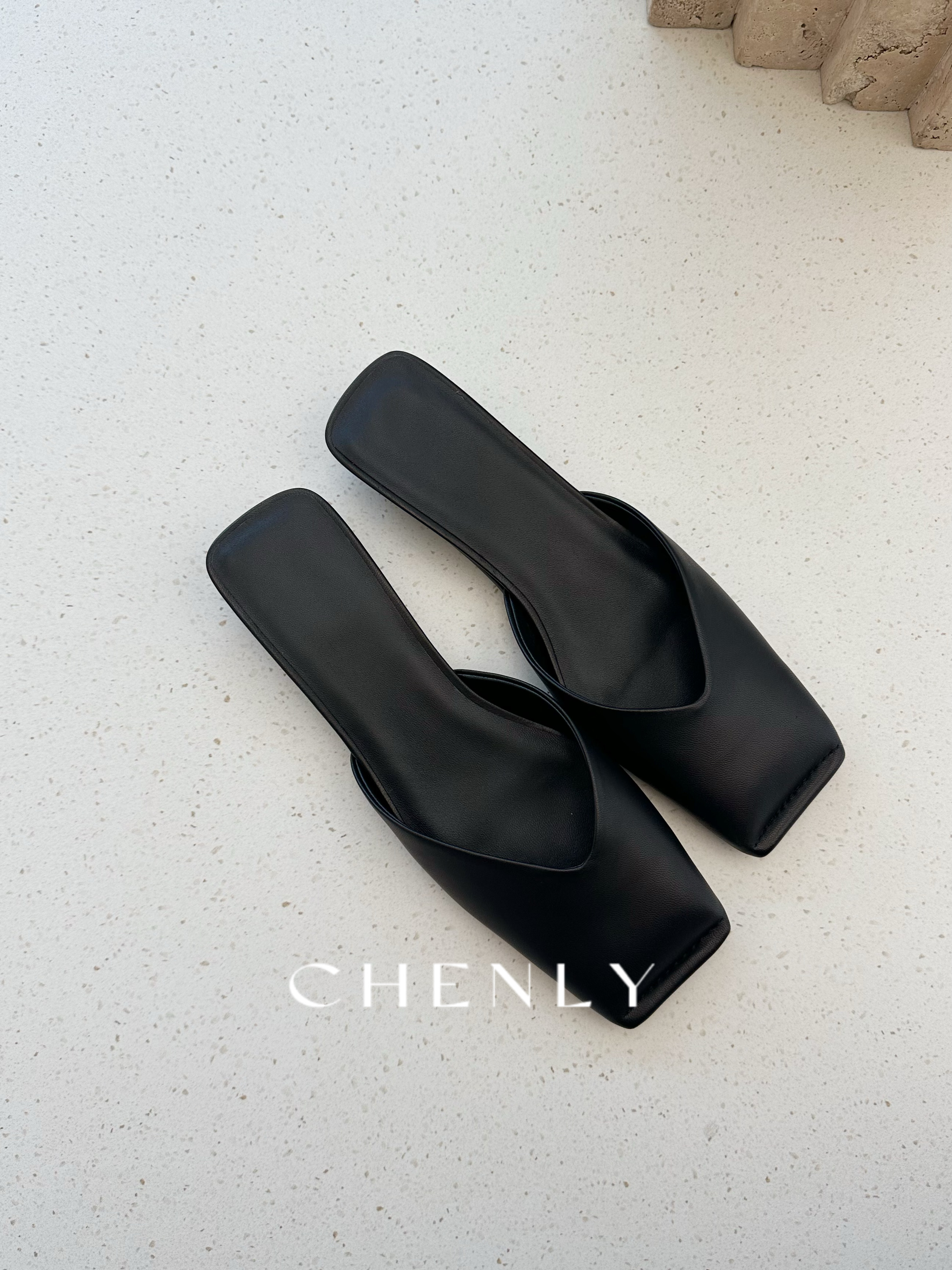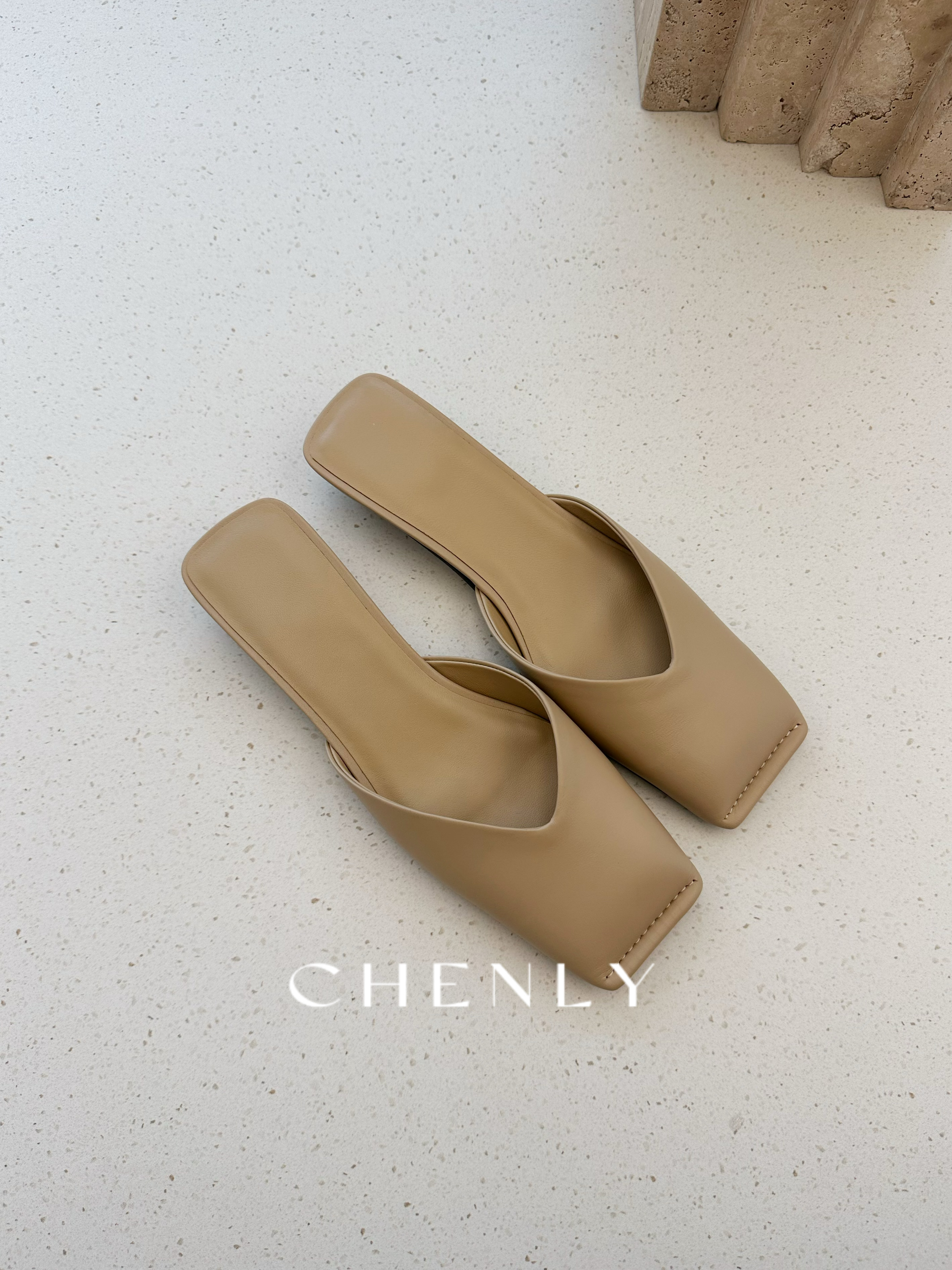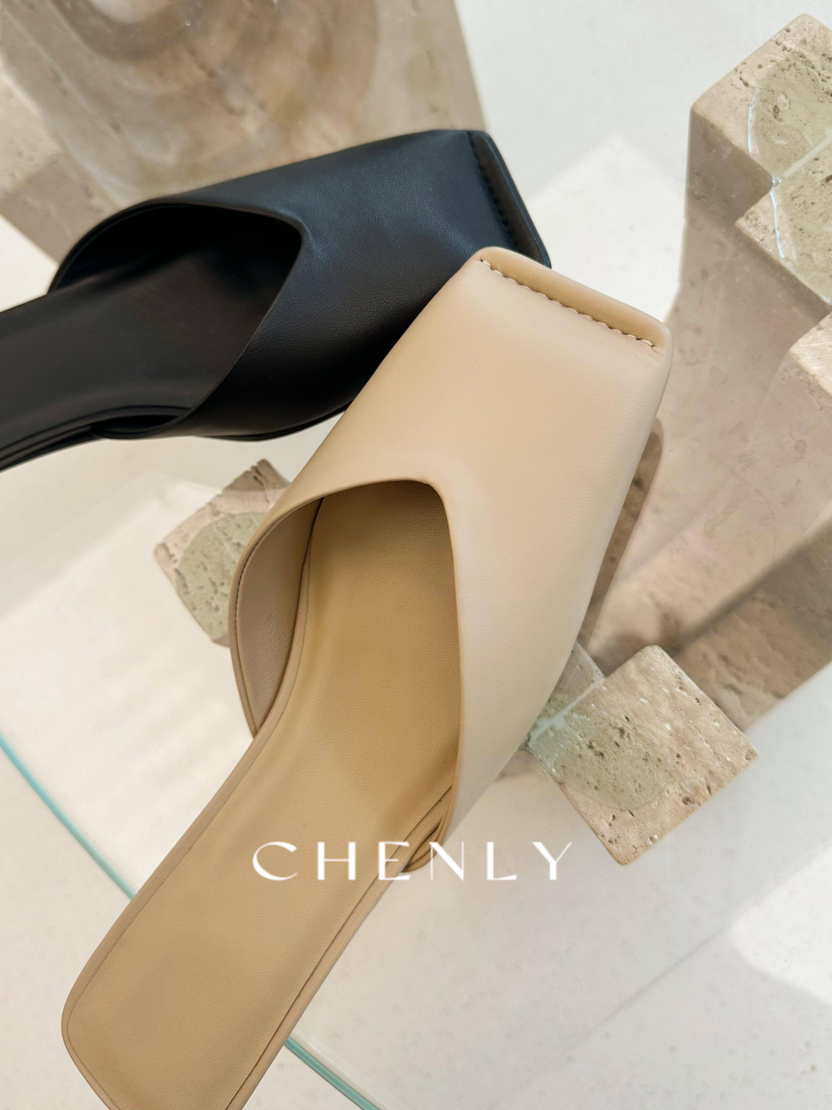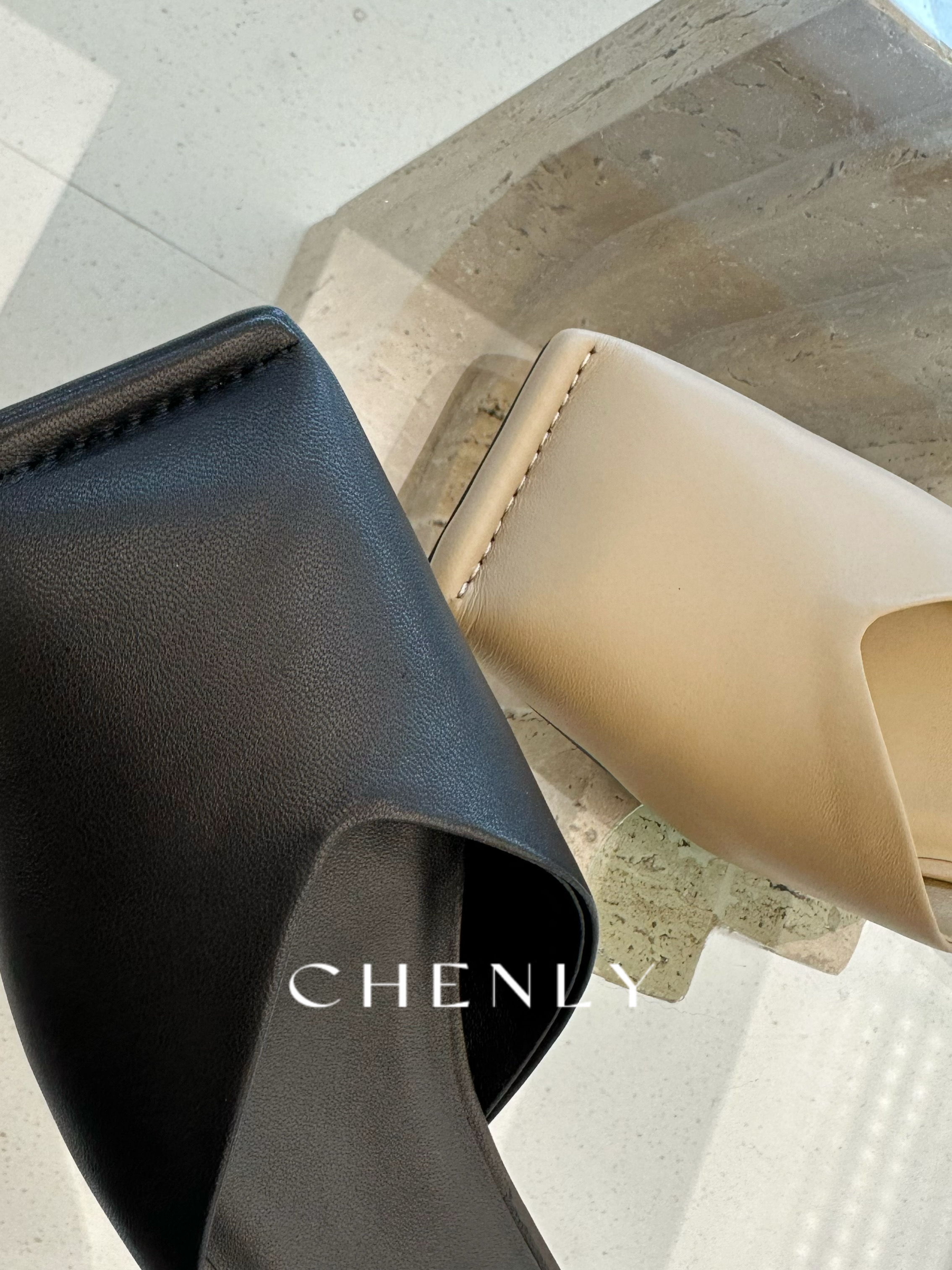 不退不换!尘衣|25春夏方头高跟穆勒拖鞋