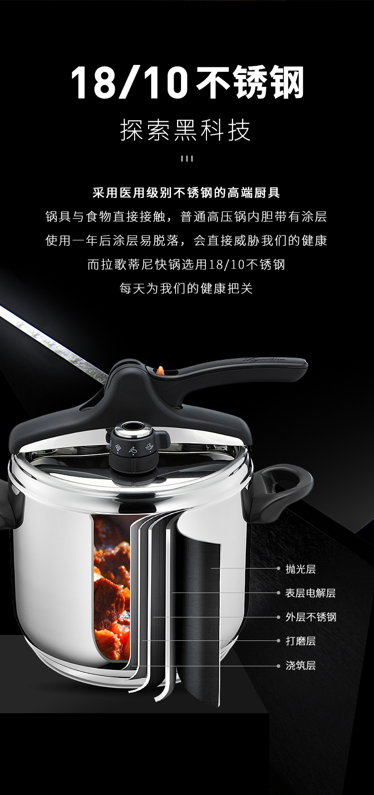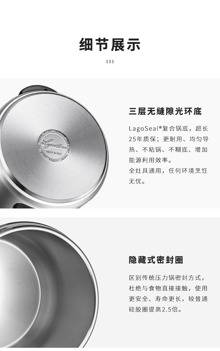 拉歌蒂尼梅雅维他7L压力锅【赠玻璃盖、蒸篮、蒸屉】(暂时不用) 商品图8