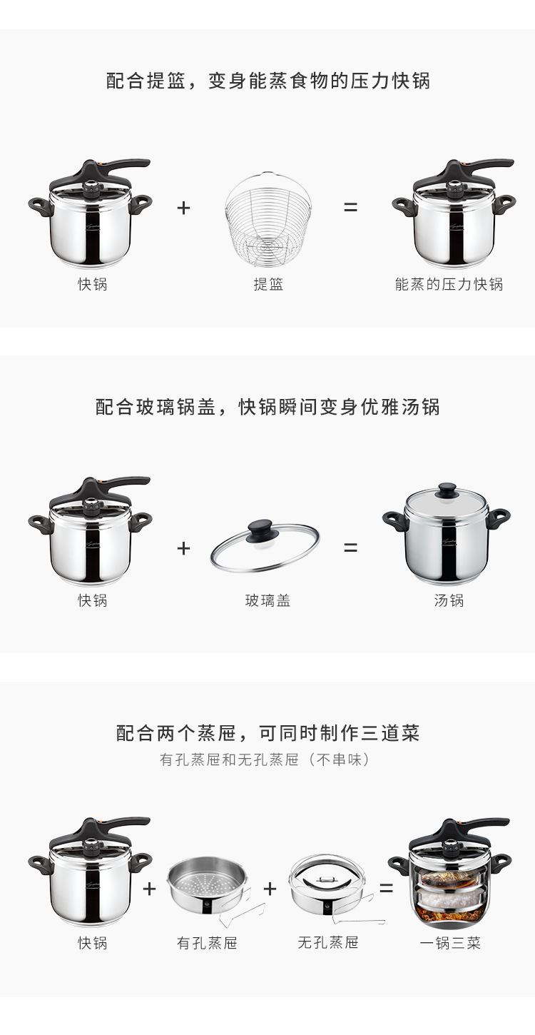 拉歌蒂尼梅雅维他7L压力锅【赠玻璃盖、蒸篮、蒸屉】(暂时不用) 商品图7