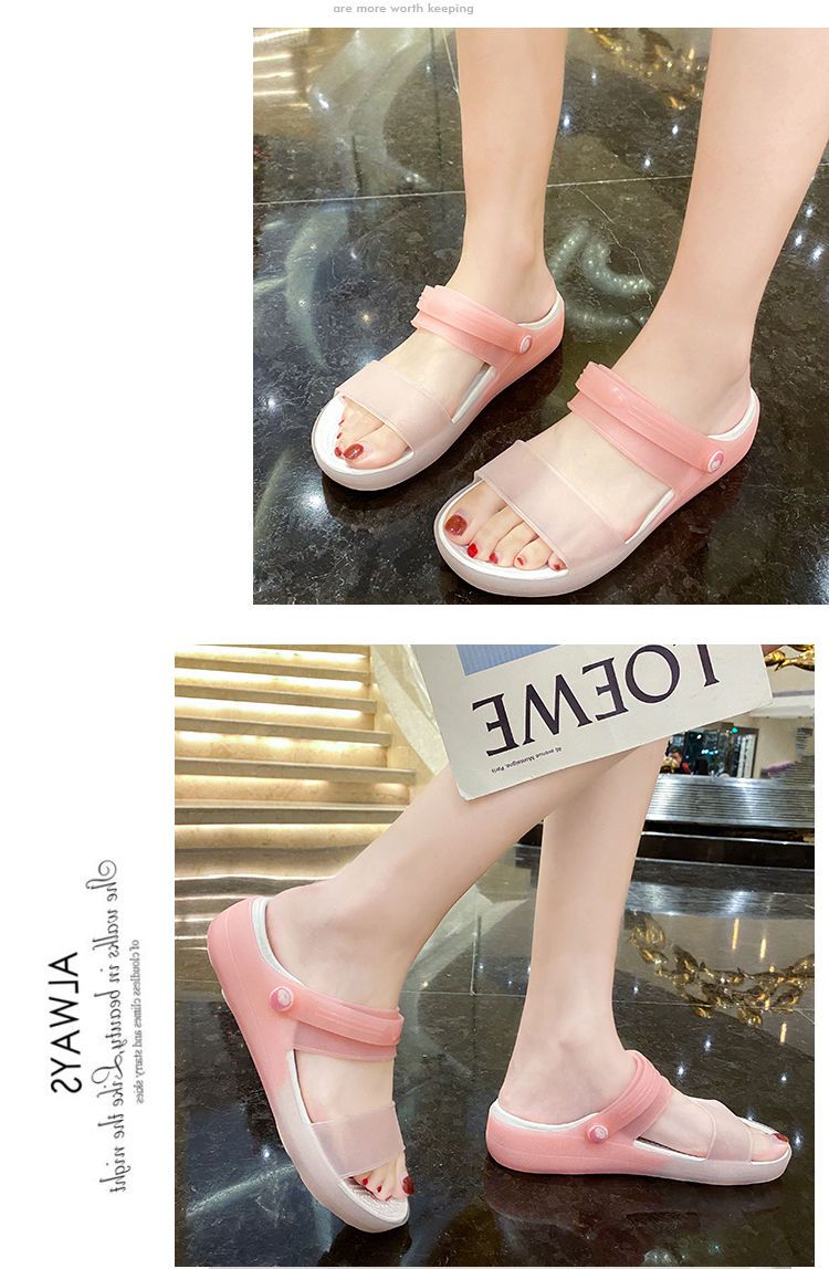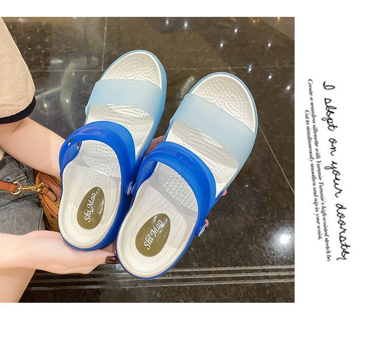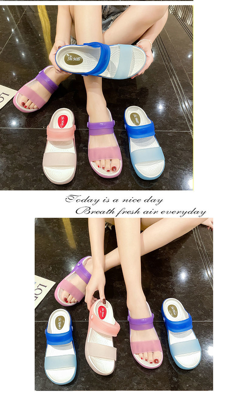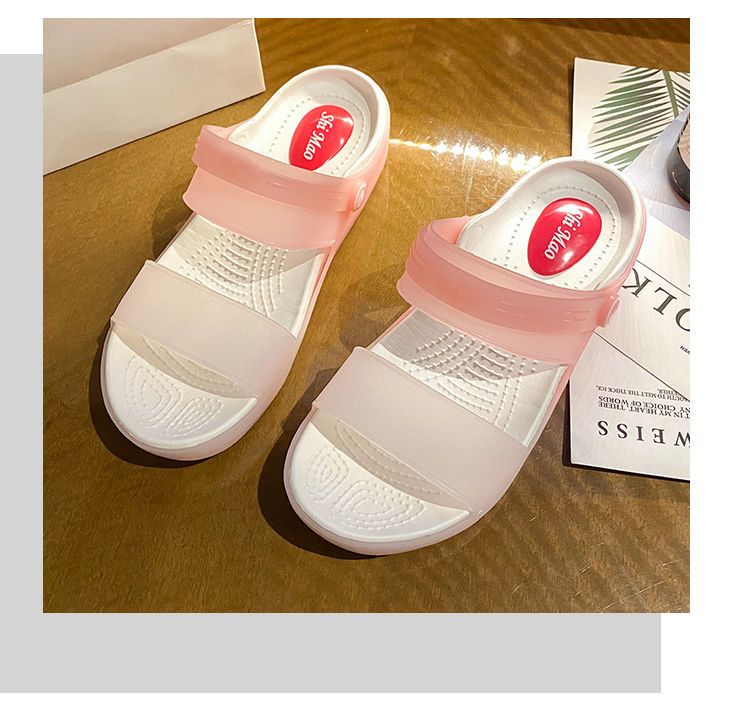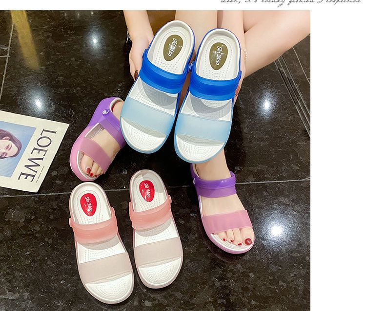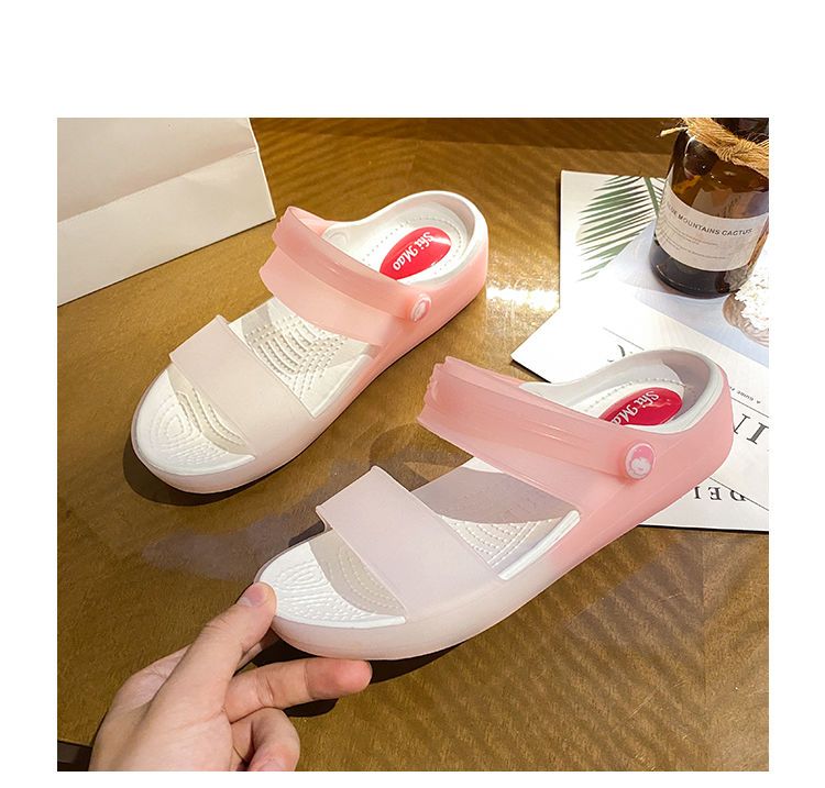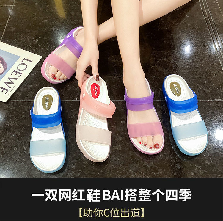 夏季新款厚底透气水晶女鞋一字带洞洞软底鞋凉鞋女果冻鞋女