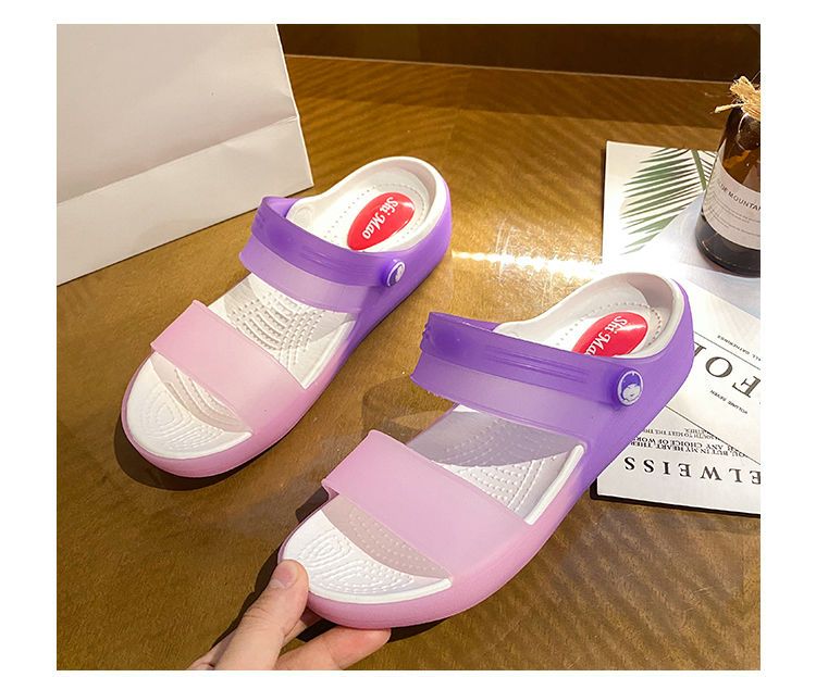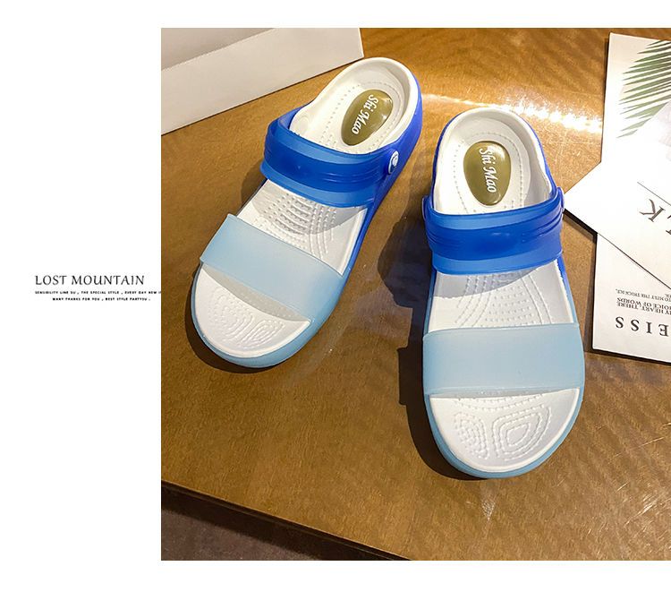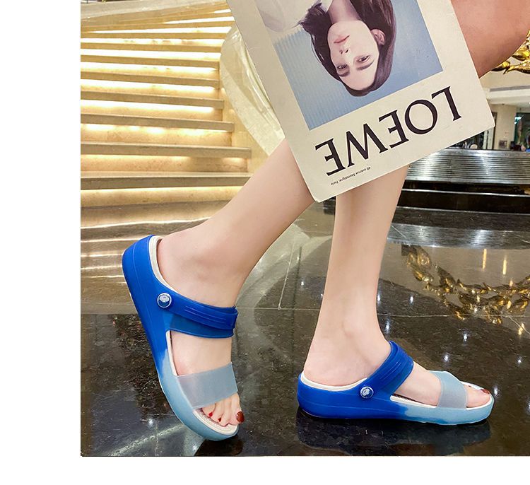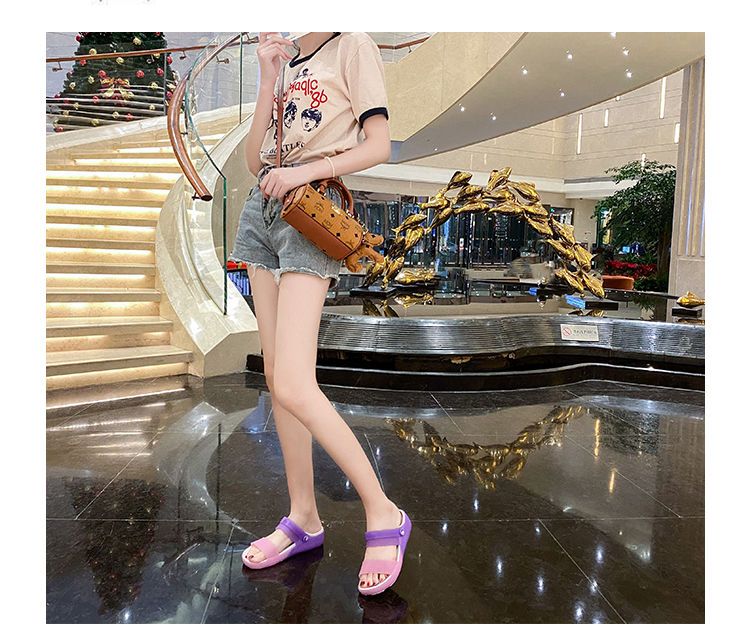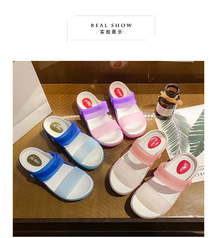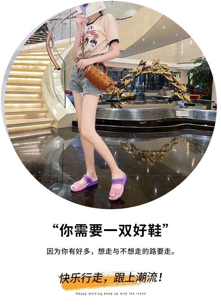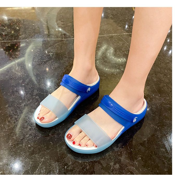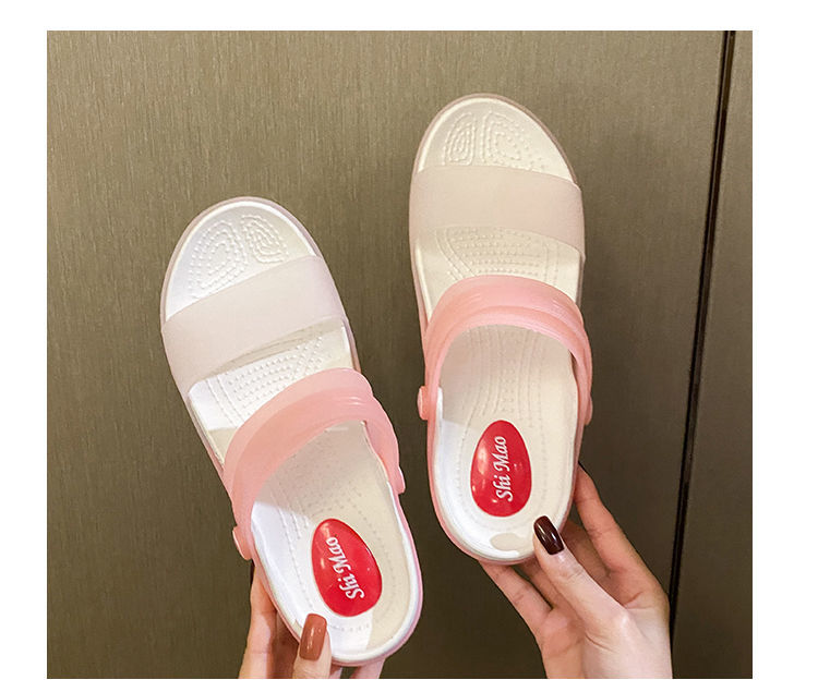 夏季新款厚底透气水晶女鞋一字带洞洞软底鞋凉鞋女果冻鞋女