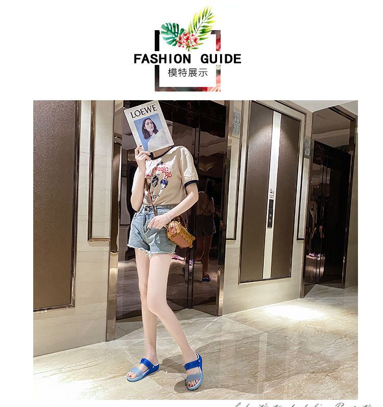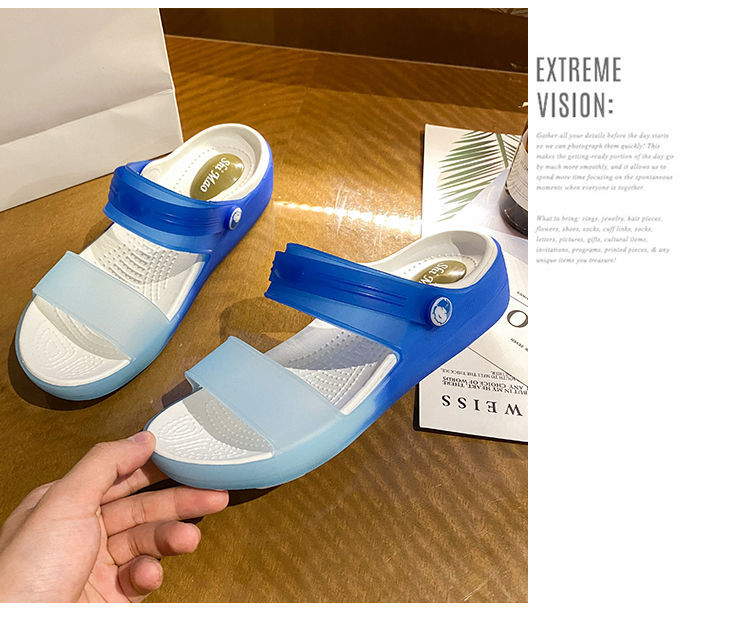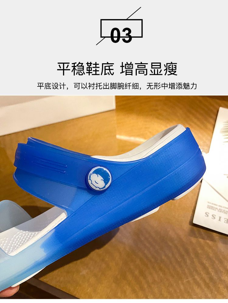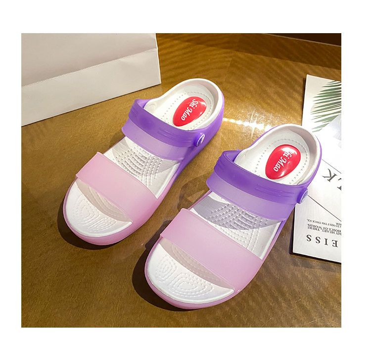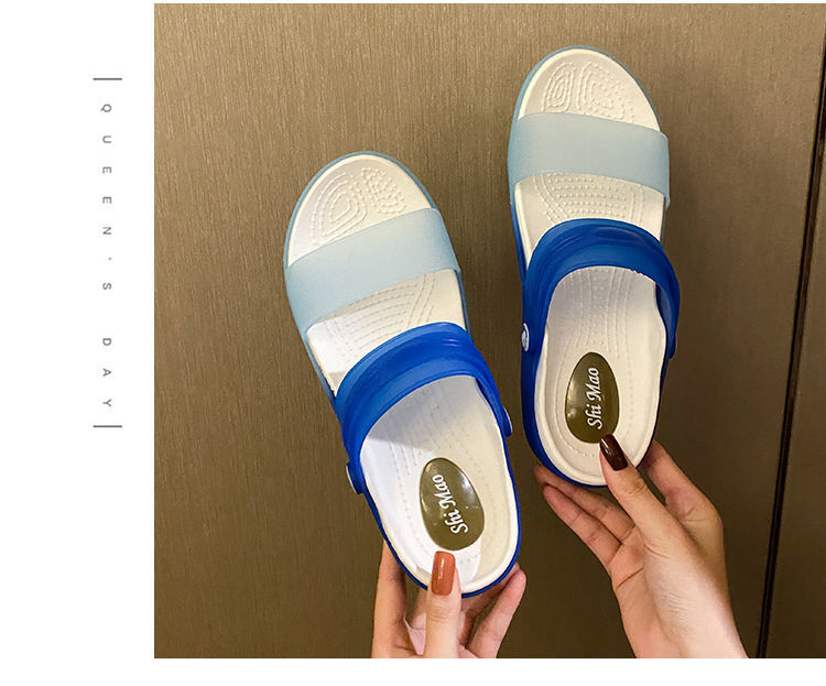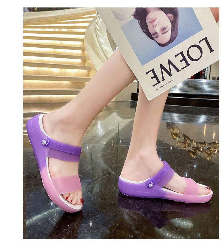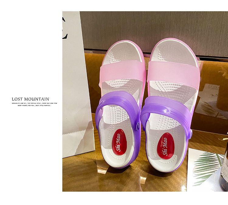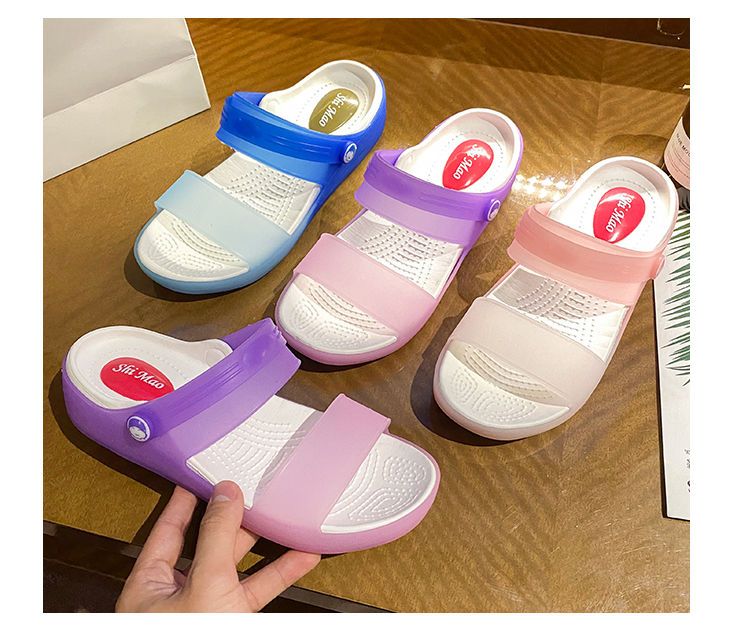 夏季新款厚底透气水晶女鞋一字带洞洞软底鞋凉鞋女果冻鞋女