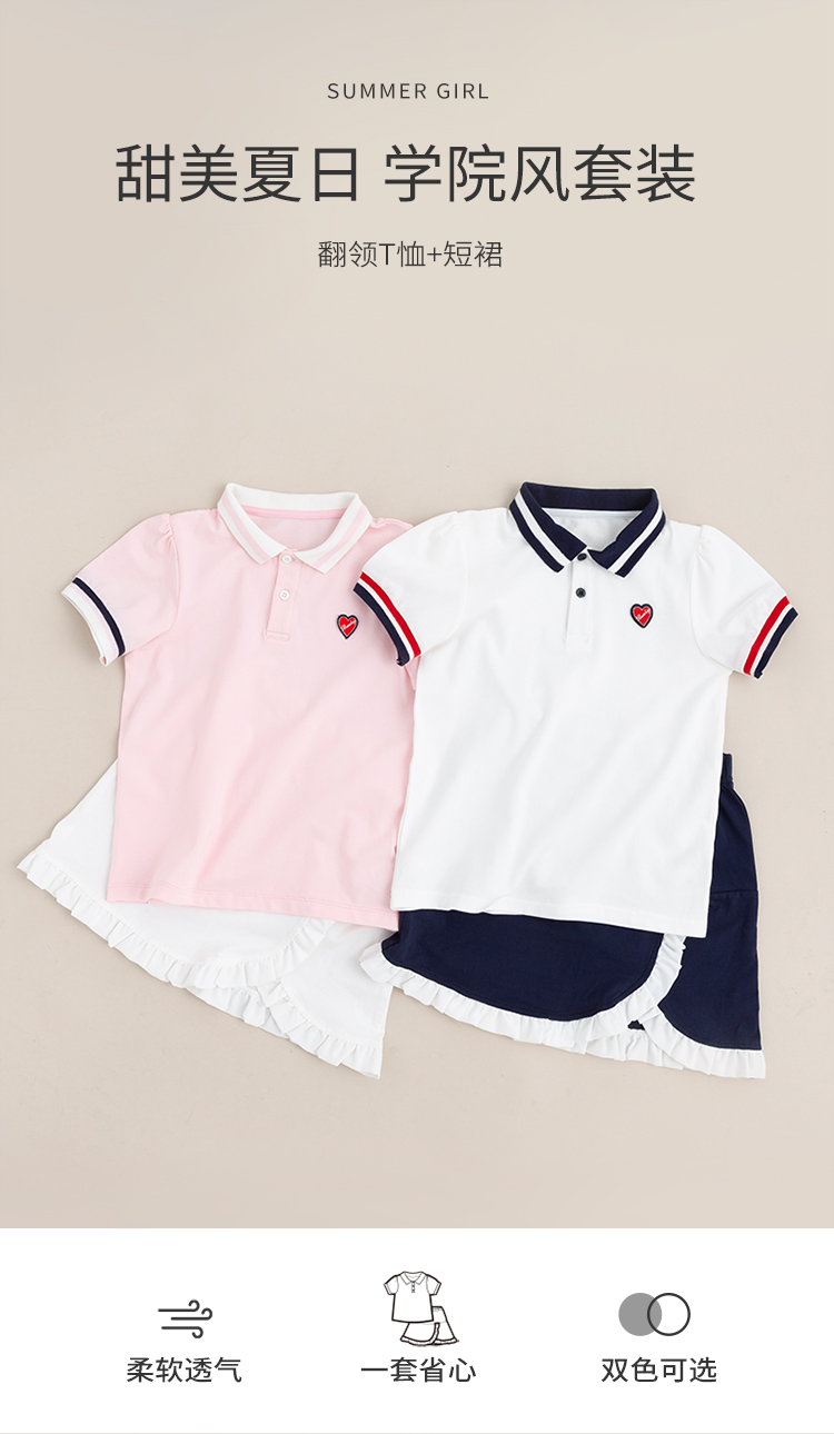贝贝怡女童夏装套装裙子儿童半袖T恤短裙两件套学院风大童夏季