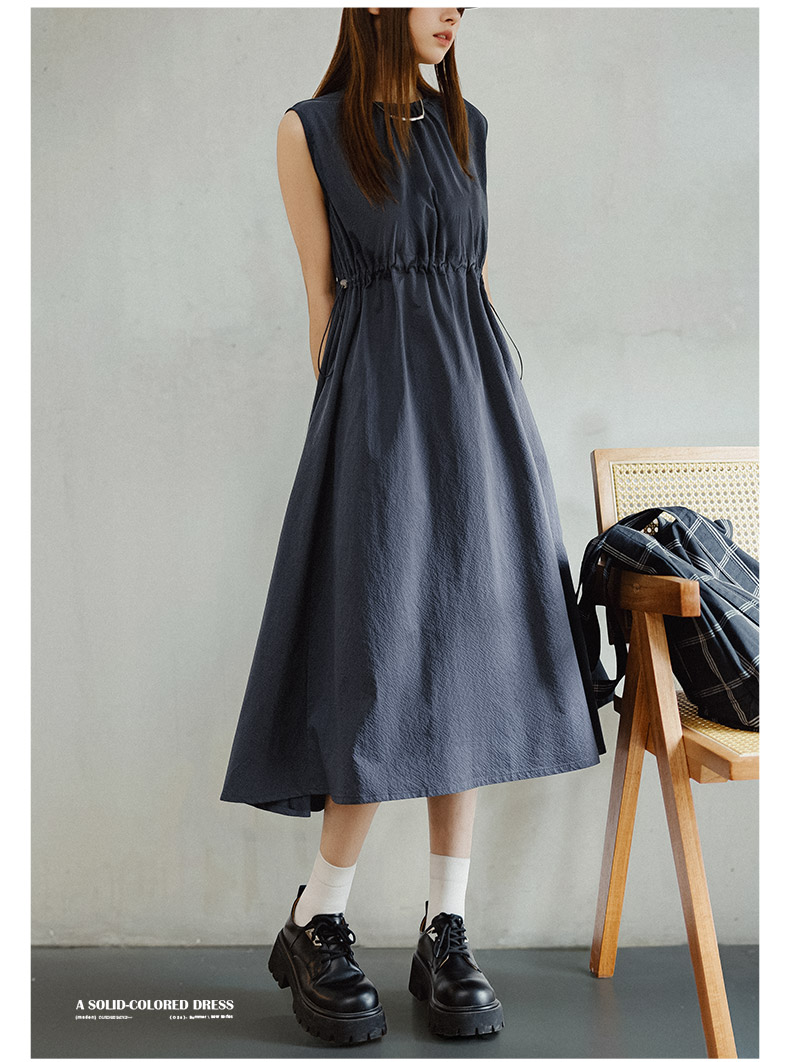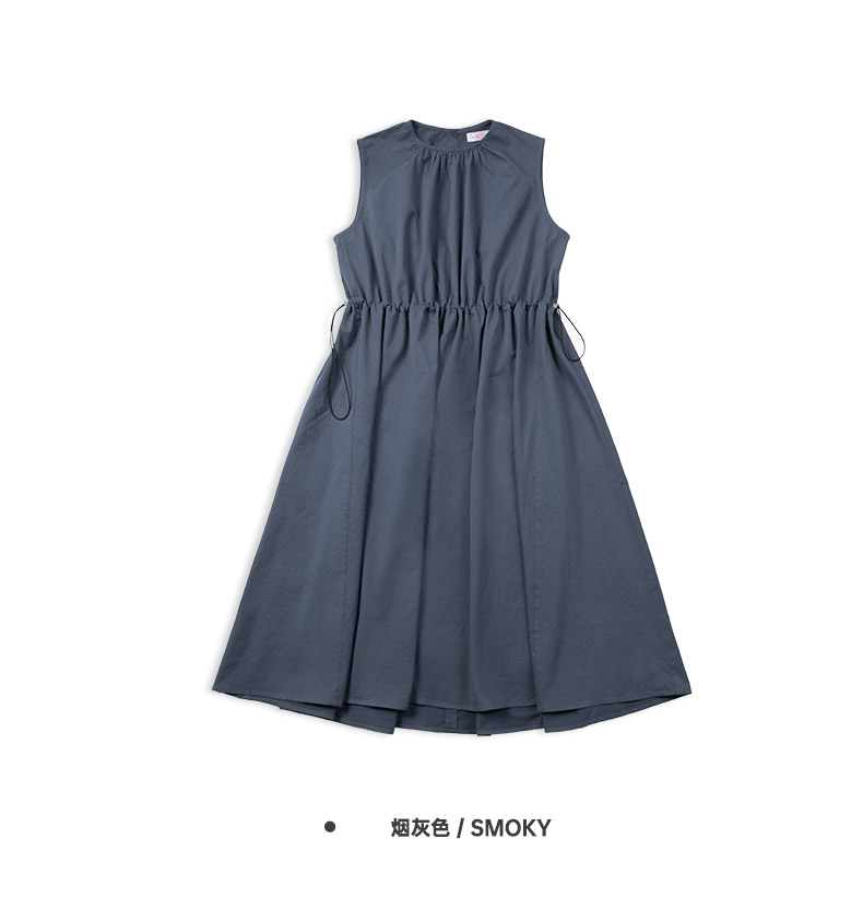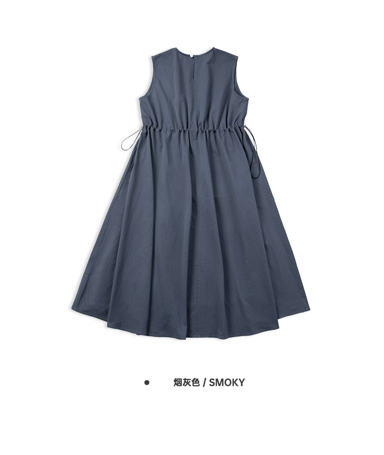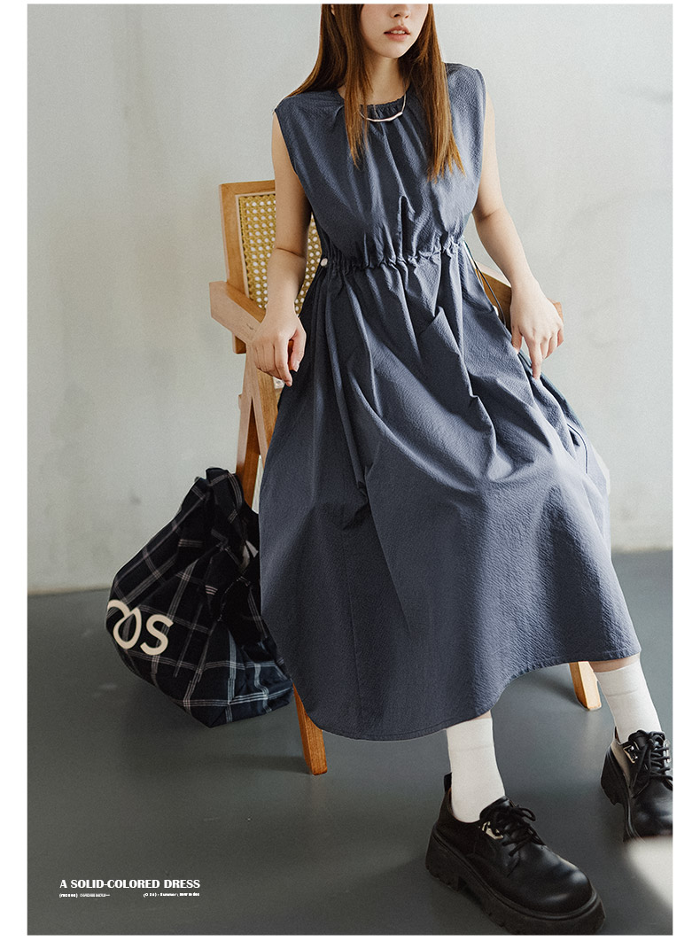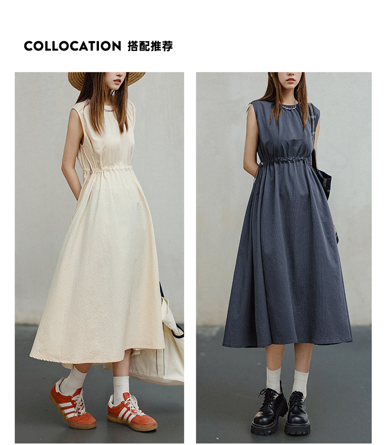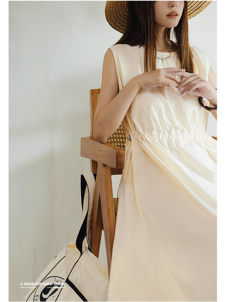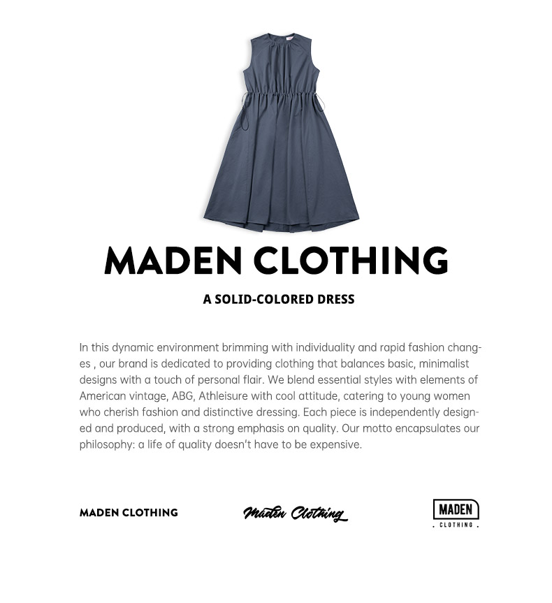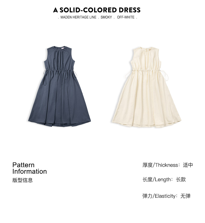 马登女装美式休闲海边无袖度假连衣裙夏季少女感纯色小众设计长裙