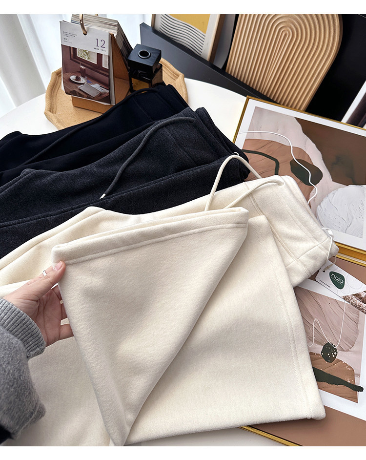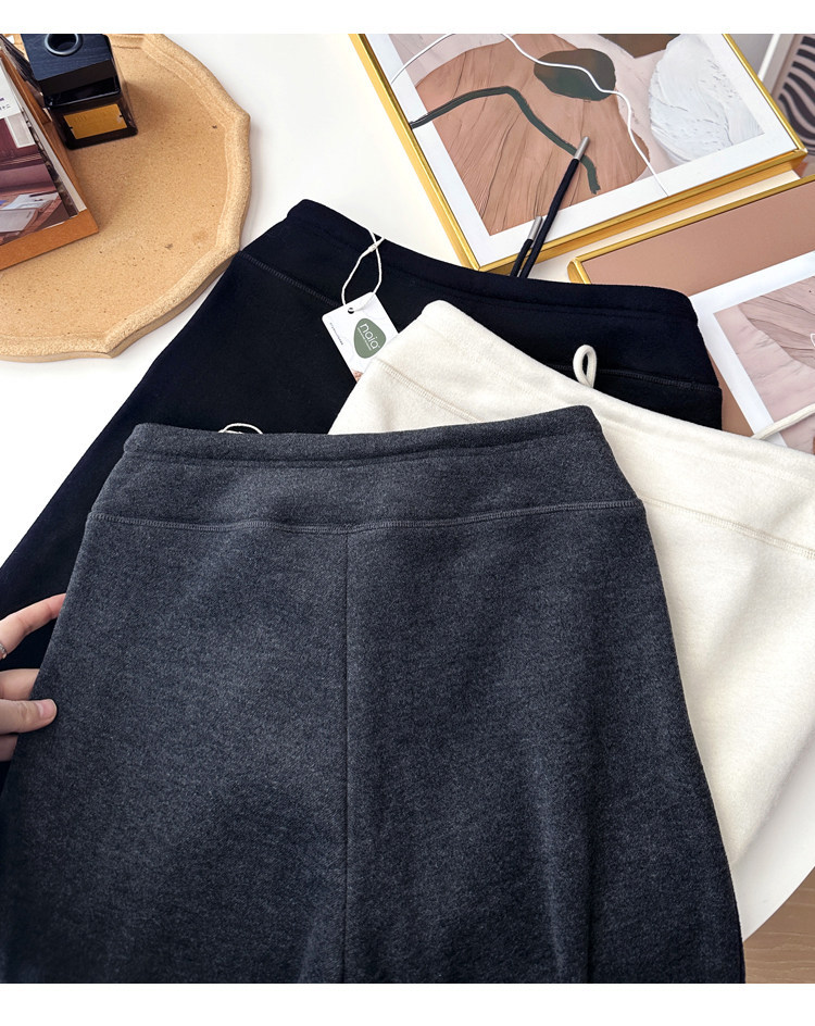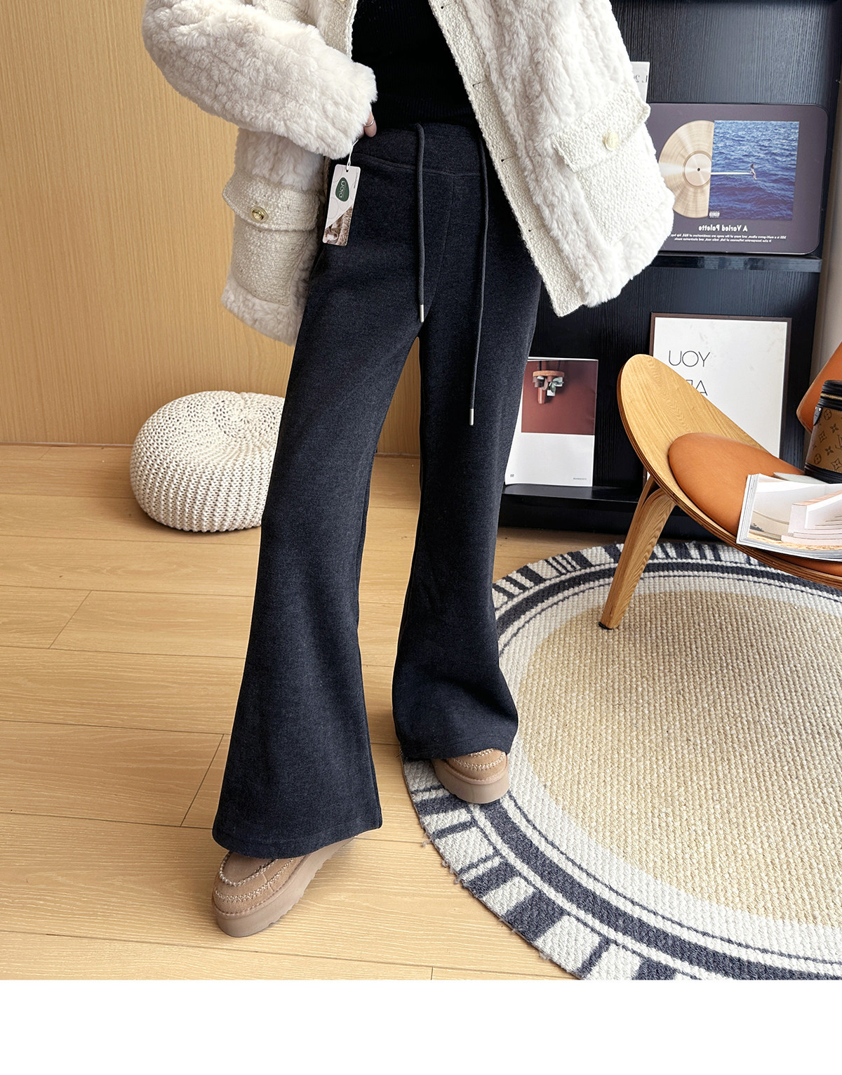冬日报恩裤!2026显瘦修身羊毛微喇叭裤女秋冬加厚双面绒显腿长休闲裤