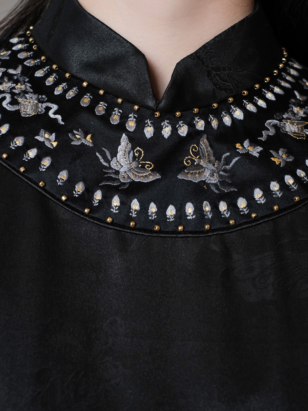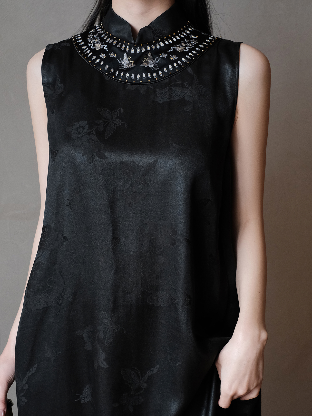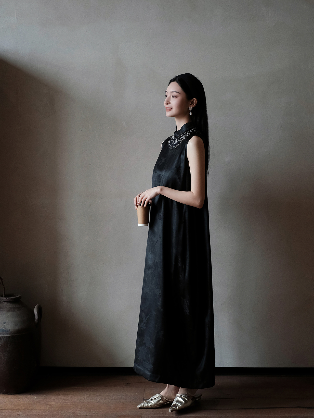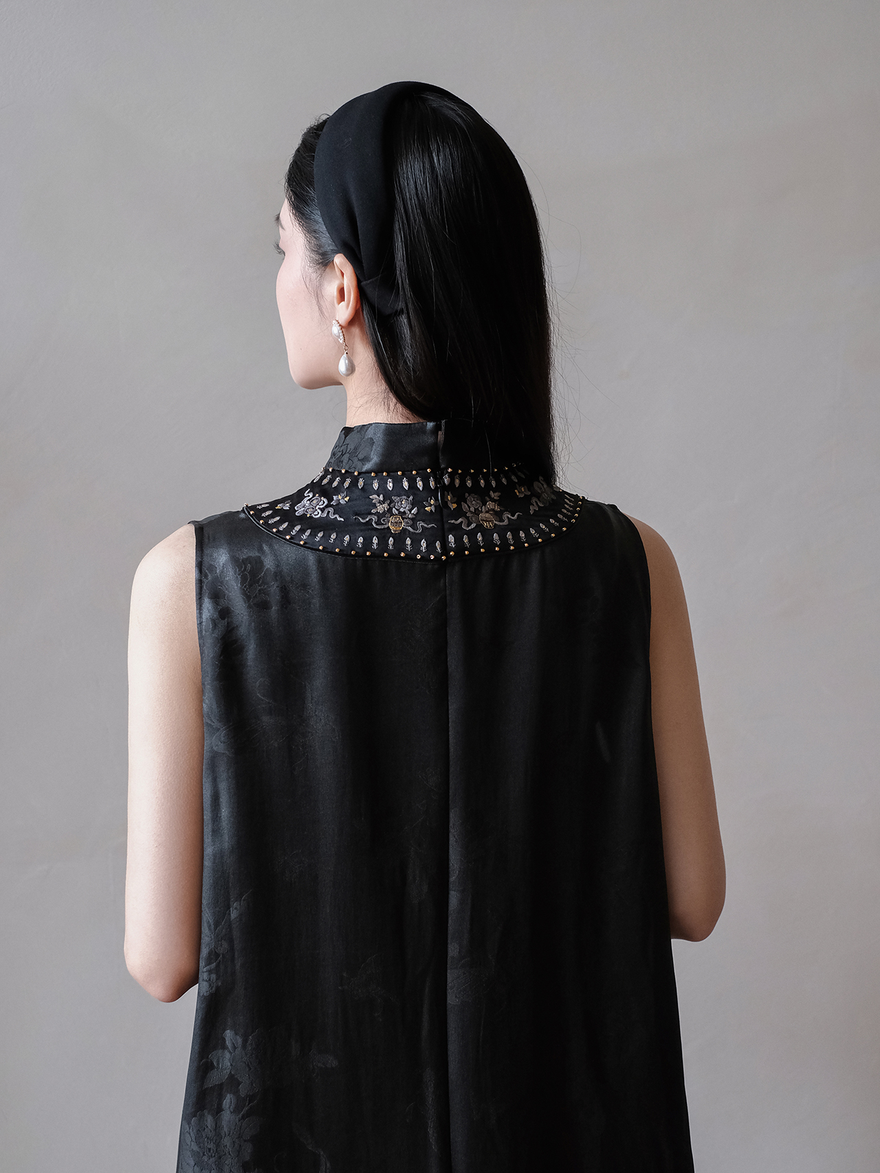 盛唐牡丹盛奢系列 | 真丝香云纱手绣女连衣裙