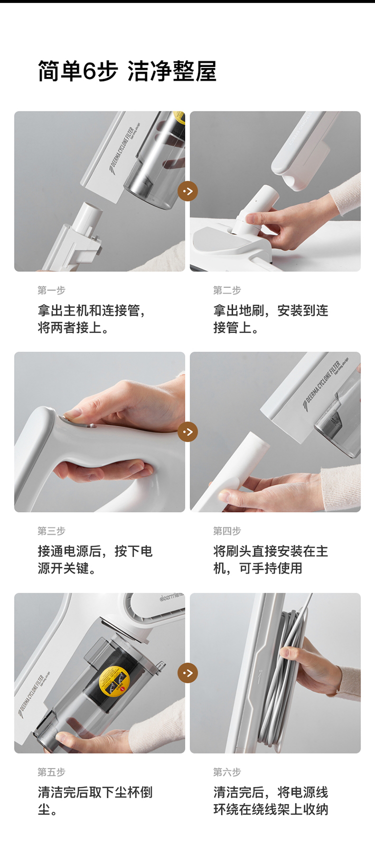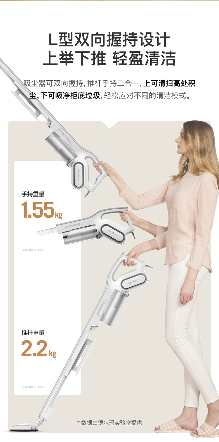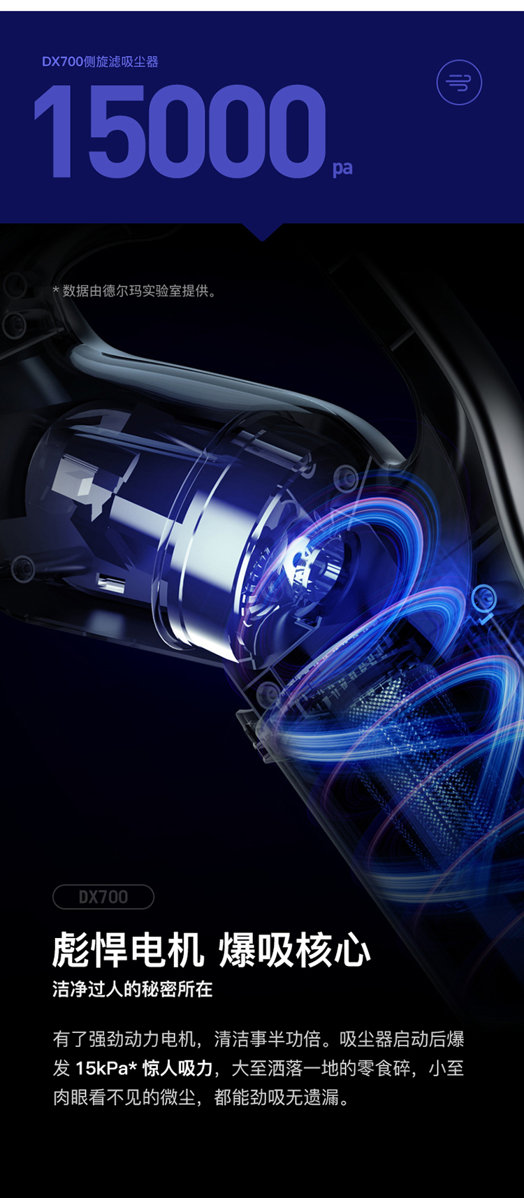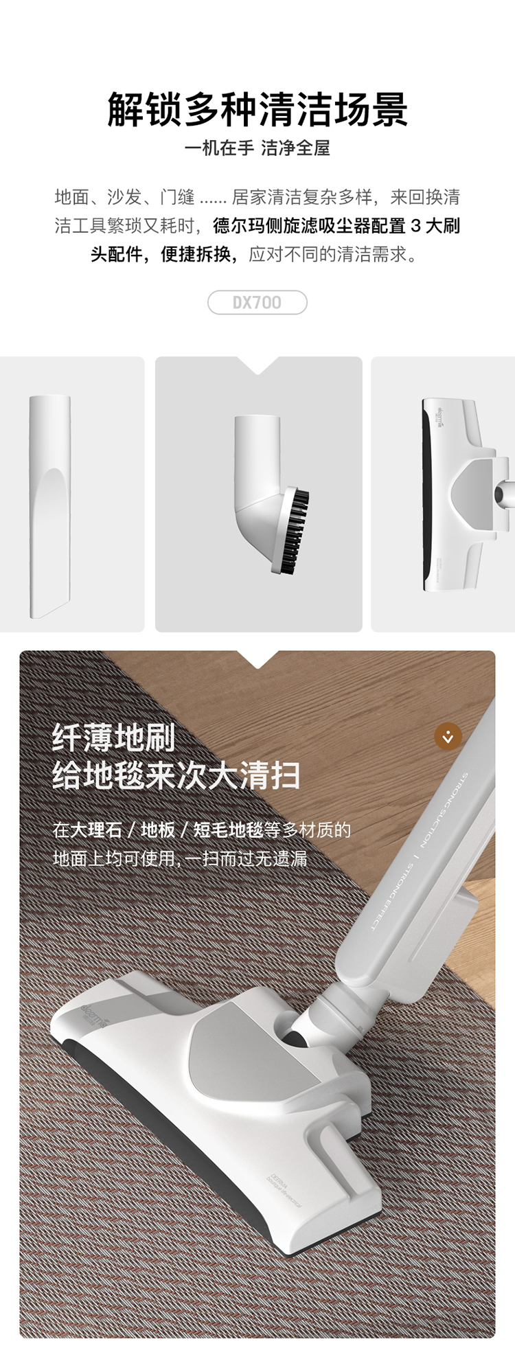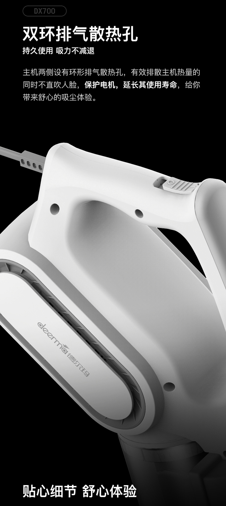 德尔玛吸尘器家用大吸力手持除螨仪猫毛小型非静音强力车载大功率 DX700