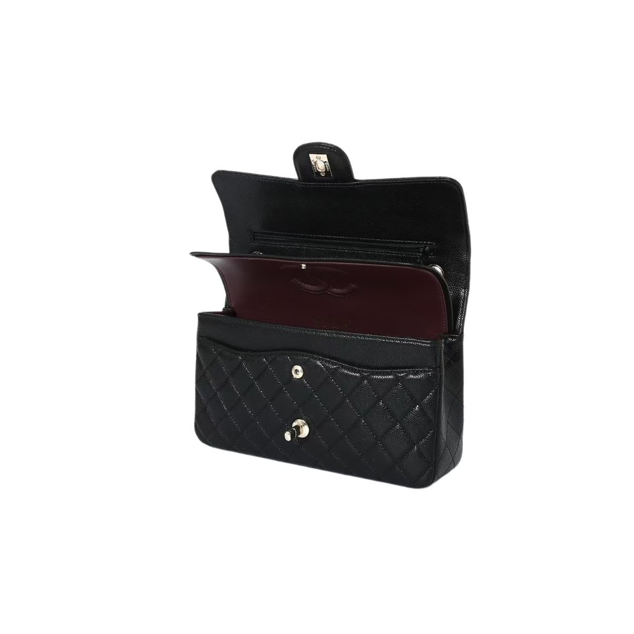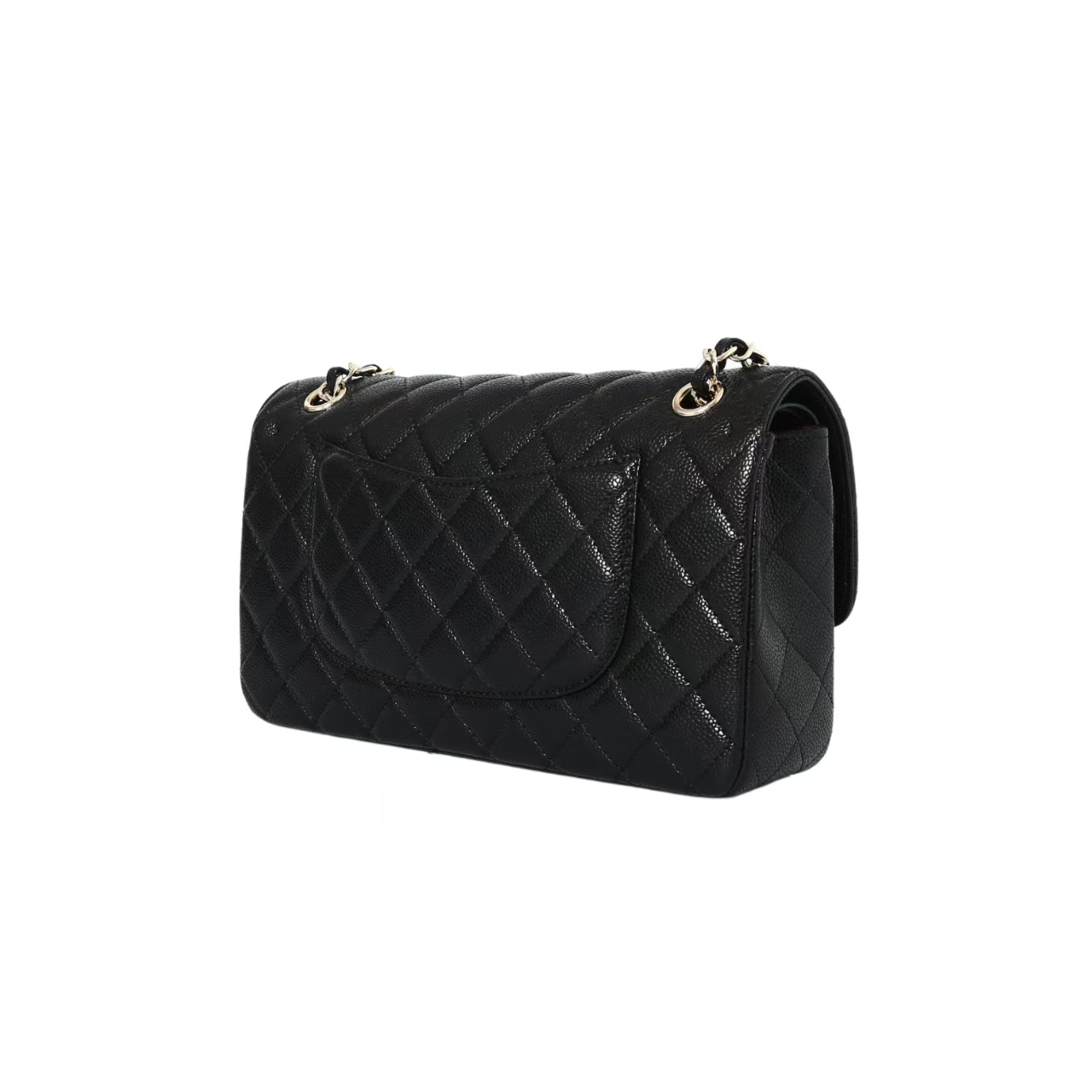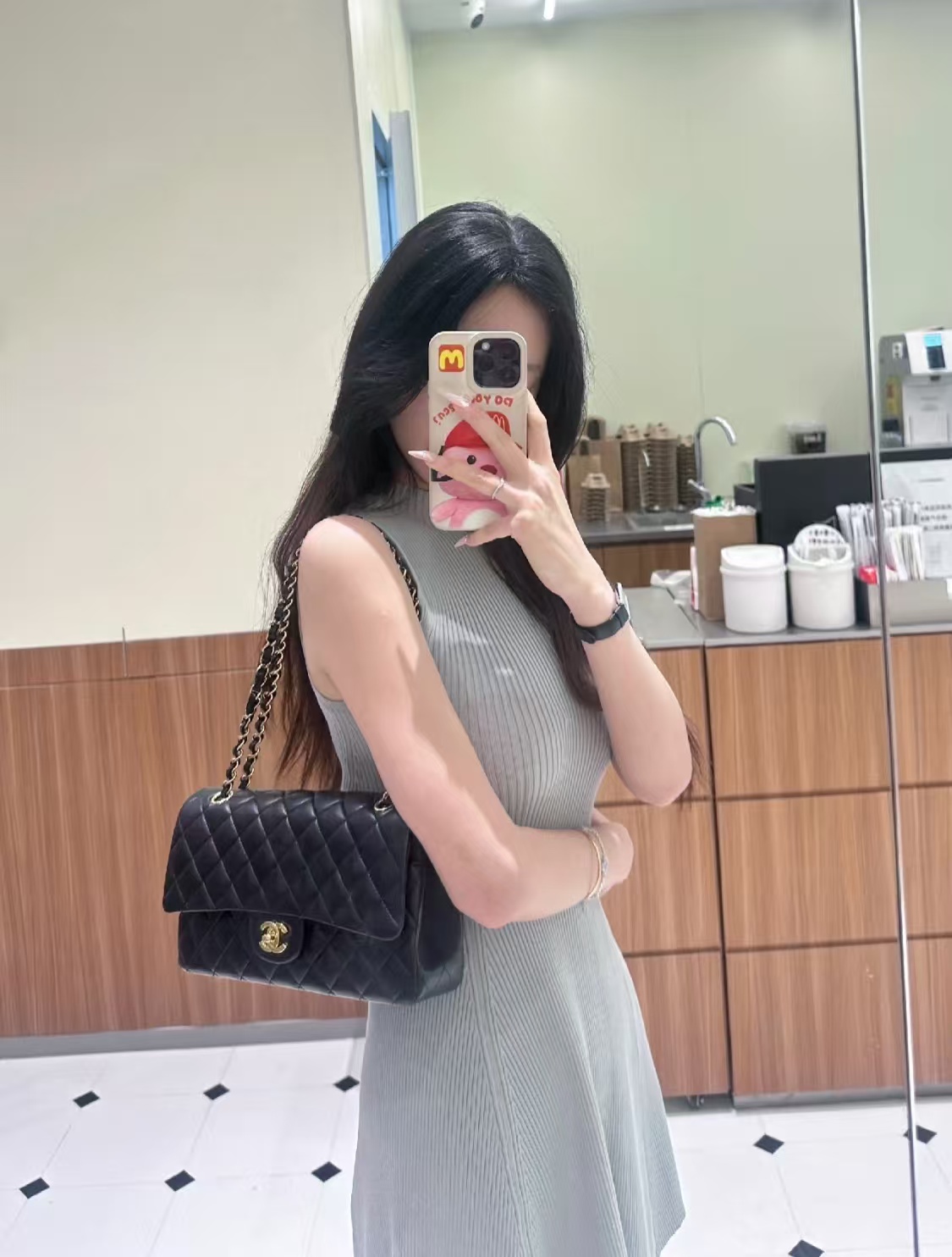 CHANEL香奈儿 Classic Flap CF 经典菱格金扣链条肩带 牛皮 口盖包斜挎包单肩包 中号 女款 黑色!Chanel cf 从诞生之日,就成为了经典,并且几十年都经久不衰,也印证了那句话:"流向易逝,风格永存"背面也全部都是饱满的钻石萎格 而且还有贴合的弯弯的口袋 这款包实在是称得上是可谓多一分嫌嫌多,少一分不够。香奈儿Cf,人生绕不开的包包之一。香奈儿 黑金双盖CF 绝了 黑金也能这么炸!