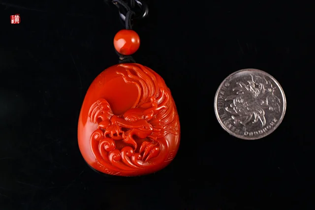 南红【龙】吊坠 配精美编织挂绳 赠证书(证书编号:61087078864)重量:38.62g尺寸:38.7mm*35.2mm*17.2mm