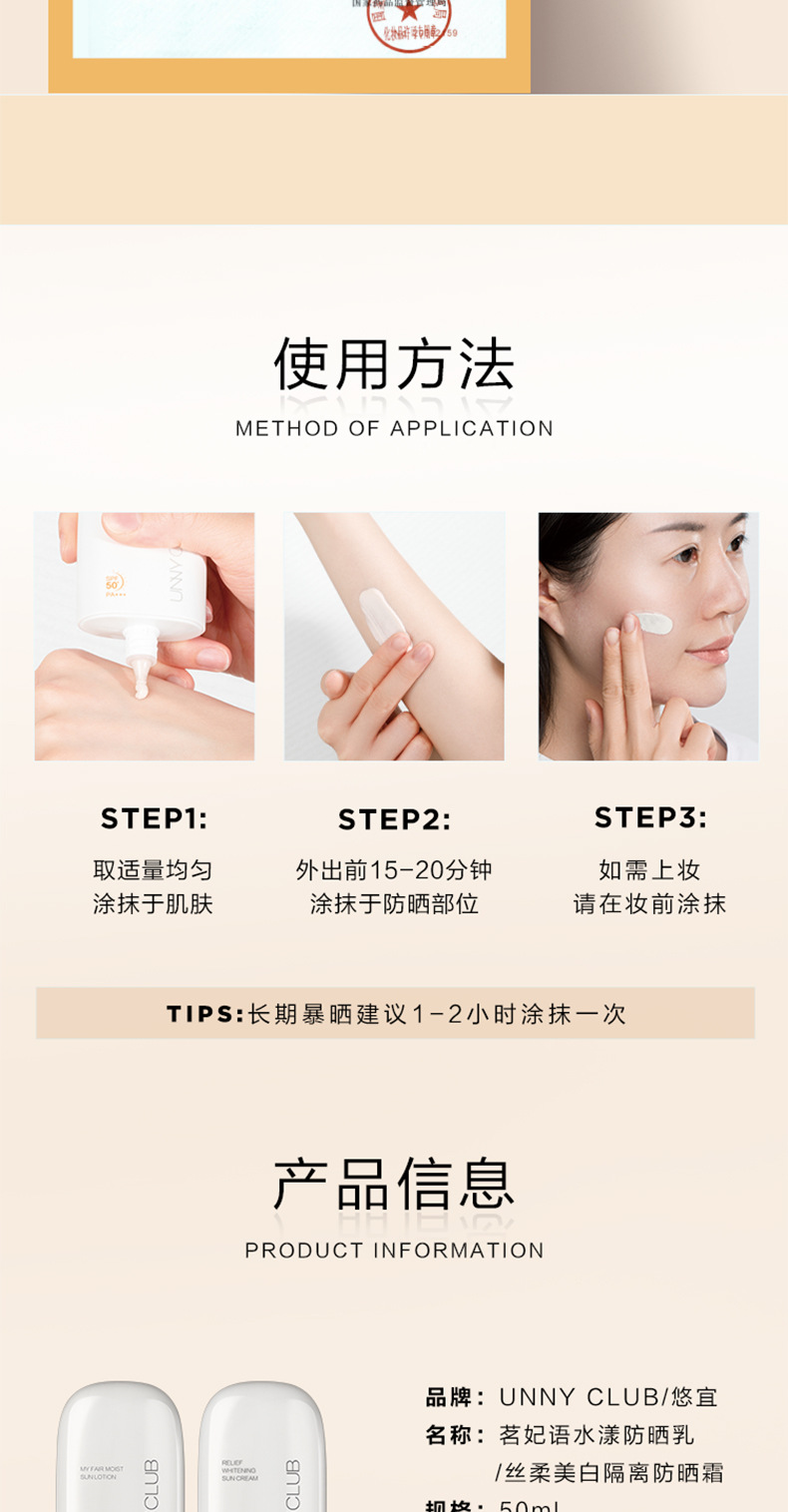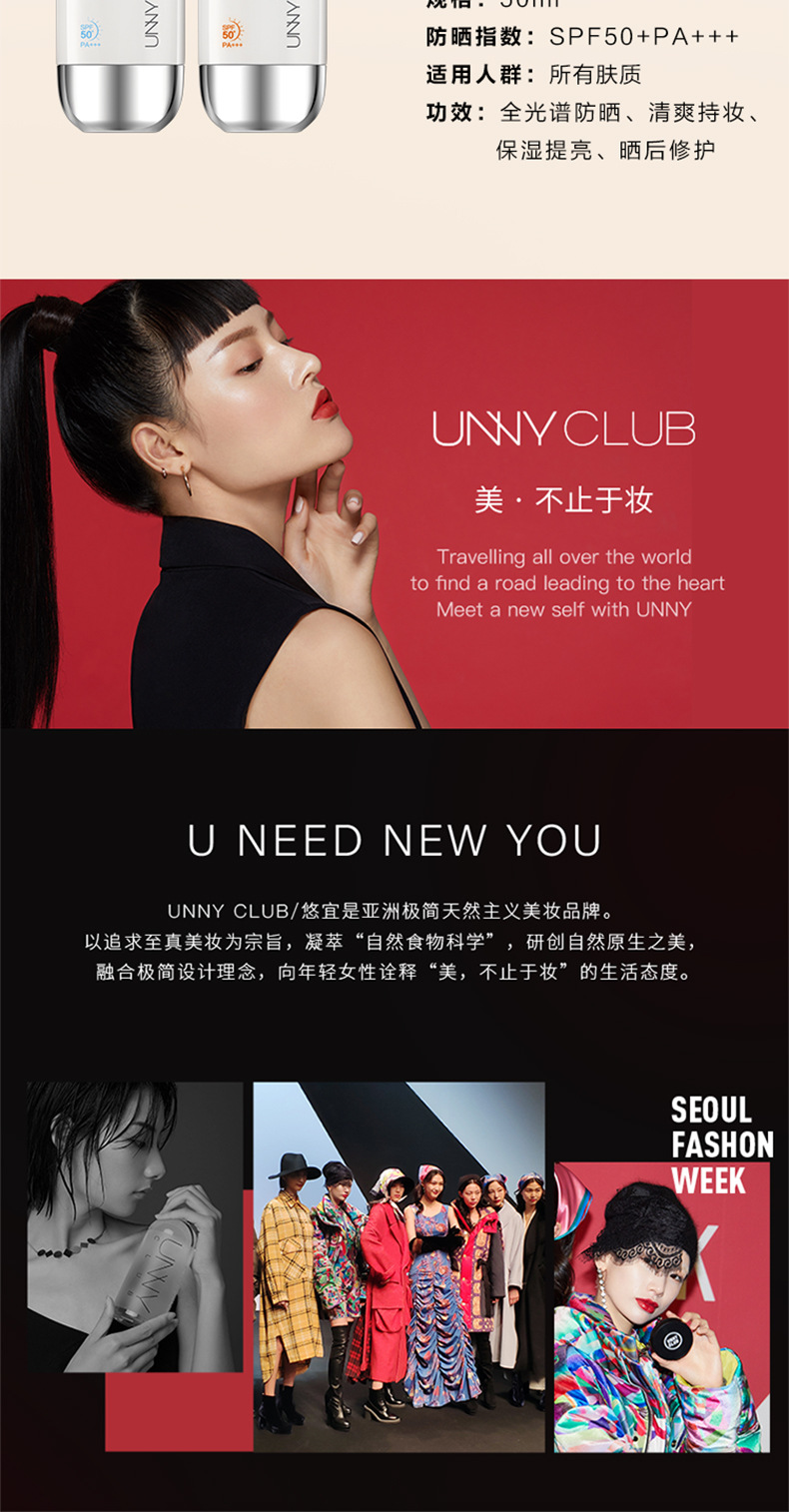 UNNY悠宜防晒霜防晒乳清爽美白防晒 水润防晒霜 50ml