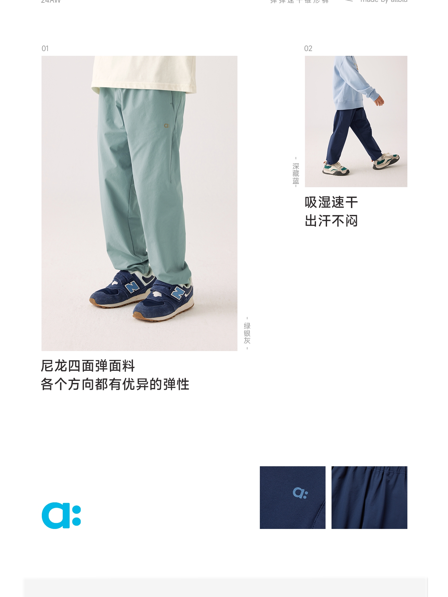 【粉丝专属】幼岚童装「弹弹速干」锥形裤吸湿速干防泼水24秋季新款儿童裤子