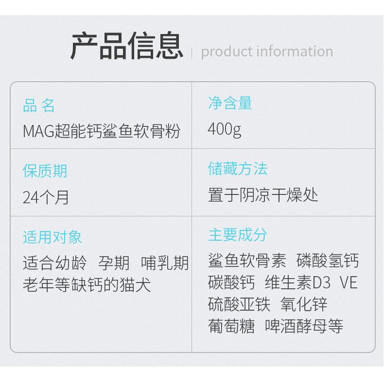 MAG超能钙鲨鱼软骨素狗狗关节肿痛成幼犬健骨补钙折耳猫咪软骨素