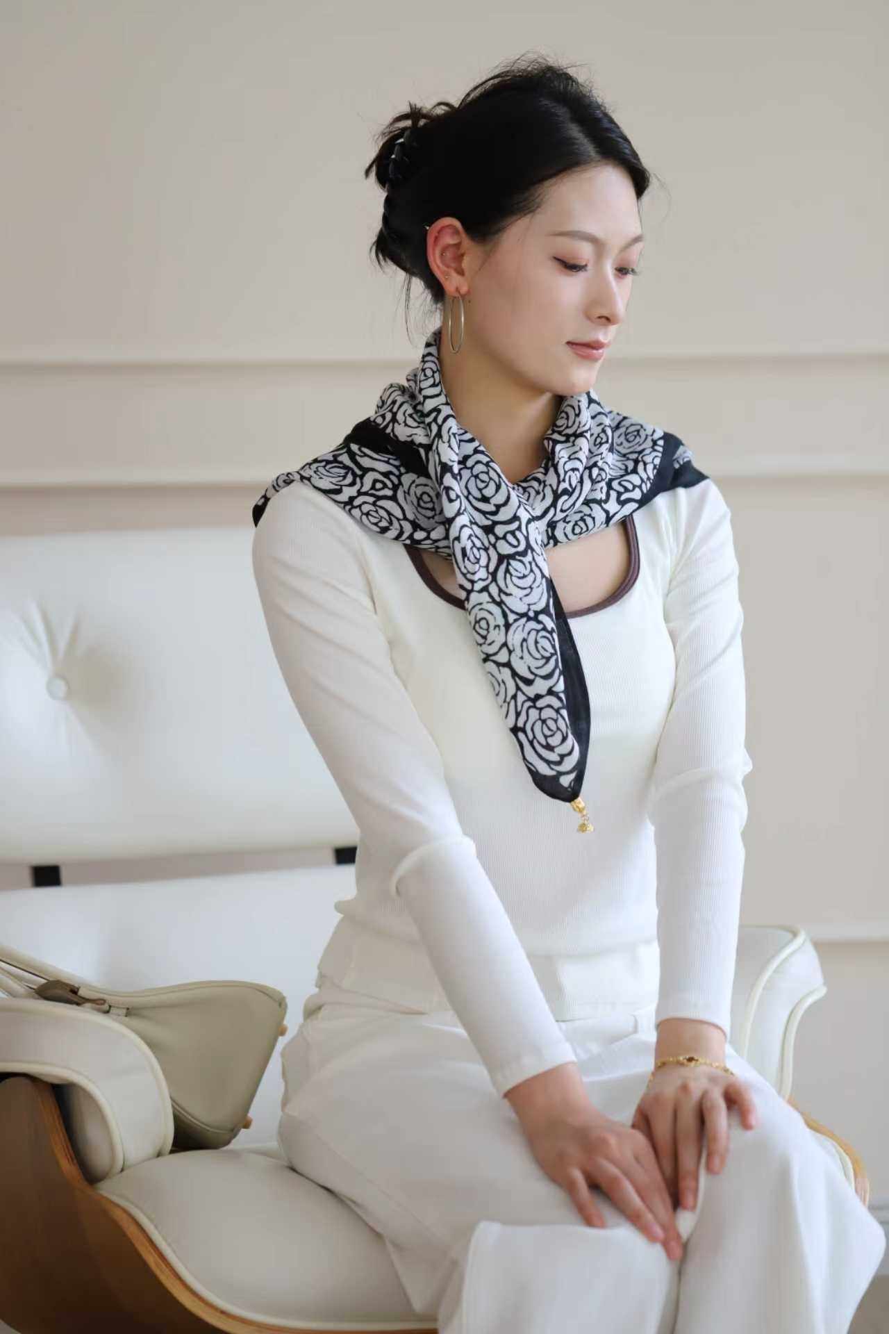 春秋b备单品,在法式搭配哲学里丝巾不再是条简单的围巾,