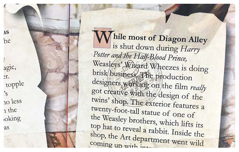 2.书中解读了哈利·波特系列八部影片的幕后故事,精彩内容让粉丝们重回哈利·波特的经典现场:对角巷、霍格沃茨城堡、神奇生物、巫师三强争霸赛……每个场景中都有多种多样的形象,全书中可找到41个明确指示的人物和物品。
