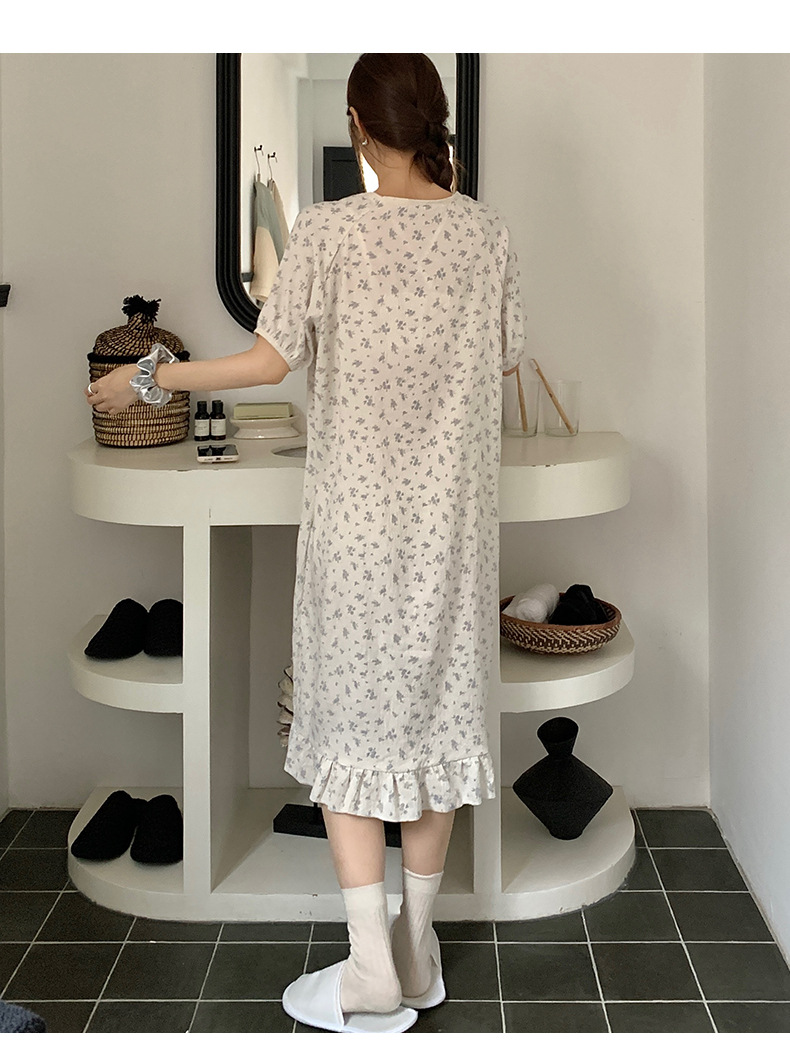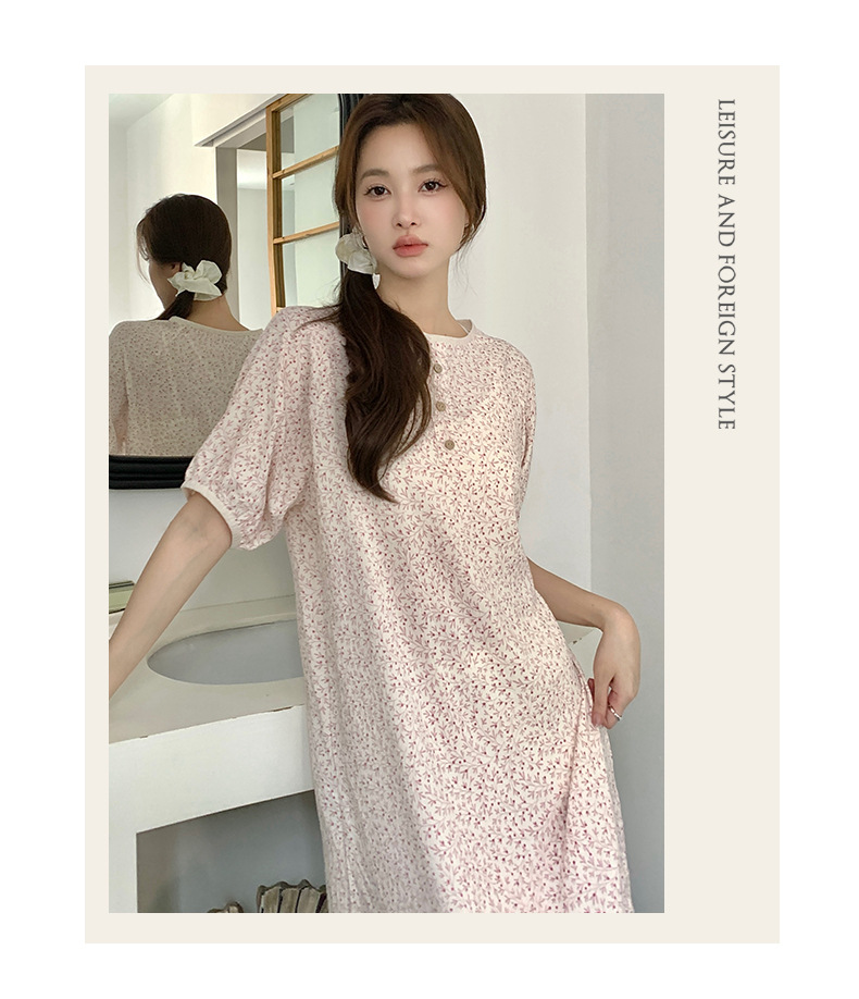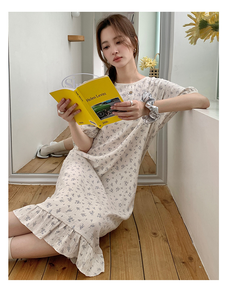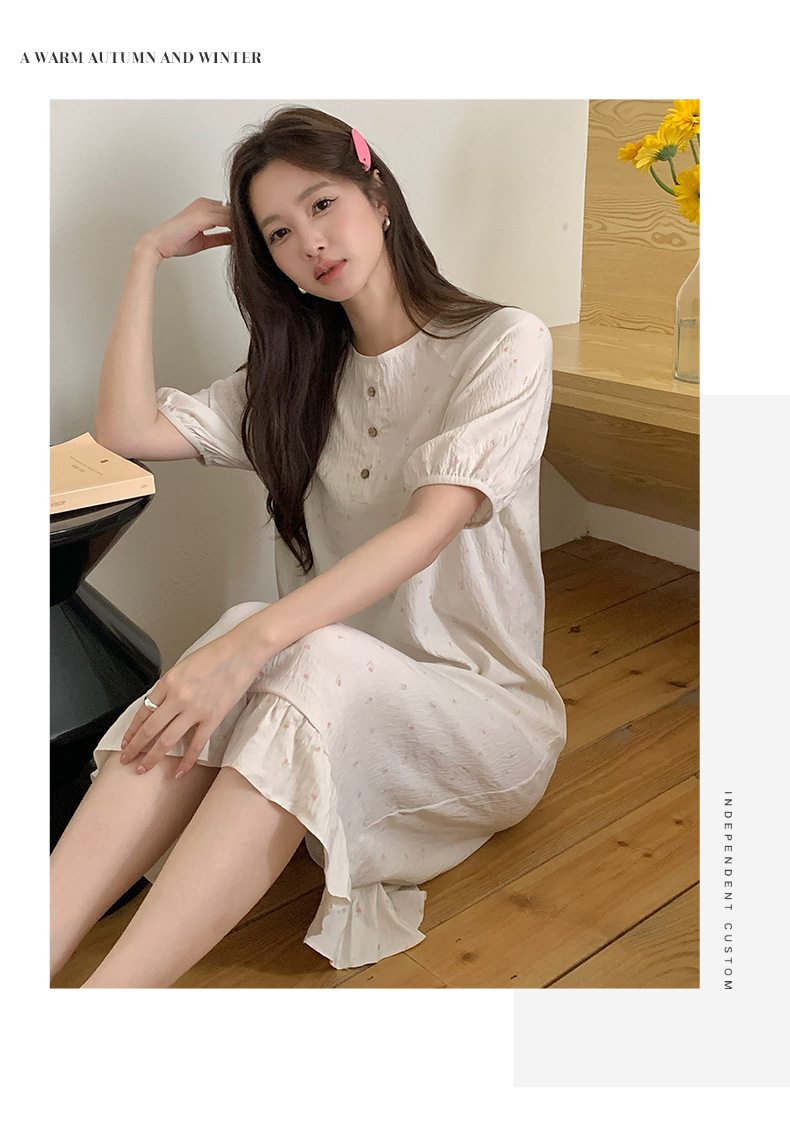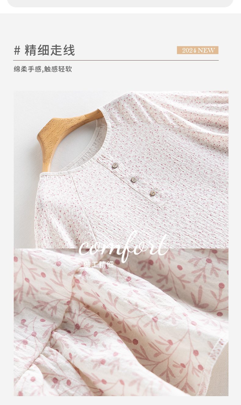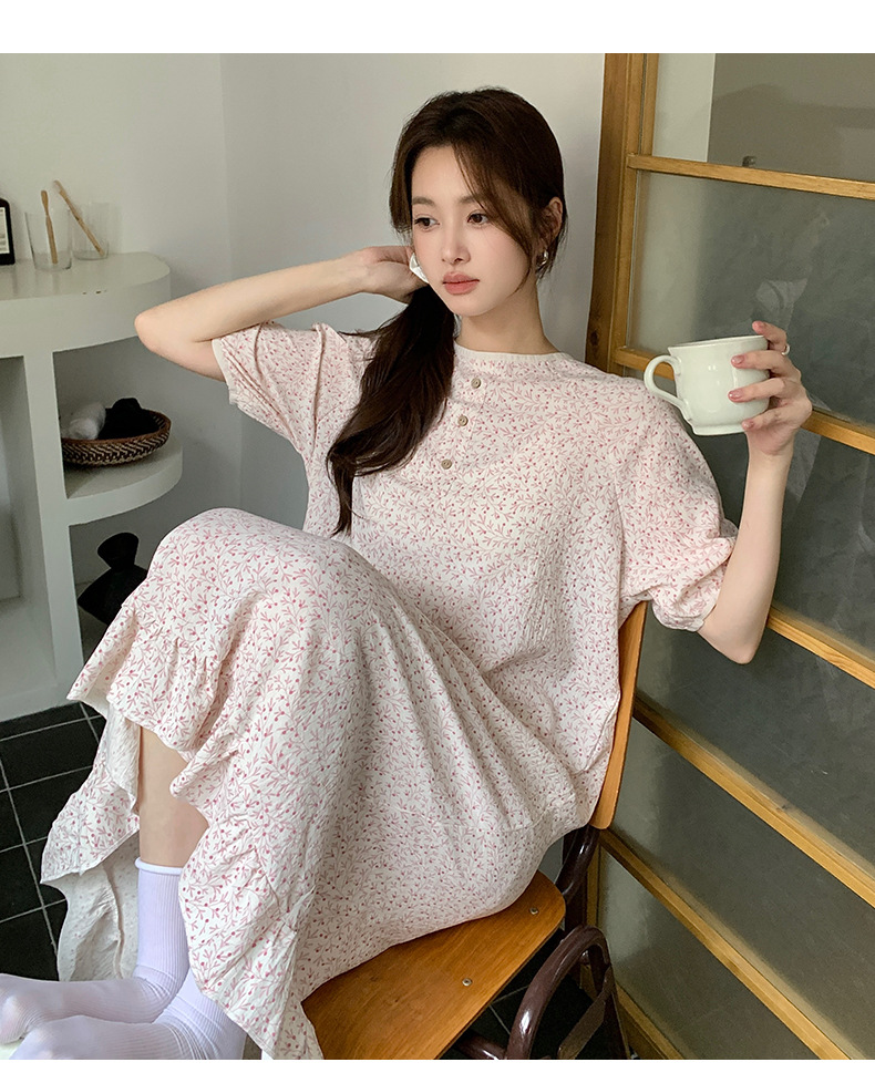 【绵柔轻软】春夏长款纽扣肌理感碎花睡裙女 新款宽松短袖连衣裙薄款睡衣家居服