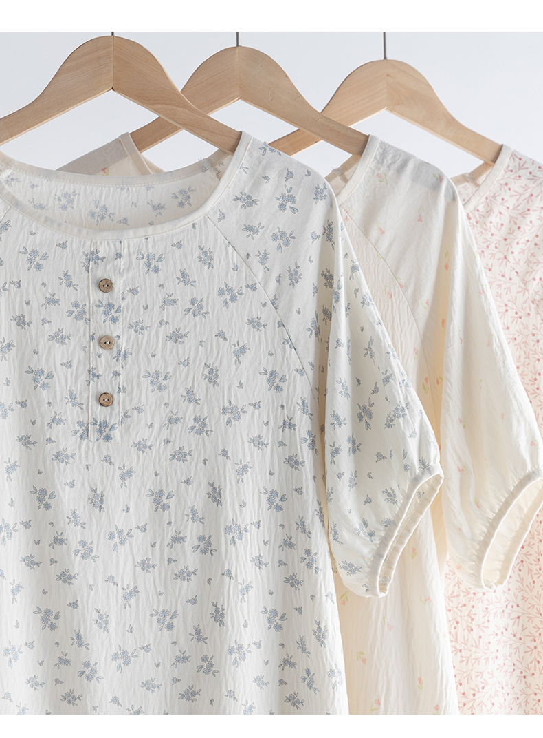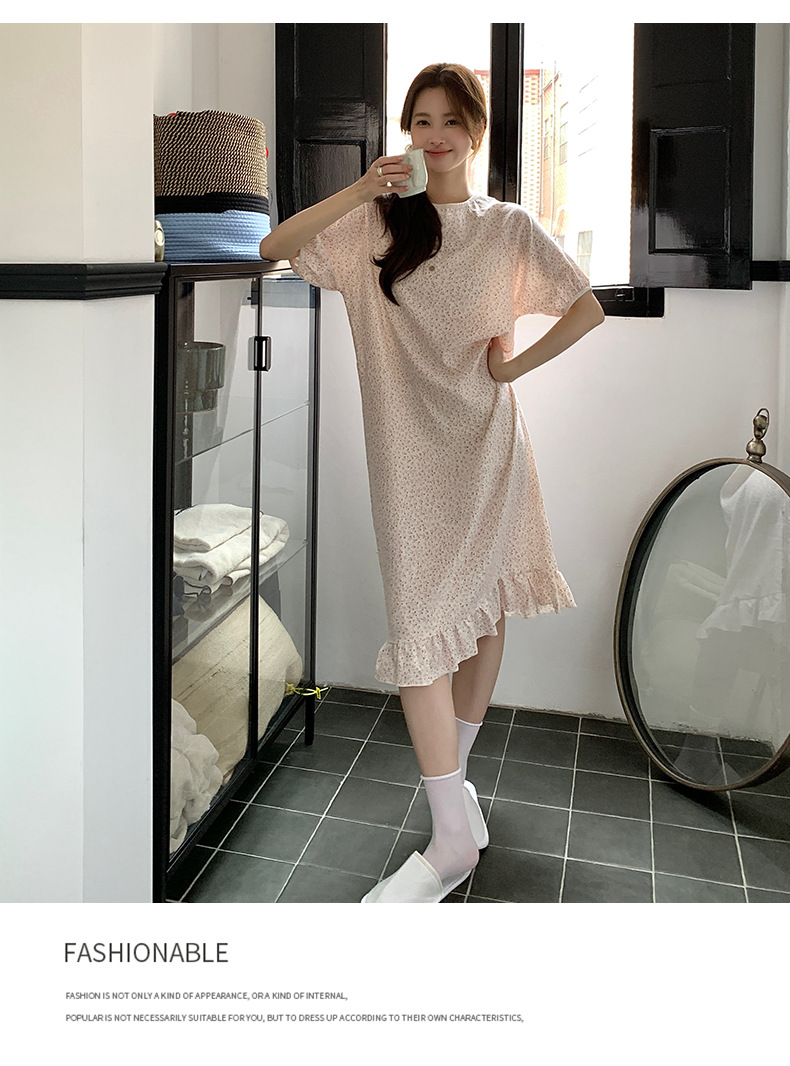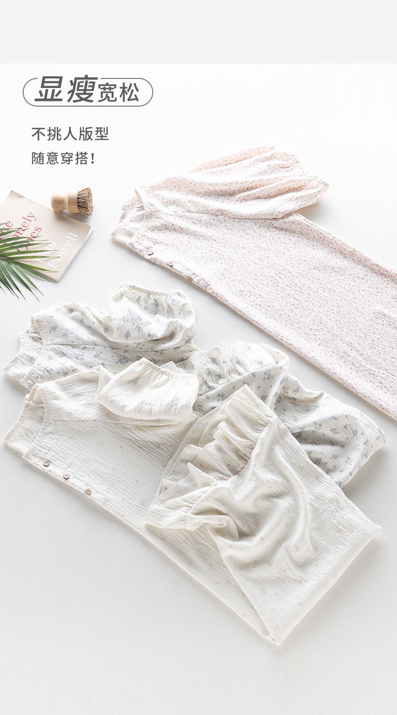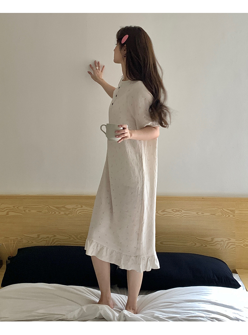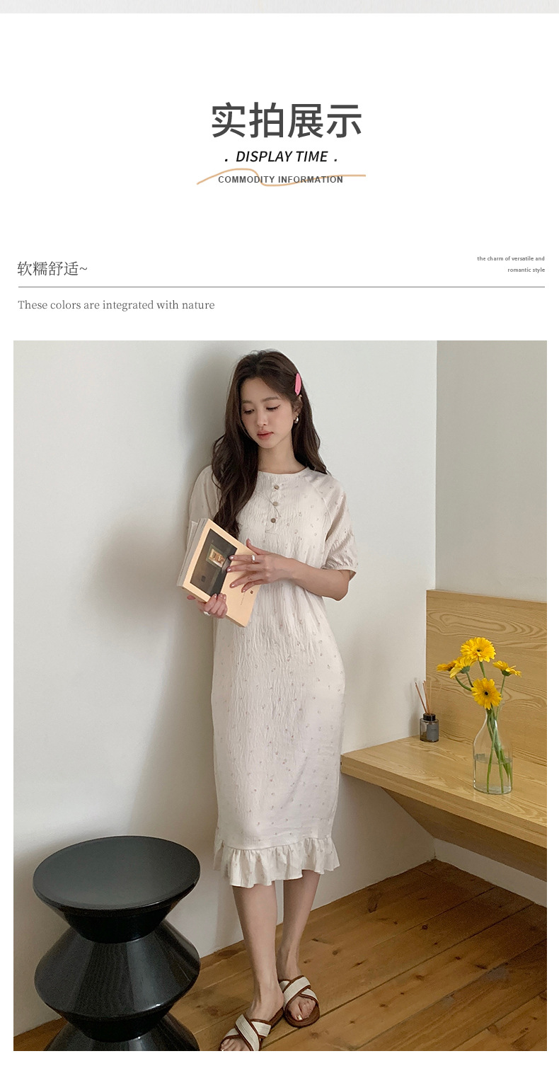 【绵柔轻软】春夏长款纽扣肌理感碎花睡裙女 新款宽松短袖连衣裙薄款睡衣家居服