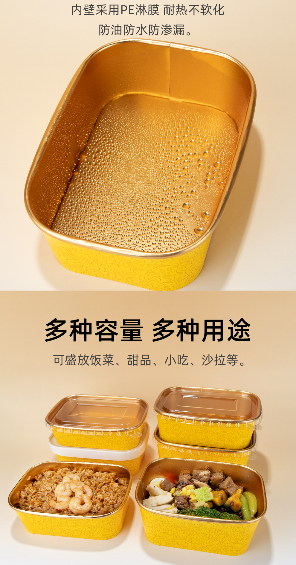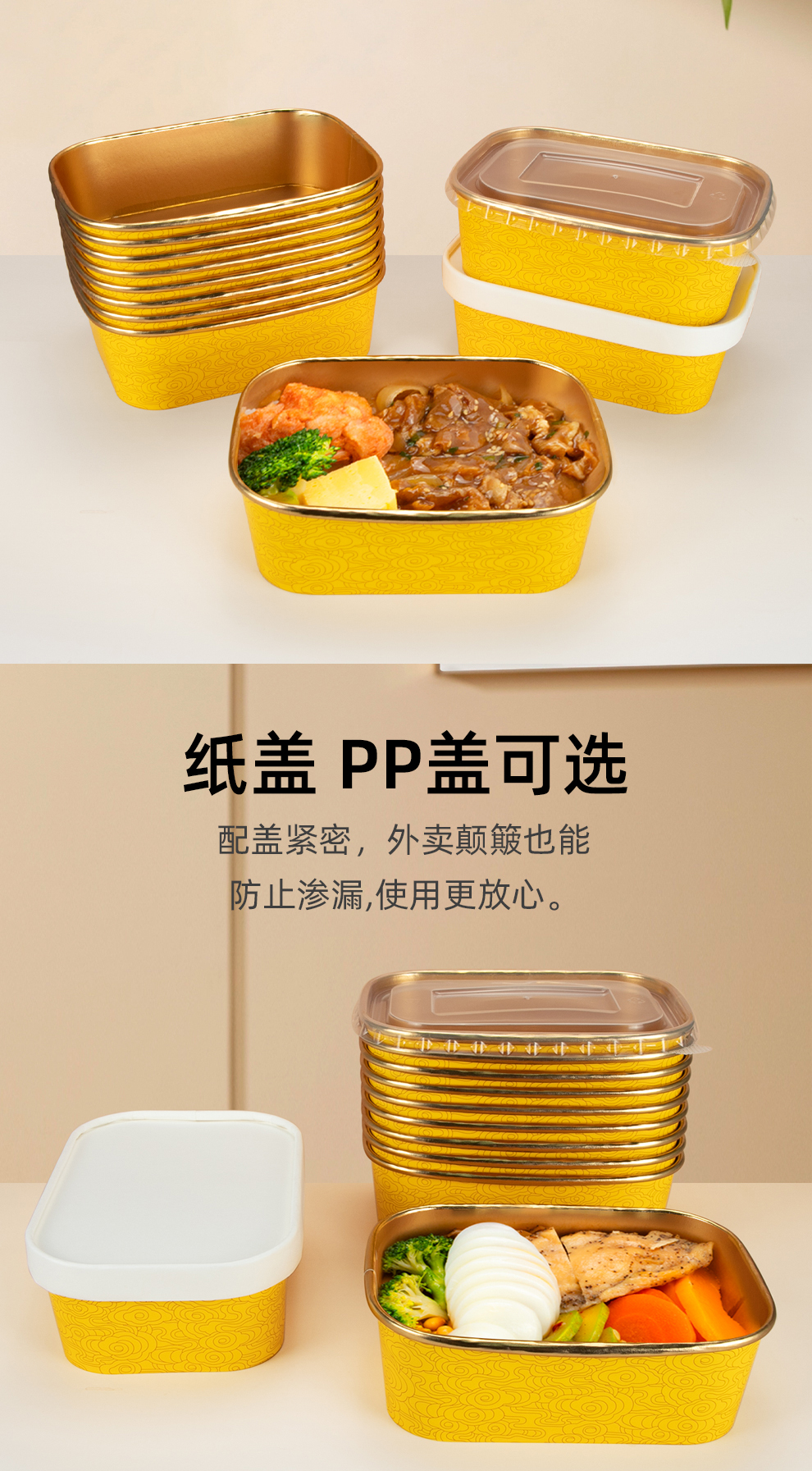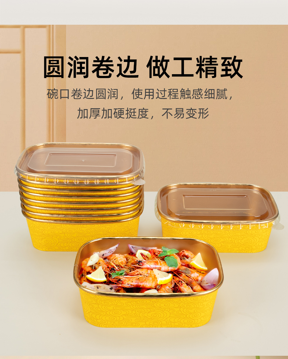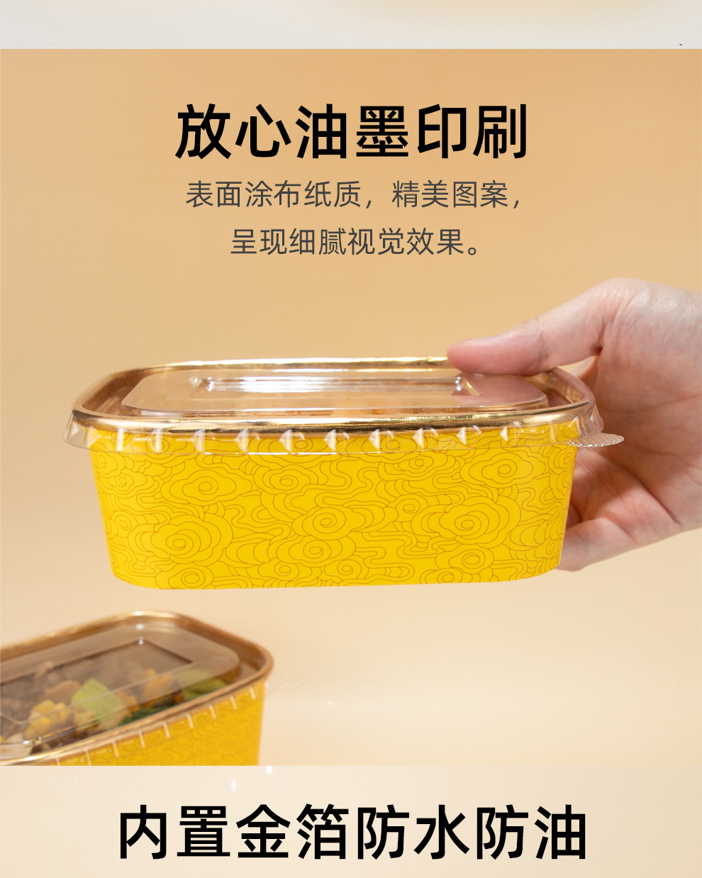 喇叭花一次性餐盒祥云金箔纸碗方形带盖饭碗小海鲜打包盒外卖便当