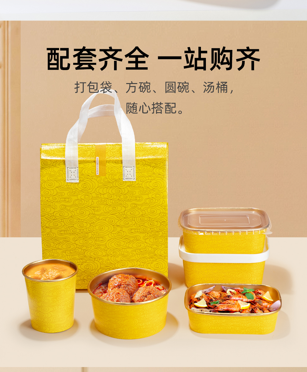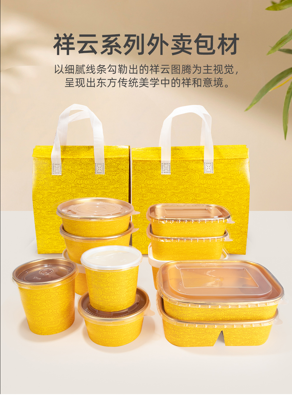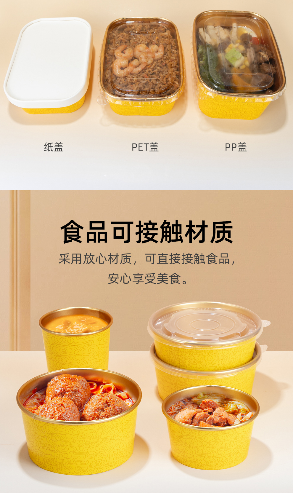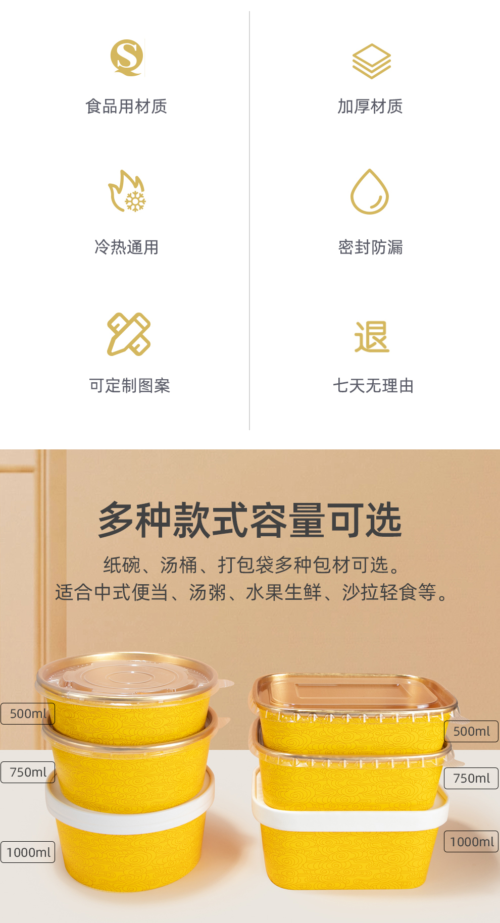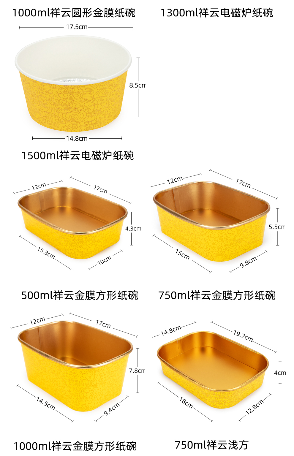 喇叭花一次性餐盒祥云金箔纸碗方形带盖饭碗小海鲜打包盒外卖便当