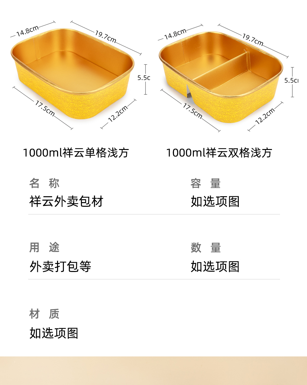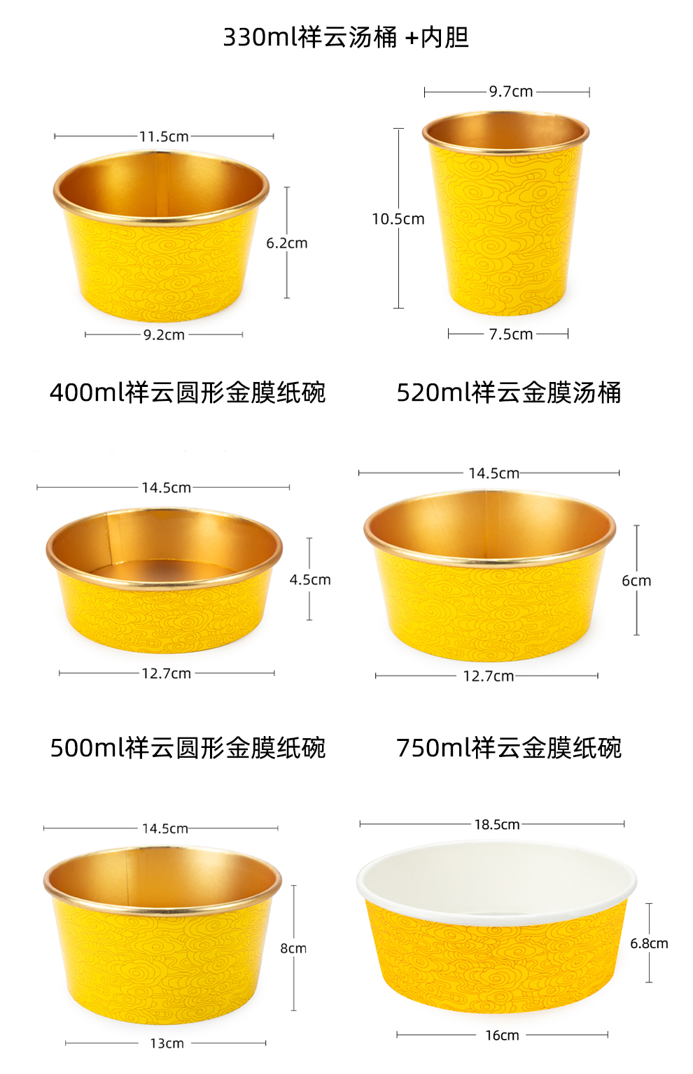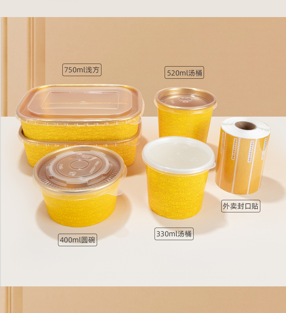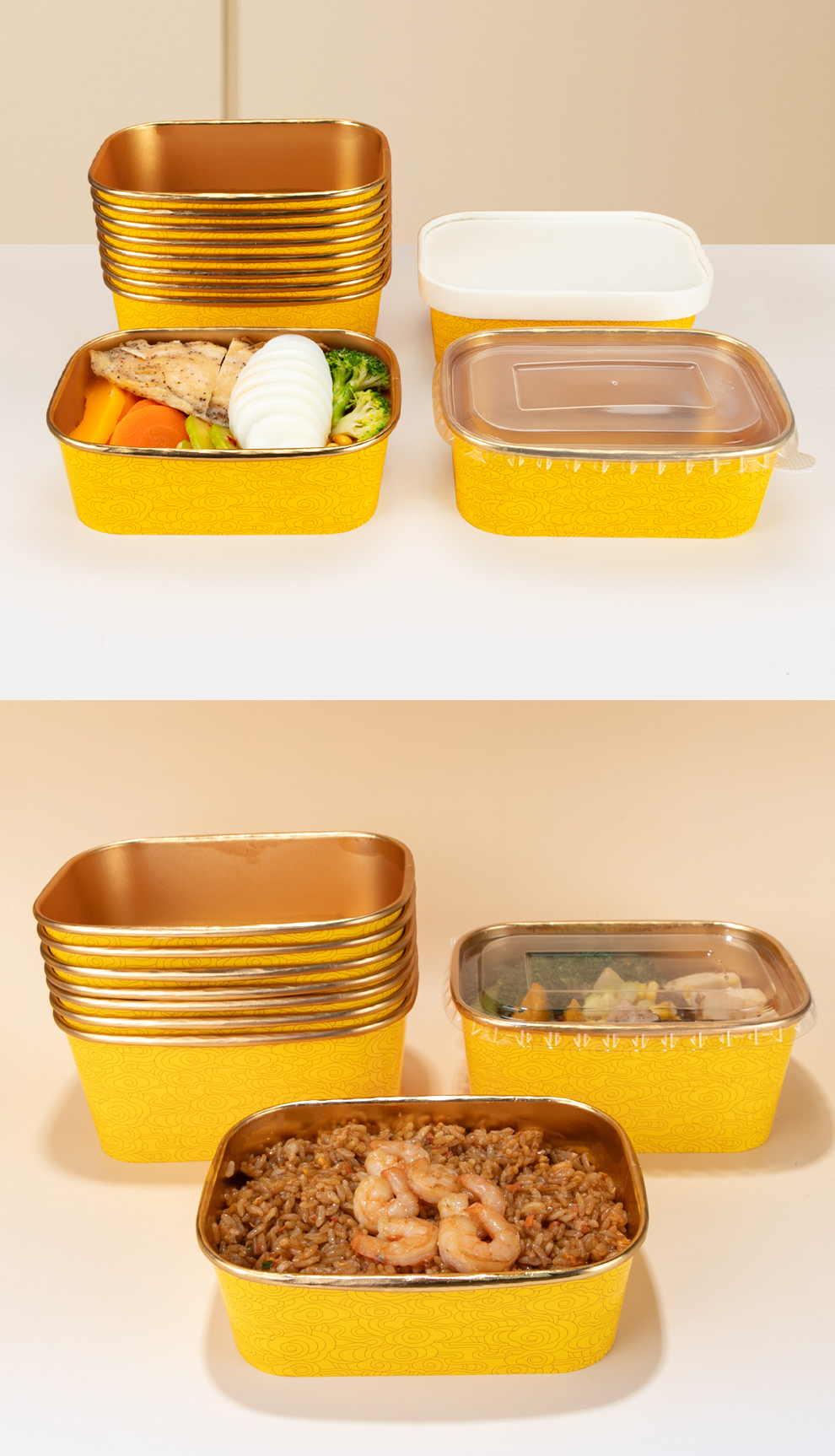 喇叭花一次性餐盒祥云金箔纸碗方形带盖饭碗小海鲜打包盒外卖便当