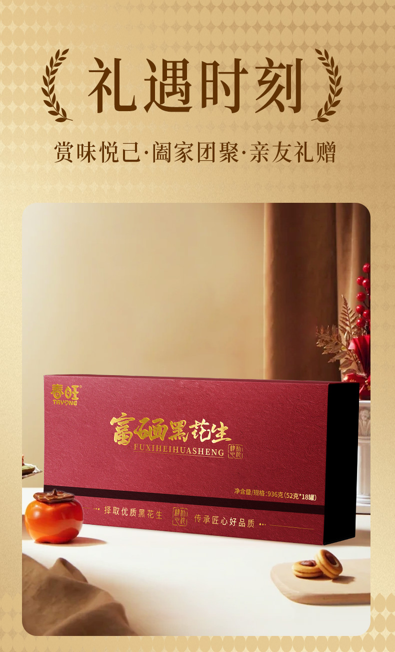 春旺黑花生鸿运金礼礼盒送长辈过节送礼富硒