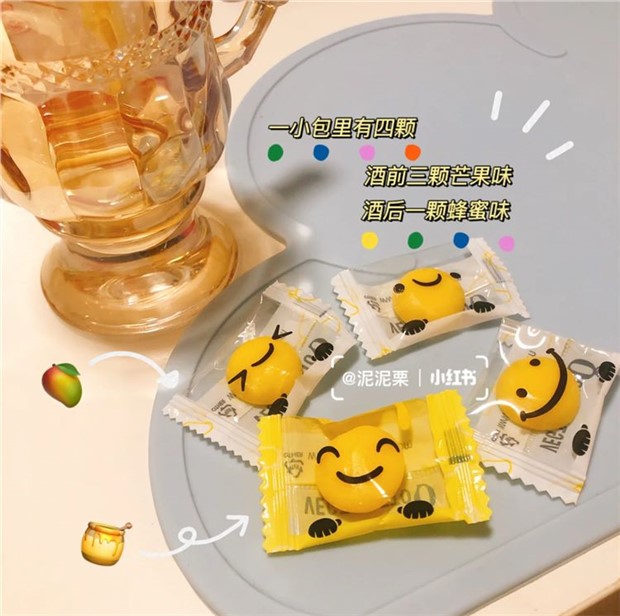 3芒果糖+1蜂蜜糖,芒果为酒前喝,蜂蜜味酒后喝!