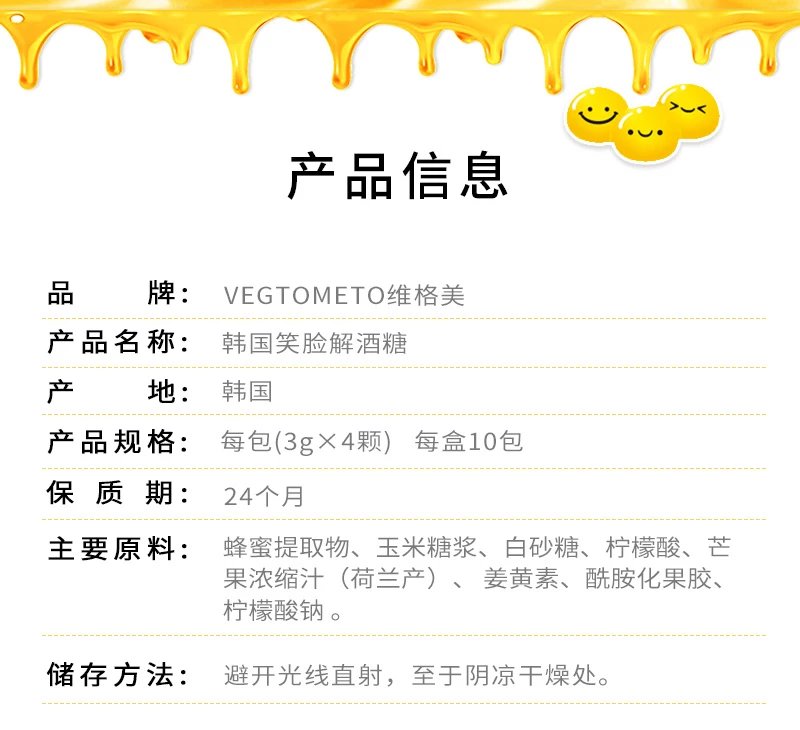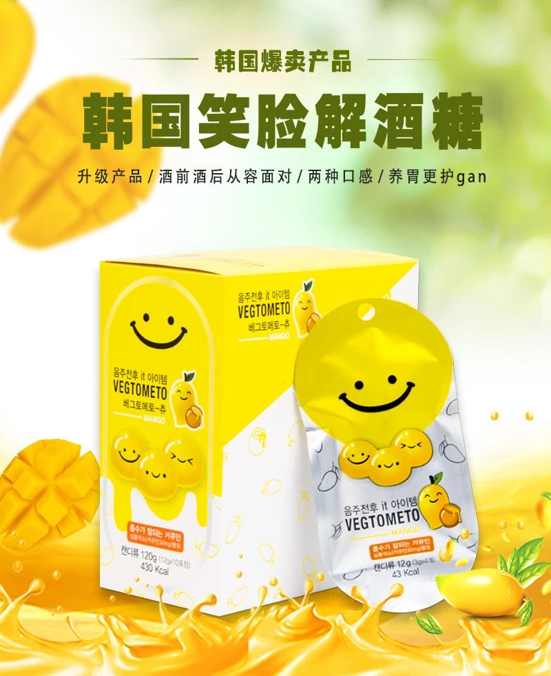 【韩国VEGTOMETO维格美笑脸解酒糖】 一盒10包,酒桌救命高手 酒场如战场,年底了,婚宴,年会,流水席,各种酒宴,你准备好了吗?解酒糖必备