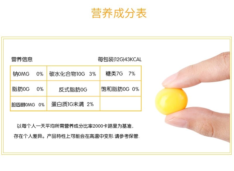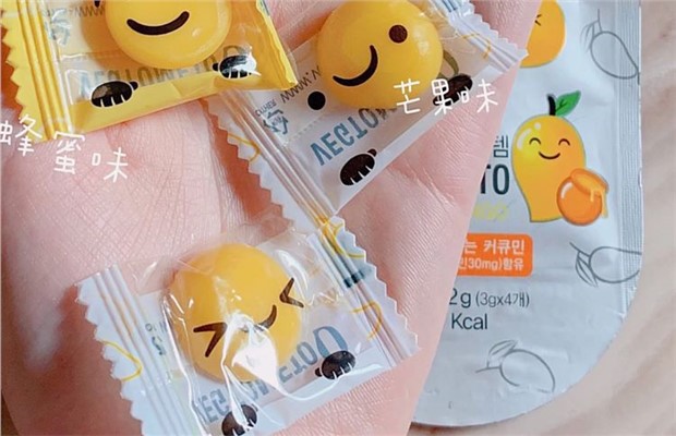 主要原料:蜂蜜提取物、玉米糖浆、白砂糖、柠檬酸、芒果浓缩汁(荷兰产)、姜黄素、酰胺化果胶、柠檬酸钠。
