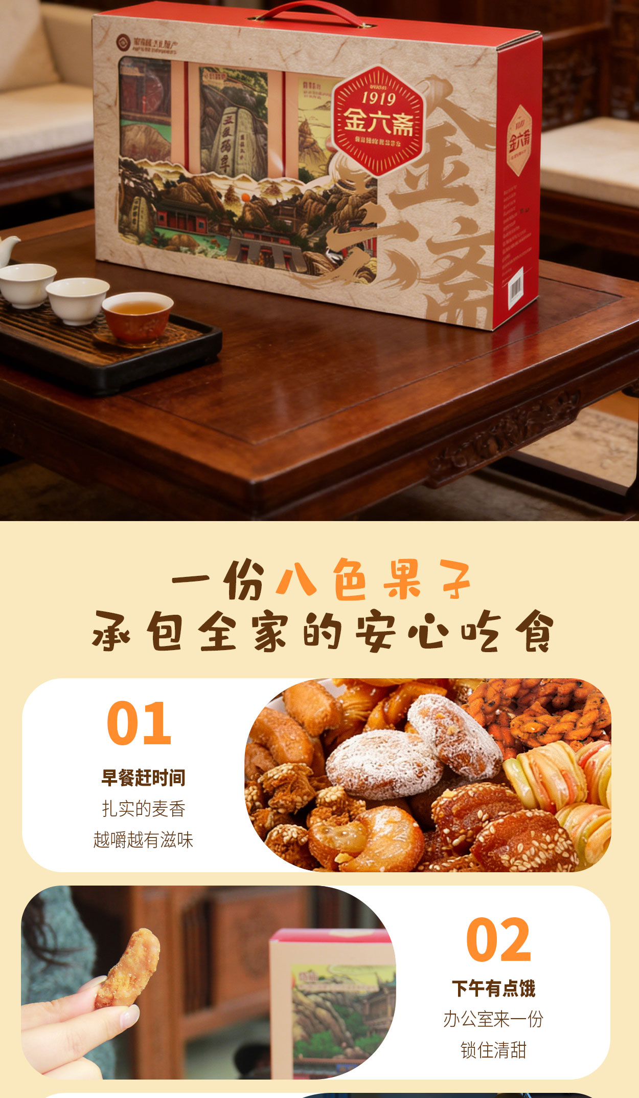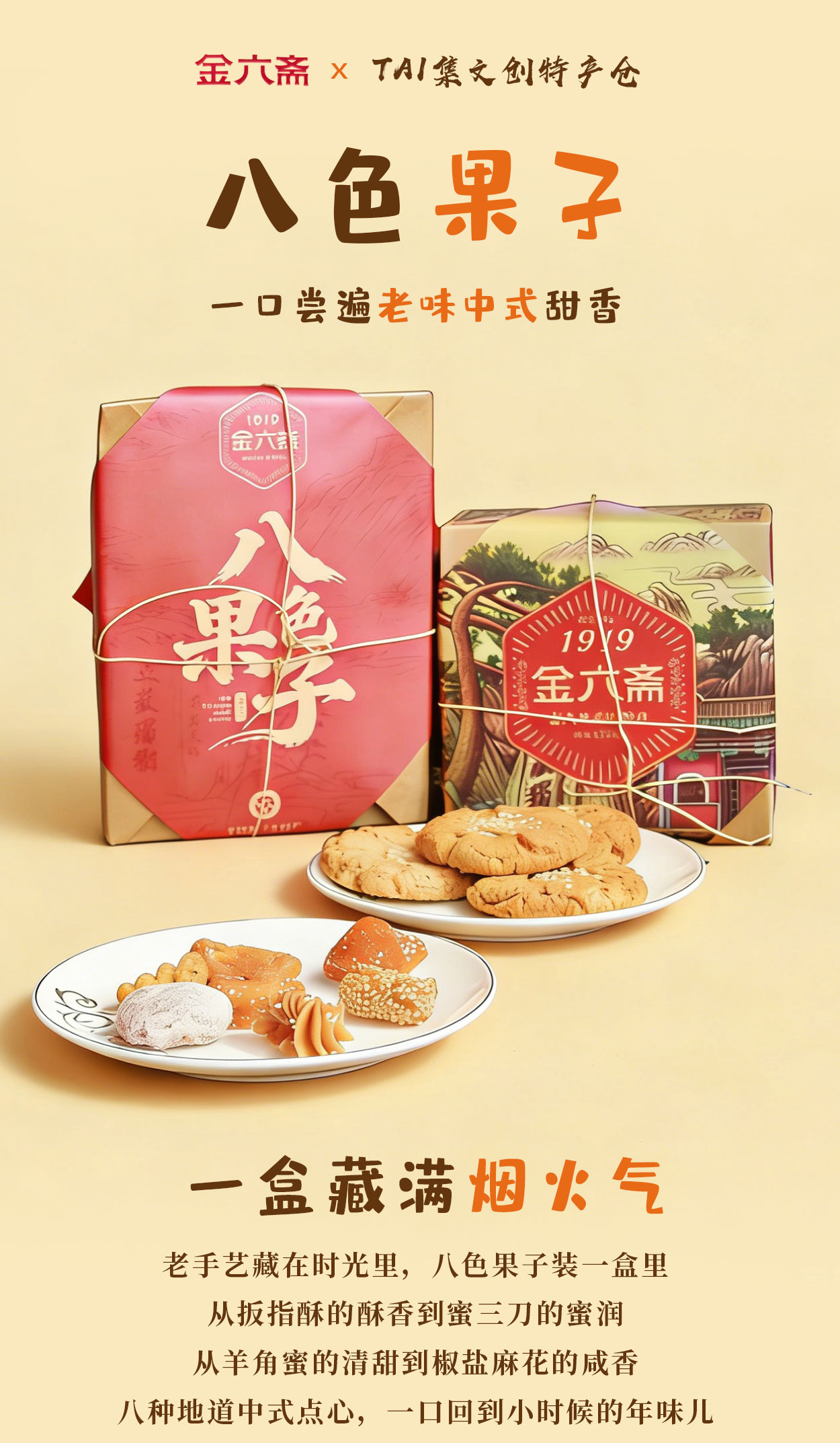 山东特产泰山非遗金六斋八色果子桃酥怀旧零食手工糕点礼盒装送礼佳品