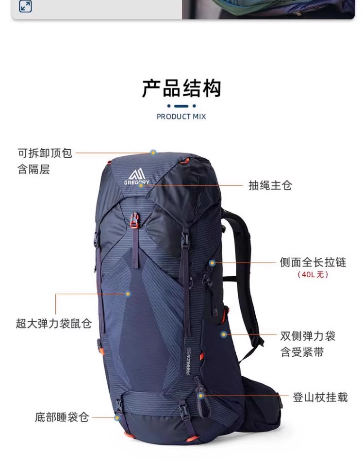 GREGORY格里高利PARAGON无界50轻量化重装徒步露营登山双肩包男25款
