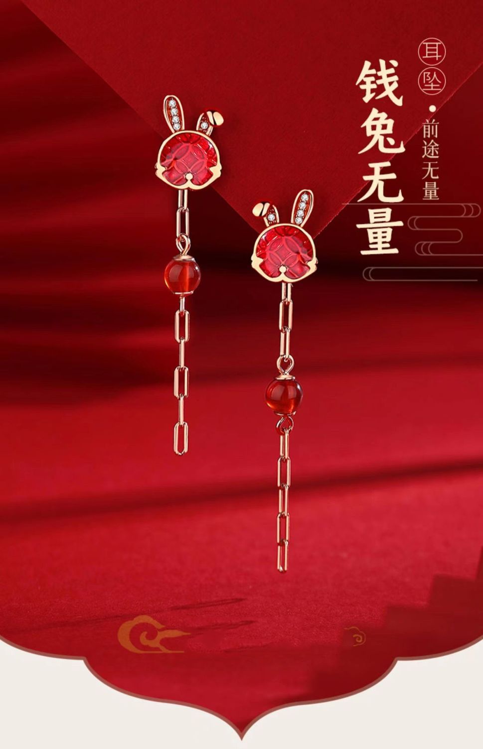 【钱兔无量】本命年兔子耳钉女新款潮轻奢小众耳饰感生日礼物