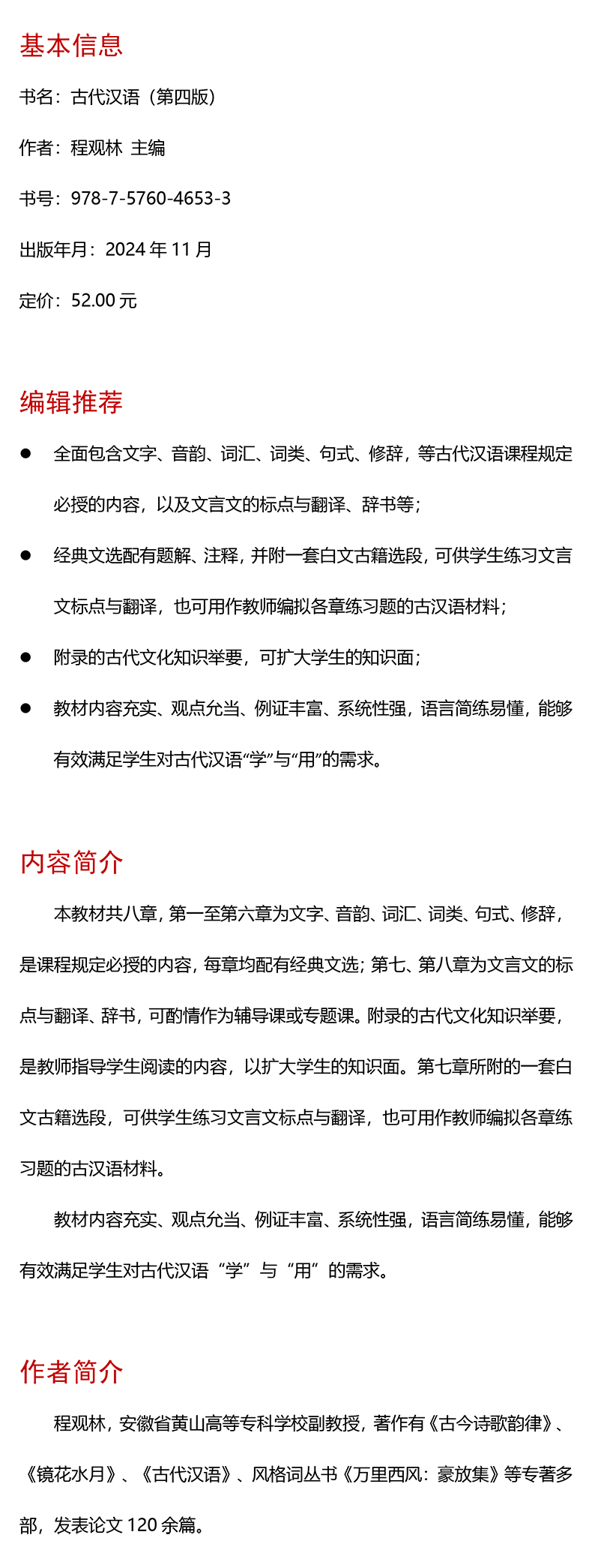 古代汉语 第四版 程观林 高校文科精品教材 古代文化知识
