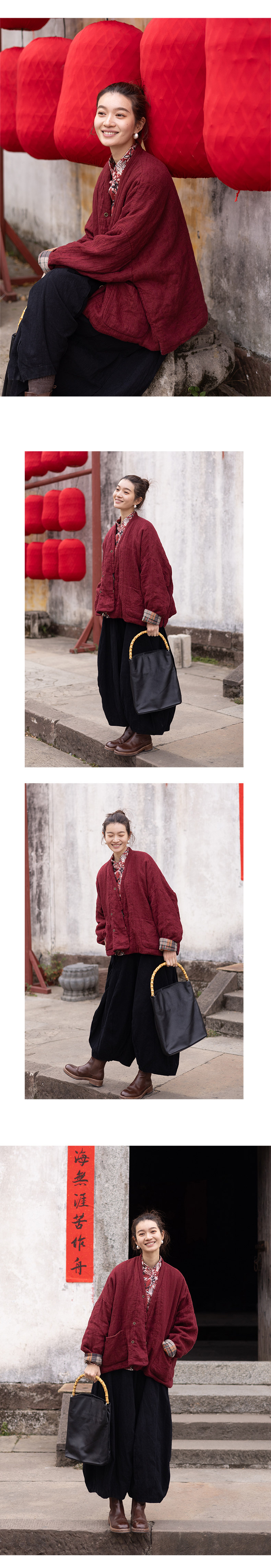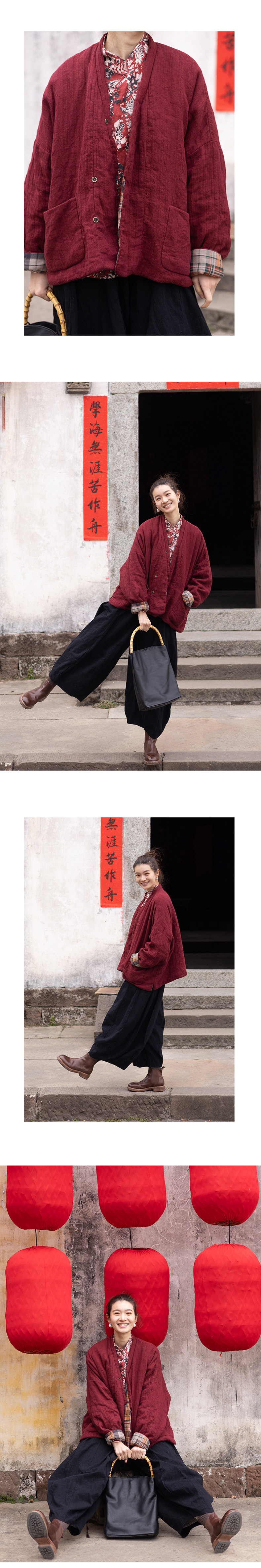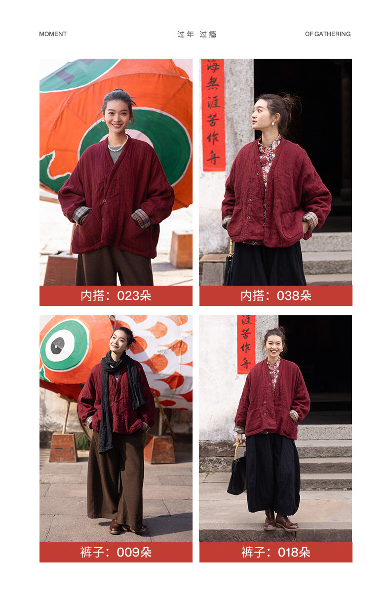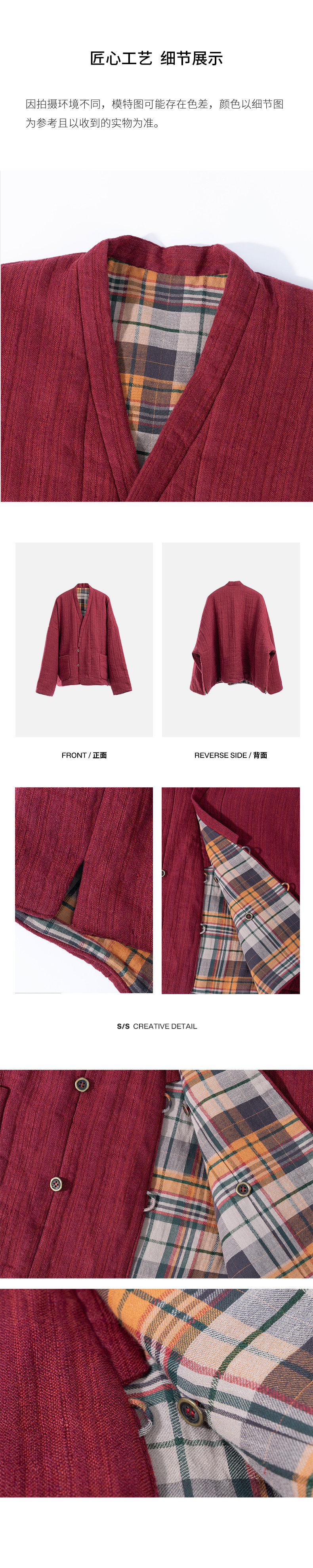 特绽放037朵/故里棉衣·色织亚麻斜襟内拼格纹里布长袖棉服厚外套
