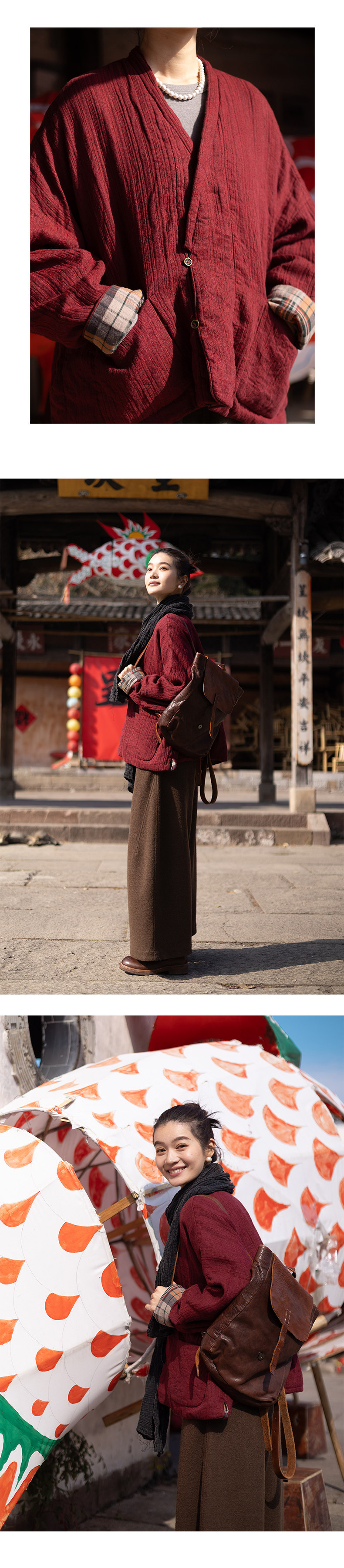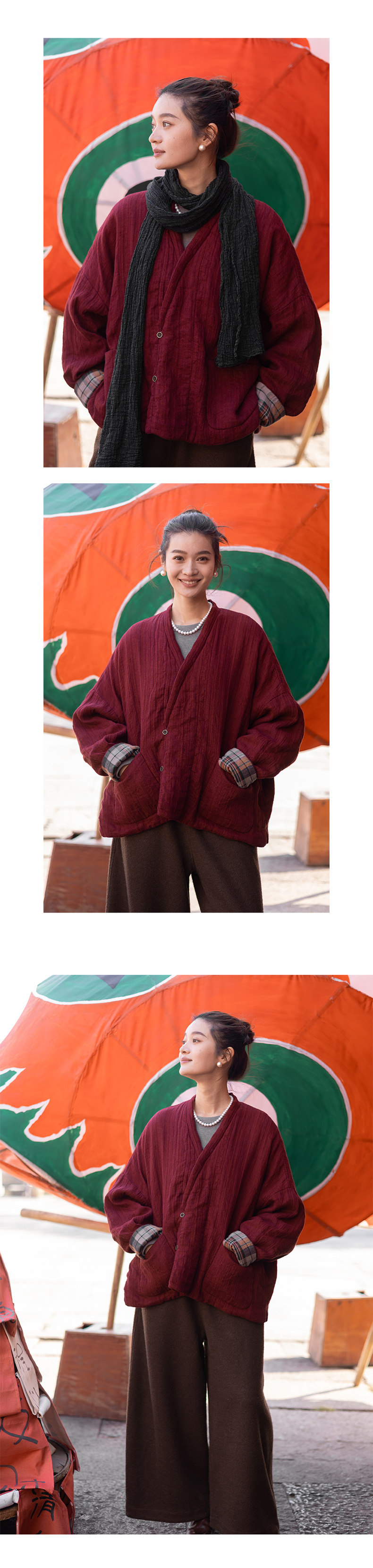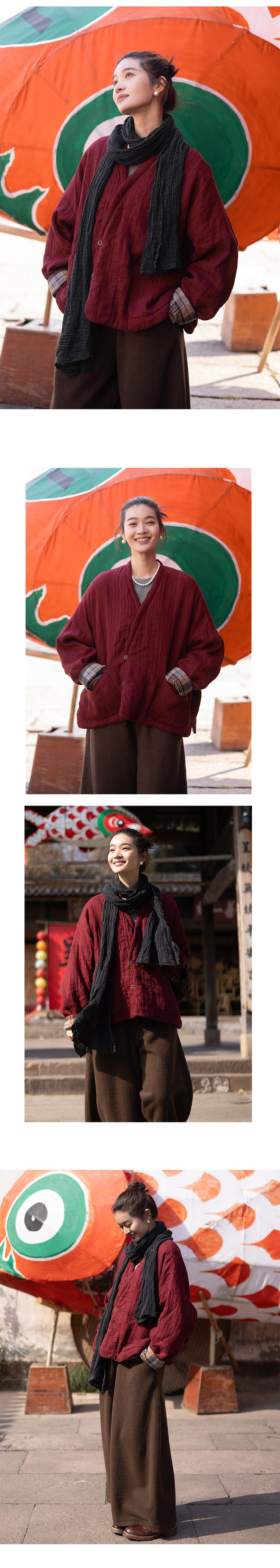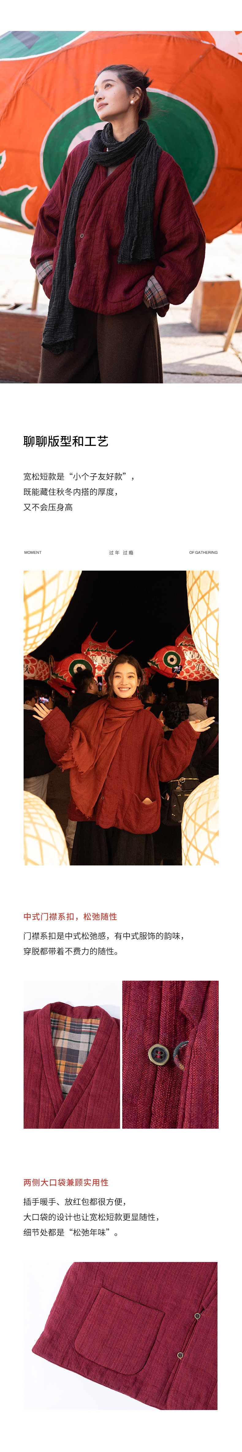 特绽放037朵/故里棉衣·色织亚麻斜襟内拼格纹里布长袖棉服厚外套