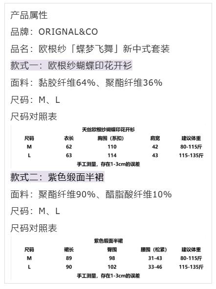 ORIGNAL&CO 欧根纱「蝶梦飞舞」新中式套装(下单3-7天发货)