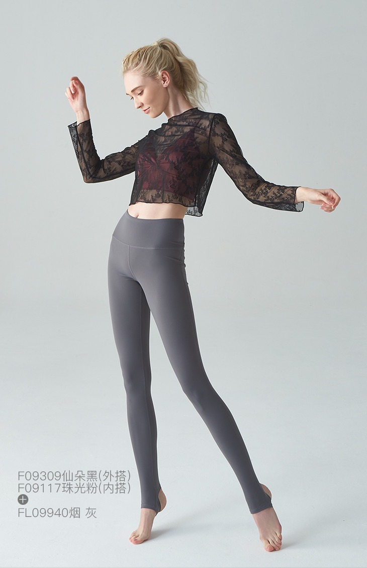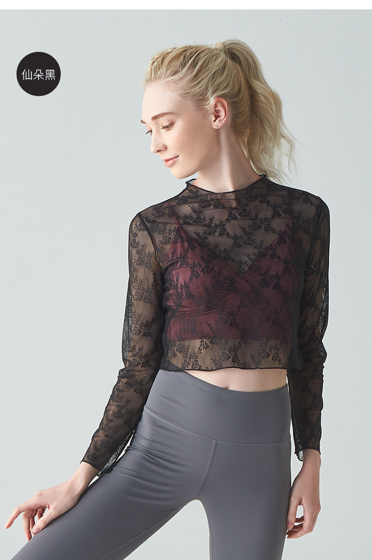 F09309蕾丝瑜伽外搭长袖T恤春夏款(不含胸垫)