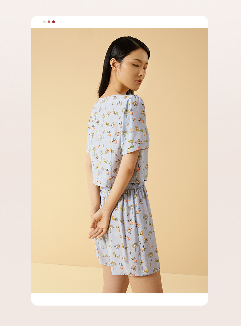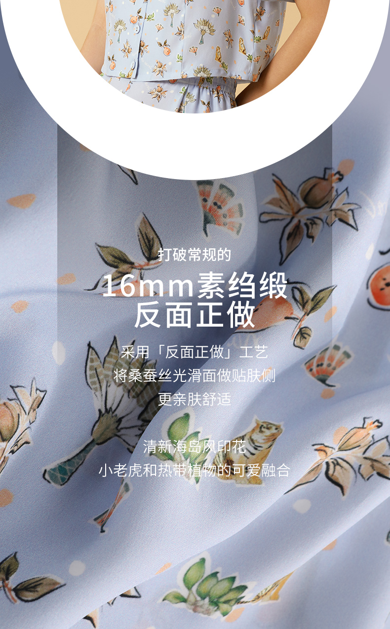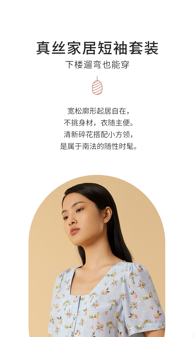 金三塔100%桑蚕丝印花复古方领女士真丝短袖短裤衣裤套时尚可外穿 YSFCB405