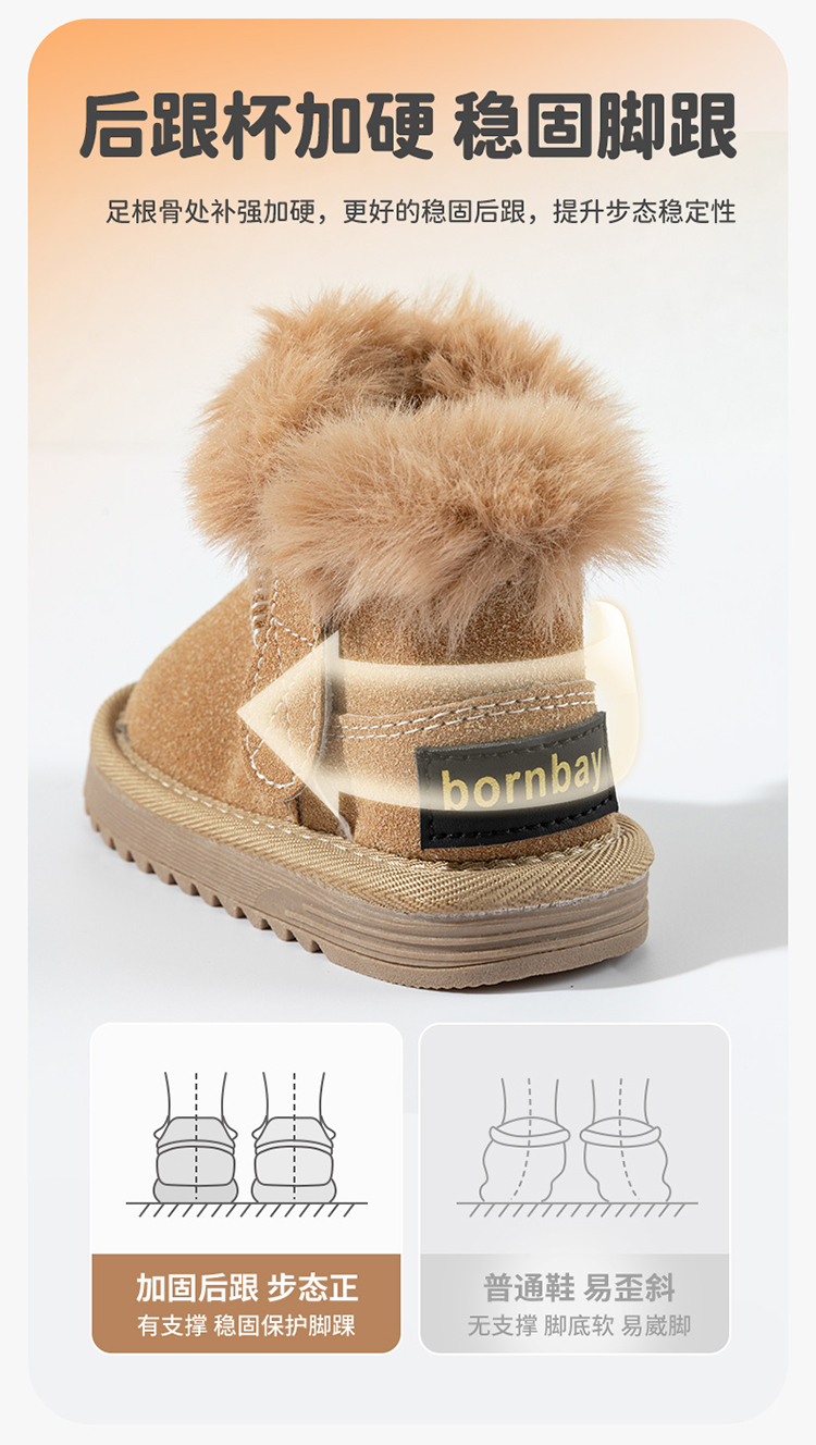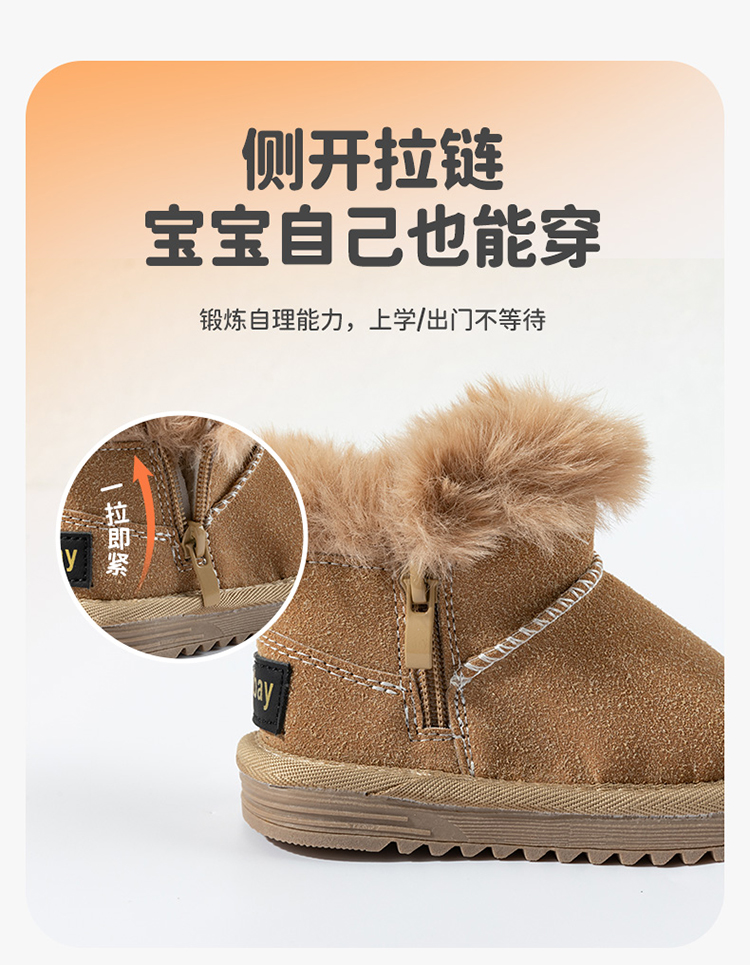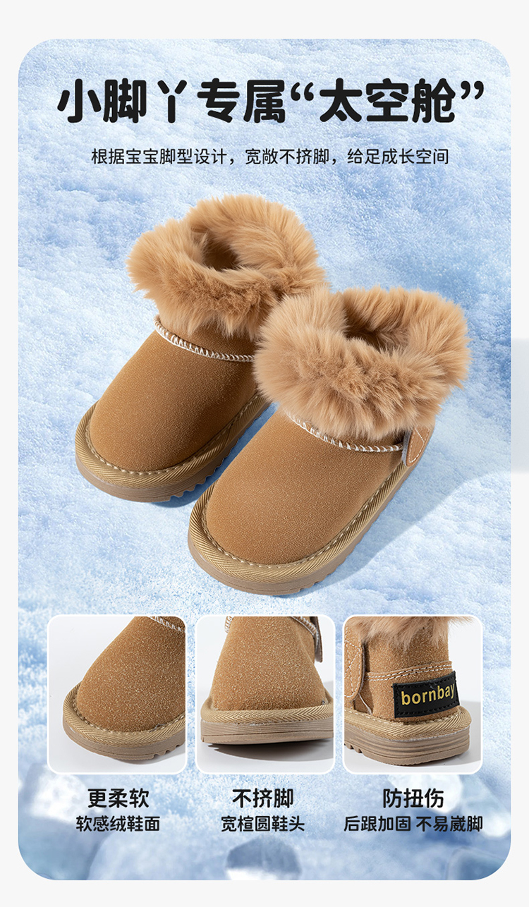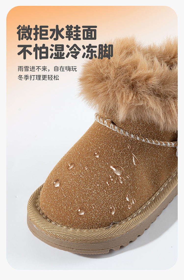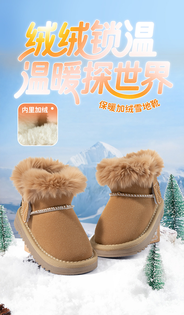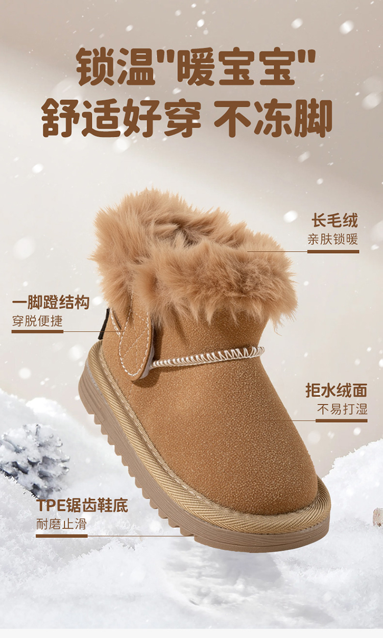 贝贝怡童鞋儿童雪地靴男女童短靴加厚加绒2025秋冬靴子百搭保暖棉靴ZB4EX006