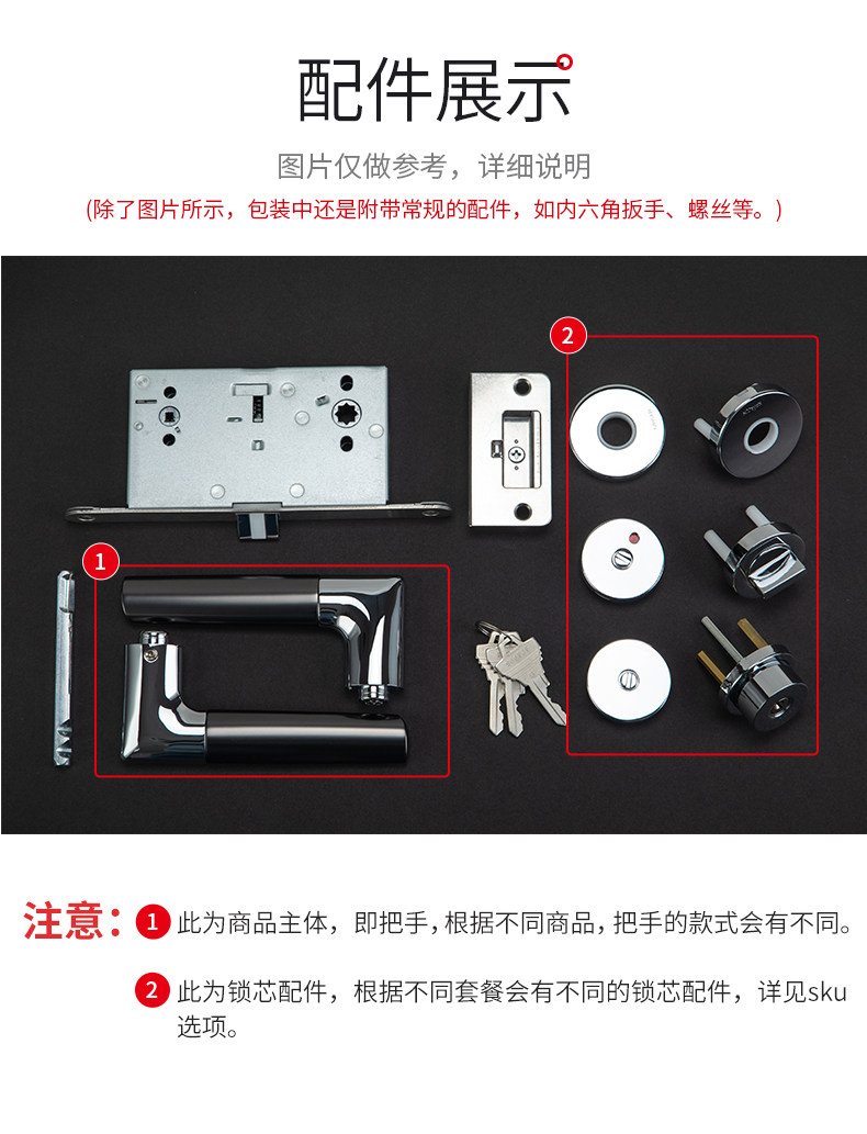 KAWAJUN静音门锁家用通用型把手门锁 室内卧室房门卫浴安全门锁
