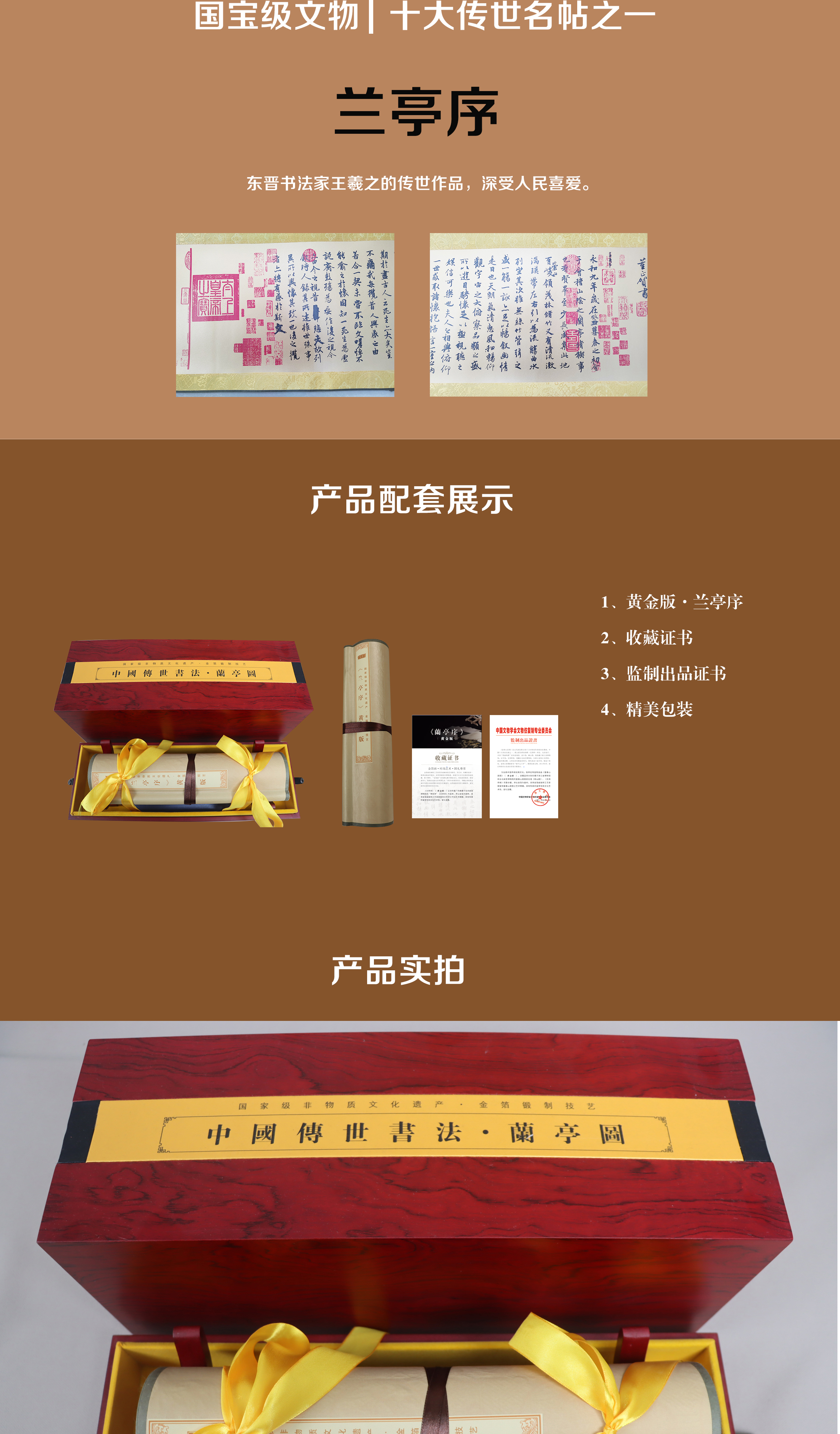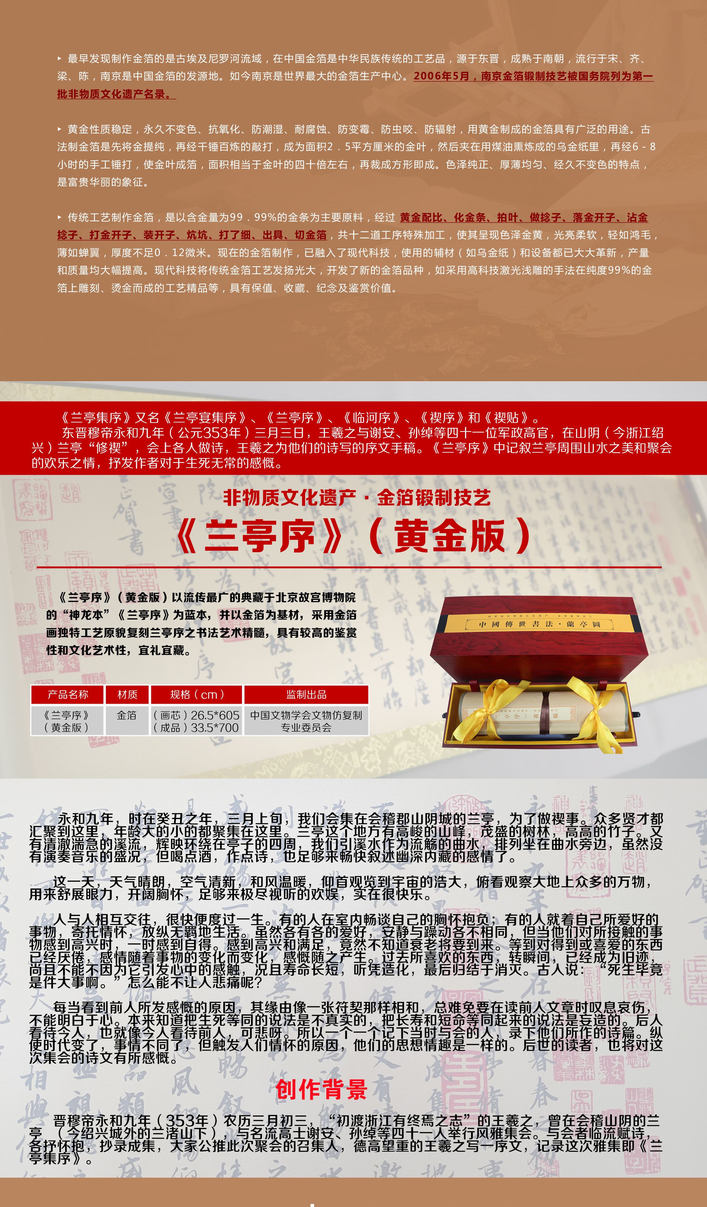 《兰亭序》黄金版丝绸画,非遗金箔锻制技艺 1:1还原书法精髓