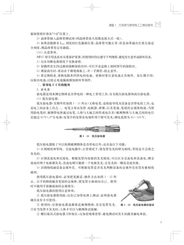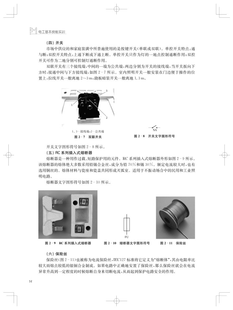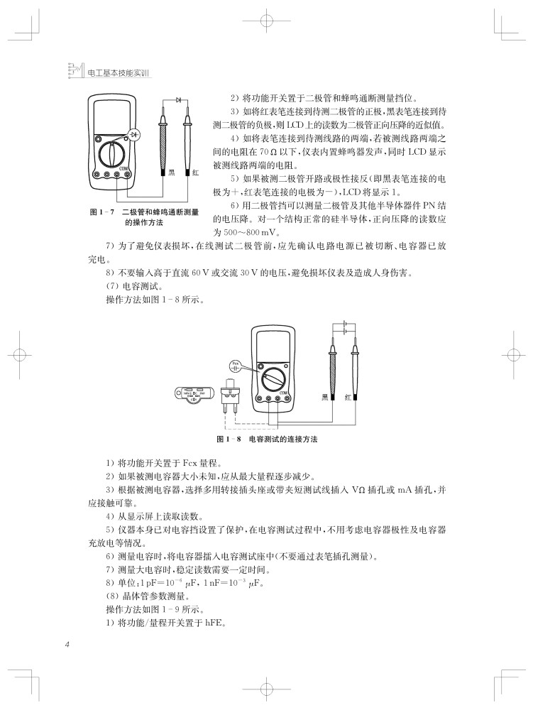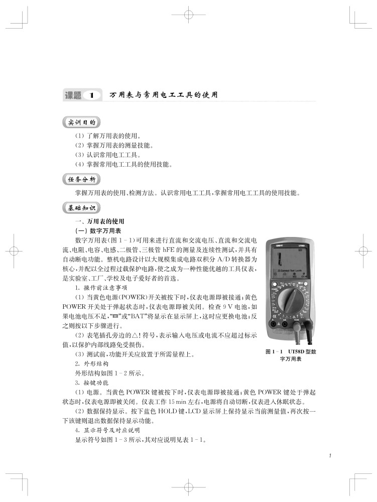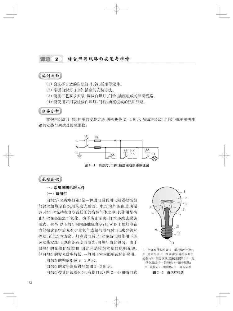 课题1 万用表与常用电工工具的使用课题2 综合照明线路的安装与维修课题3 日光灯照明线路的安装与维修课题4 单相有功电能表组成的量电装置线路课题5 中、小型异步电动机的测试与检修课题6 三相变压器同名端的判断、接线与故障分析课题7 低压电器的拆装、检修与调试课题8 常用电子元件的识别与检测课题9 单相半波整流电路的安装与调试课题10 单相全波整流电路的安装与调试课题11 单相桥式整流电路的安装与调试课题12 直流电源与三极管静态工作点测量电路的安装与调试课题13 单相桥式整流、RC滤波电路的安装与调试课题14 电池充电器电路的安装与调试课题15 三相异步电动机连续与点动混合控制线路的安装与调试课题16 两台电动机顺序启动、顺序停转控制线路的安装与调试课题17 三相异步电动机正反转控制线路的安装与调试课题18 三相异步电动机串电阻器减压启动控制线路的安装与调试课题19 三相异步电动机星~三角减压启动控制线路的安装与调试课题20 带抱闸制动的三相异步电动机两地控制线路的安装与调试课题21 三相异步电动机反接制动控制线路的安装与调试课题22 工作台自动往返控制线路的安装与调试课题23 三相异步电动机延时启动、延时停止控制线路的安装与调试课题24 三相异步电动机连续与点动混合控制线路故障的分析与排除课题25 三相异步电动机正反转控制电路故障的分析与排除课题26 三相异步电动机星~三角减压启动控制电路故障的分析与排除课题27 三相异步电动机延时启动、延时停止控制电路故障的分析与排除