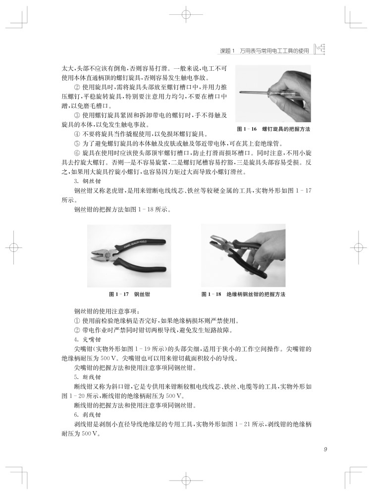 【前言】本书编写过程始终贯穿;以电工五级标准为依据,以企业需求为导向,以职业能力为核心"的理念,采用模块化的编写方式,适用于电工(五级)职业技能培训。全书分为27个课题单元,主要内容包括动力及照明电路的接线调试与维修、低压电器及电动机的拆装维修、电子电路的安装与调试、电气控制电路的接线与调试、电动机控制电路的维修等。本书由上海工程技术大学高职学院教师孙巍编写。在内容上,力求做到理论与实际相结合,符合循序渐进的教学要求,从打好基础入手,突出机电类教学的特点。技能实训依据由浅入深、由易到难的教学原则,力求培养出基本水平应用能力强的学生,使他们能得心应手地运用所学的知识,为今后技能学习打下扎实、牢固的基础。本书整合了电工五级所需掌握的基本知识和技能实践,实用性强。本书适合高等职业院校、高等专科院校、中等职业院校机电类相关专业作为教材使用,也适合用作参加电工五级职业技能鉴定考试前的复习教材。作者热诚期望本书能对职业教育做出些许贡献。由于作者的实践经验和理论水平有限,书中疏漏之处在所难免,恳请读者提出宝贵意见和建议。
