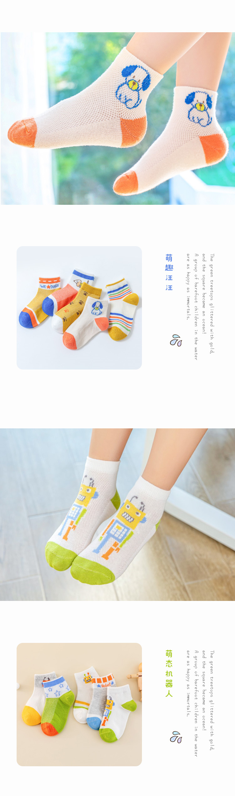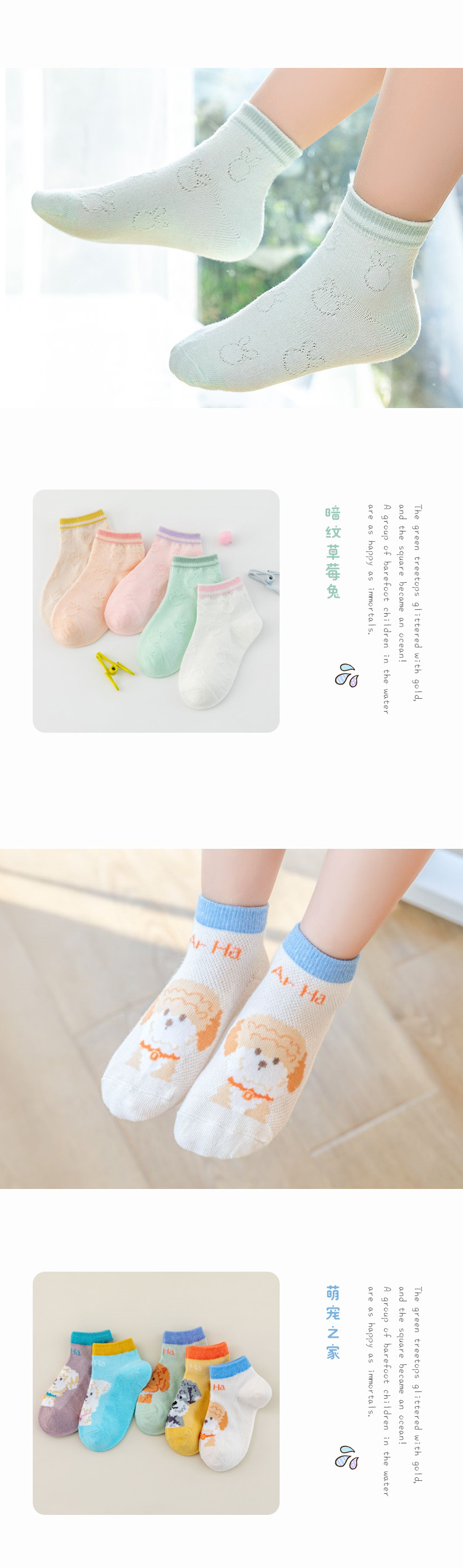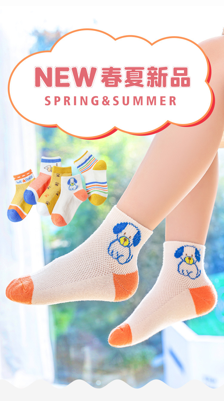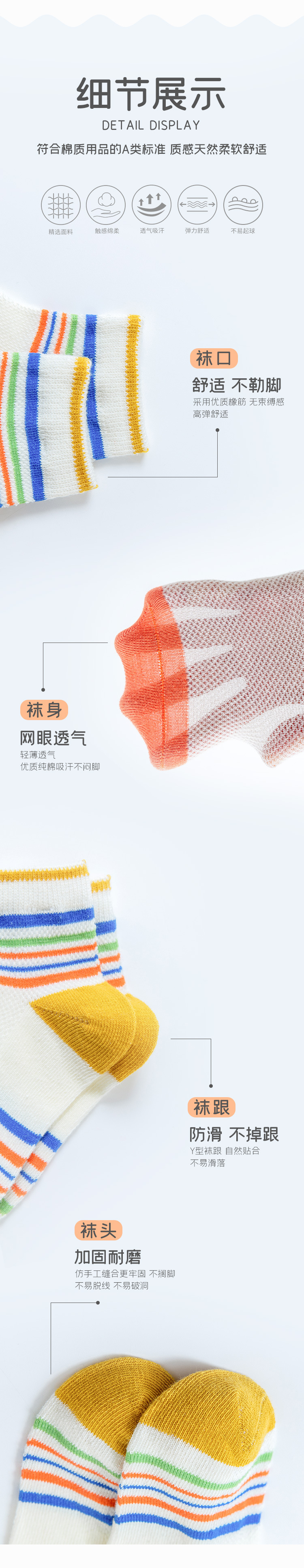 【5双装 甄选优质精梳棉 透气不勒脚】儿童袜子春夏网眼轻薄宝宝袜柔软吸汗男女童棉质短袜船袜