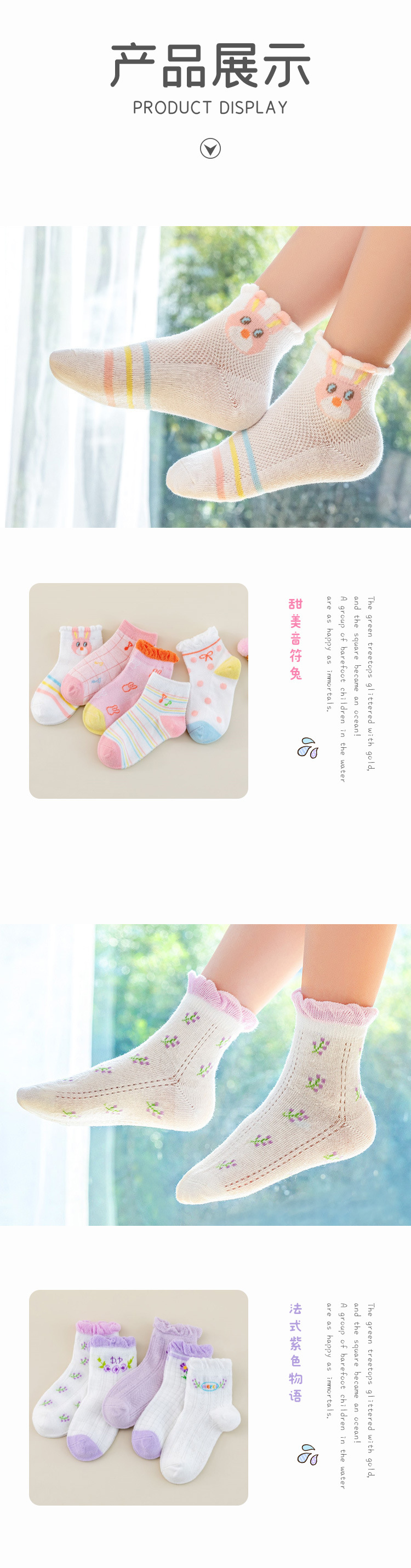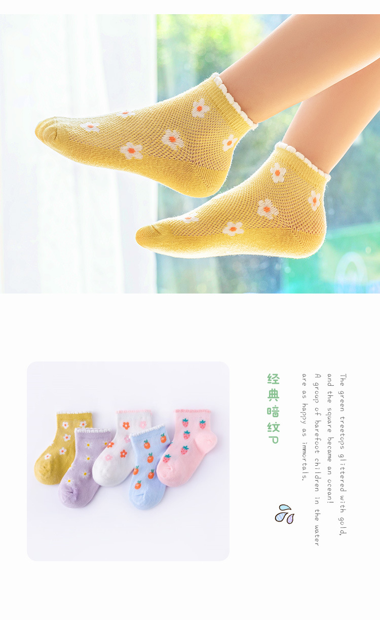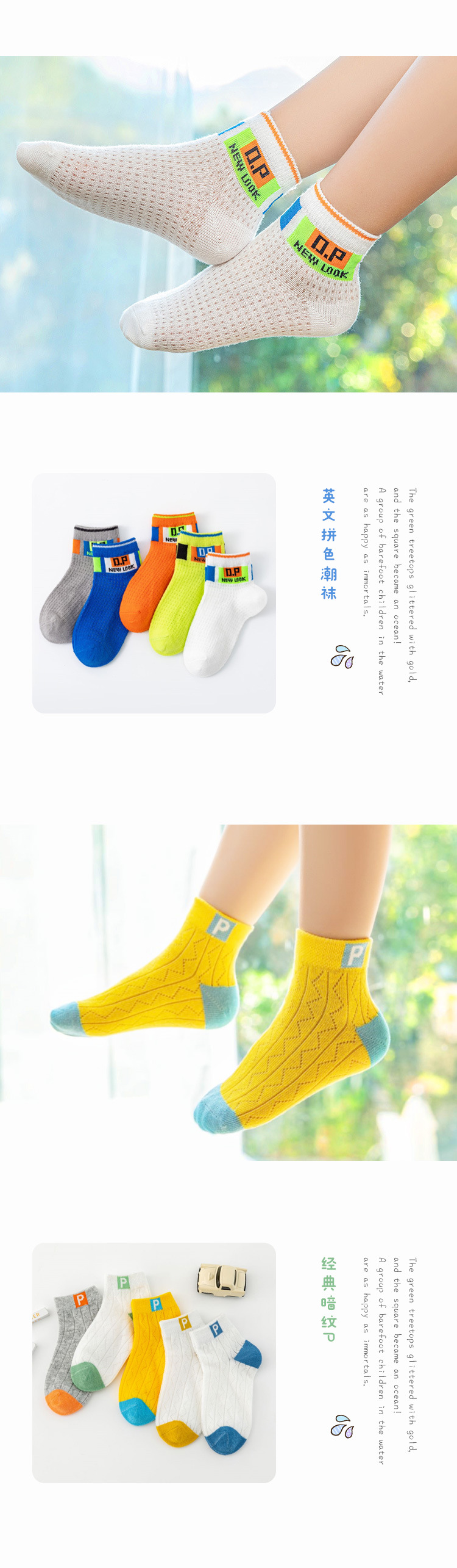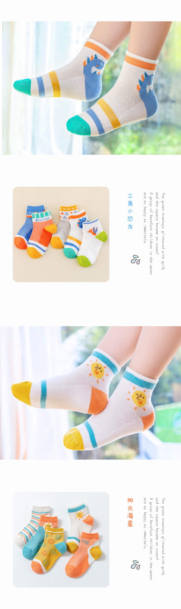 【5双装 甄选优质精梳棉 透气不勒脚】儿童袜子春夏网眼轻薄宝宝袜柔软吸汗男女童棉质短袜船袜