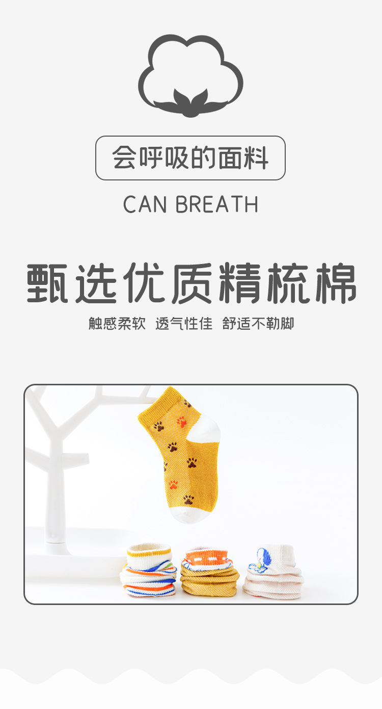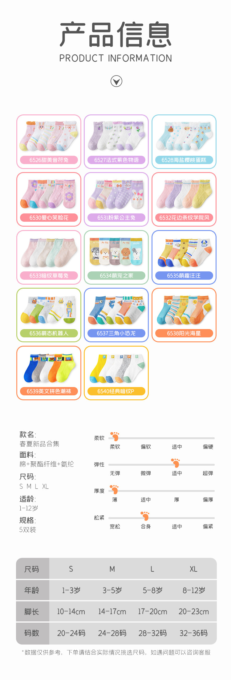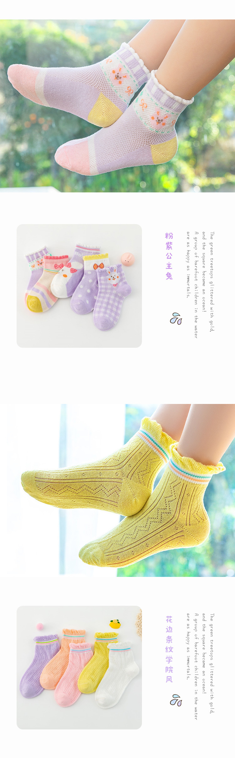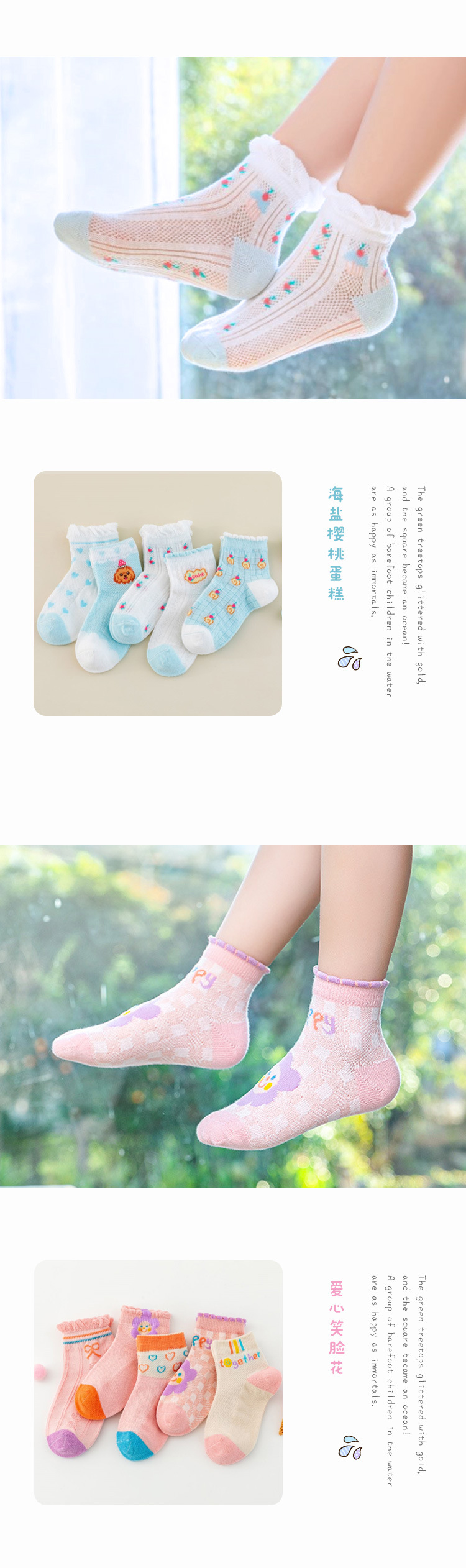 【5双装 甄选优质精梳棉 透气不勒脚】儿童袜子春夏网眼轻薄宝宝袜柔软吸汗男女童棉质短袜船袜