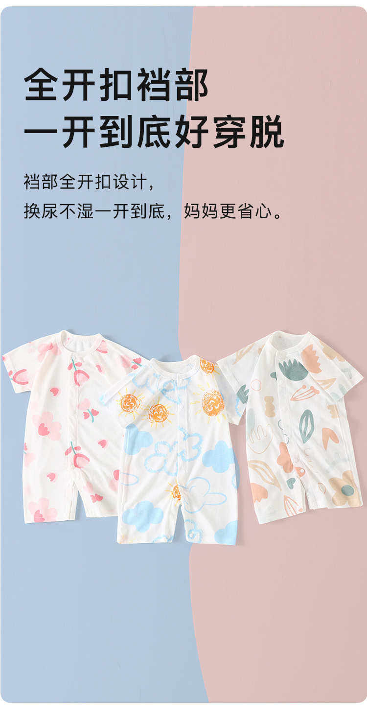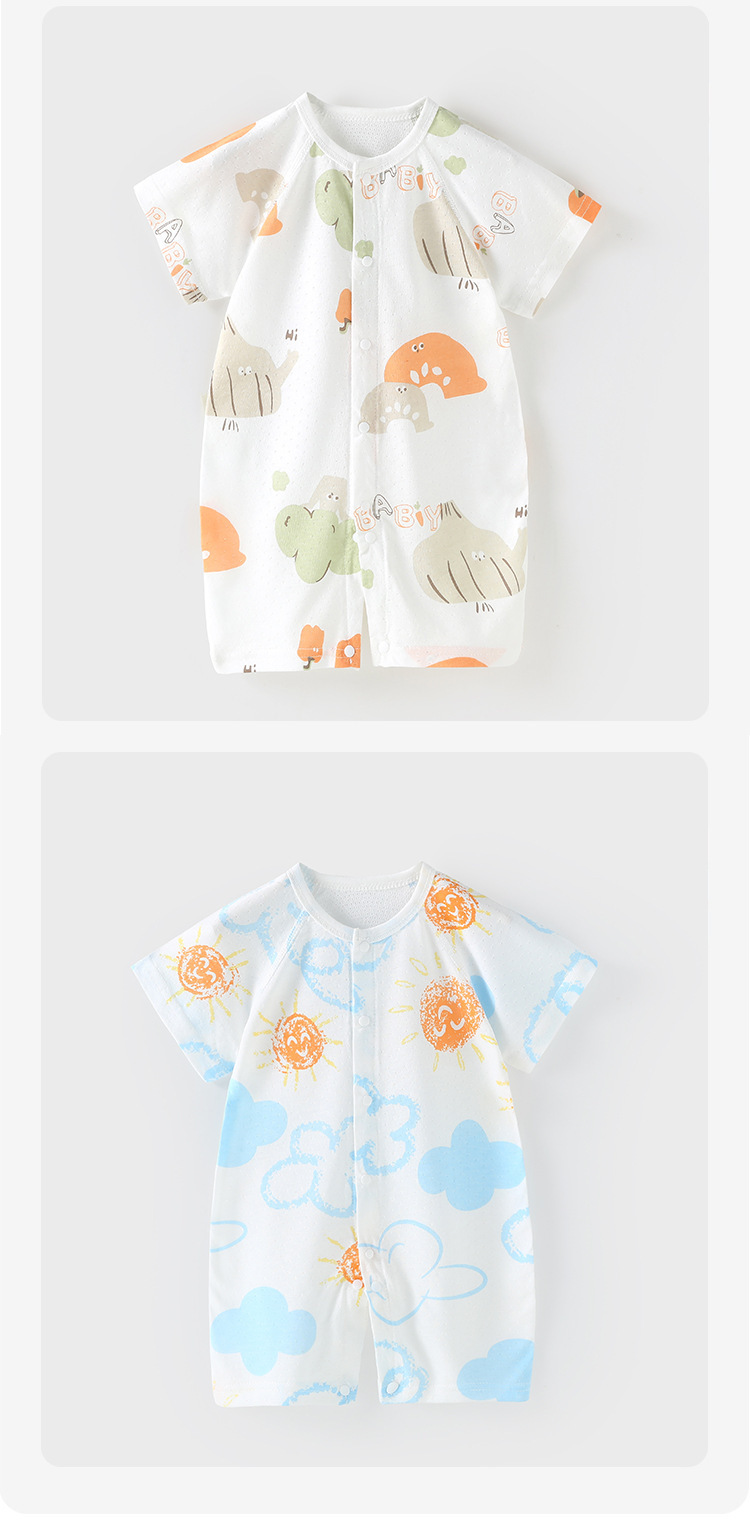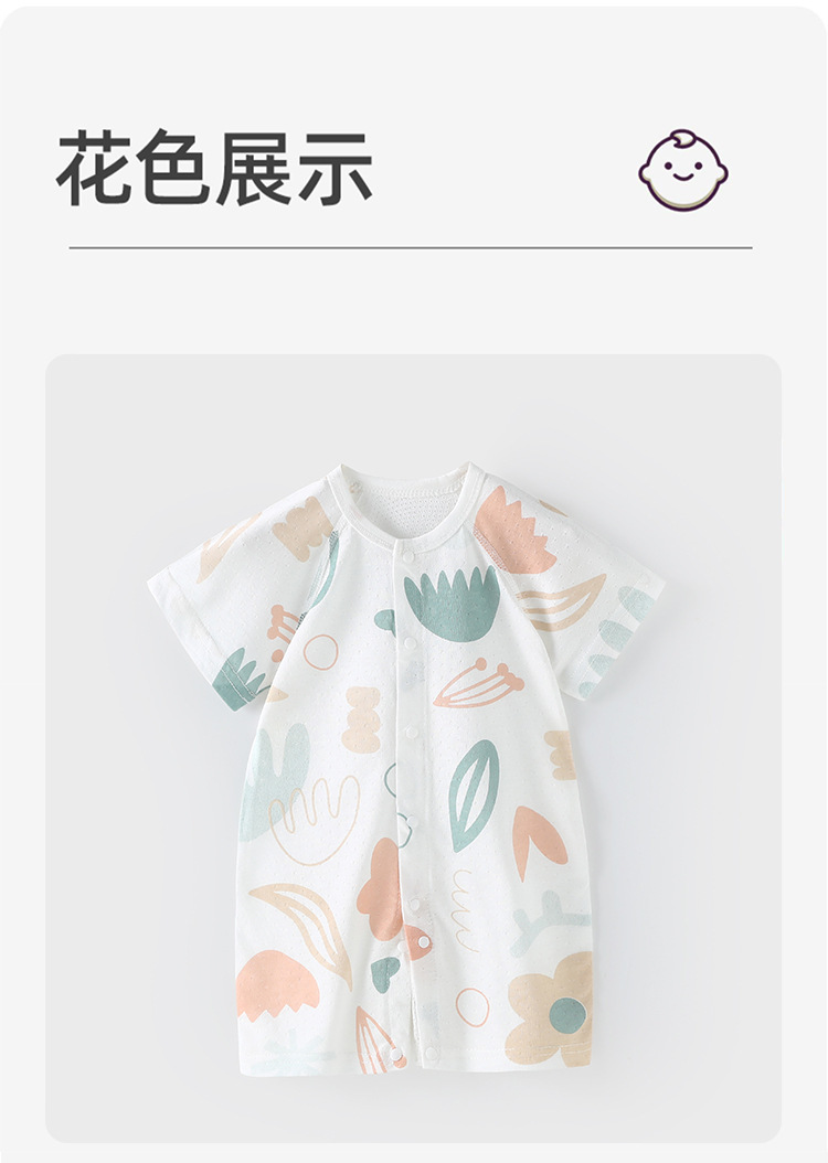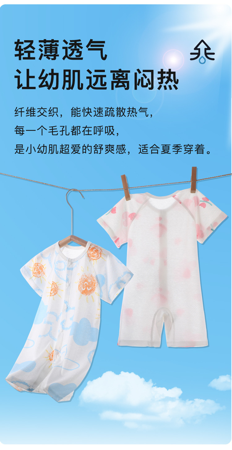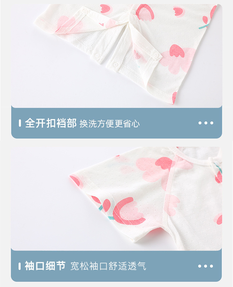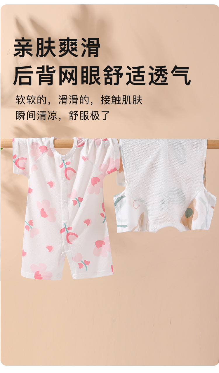 【AB双面 后背透气网眼清爽过夏】婴儿宝宝夏款透气网连体衣新生宝宝竹棉无骨开衫哈衣睡衣薄款短袖