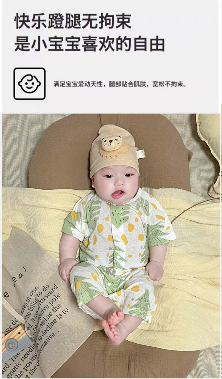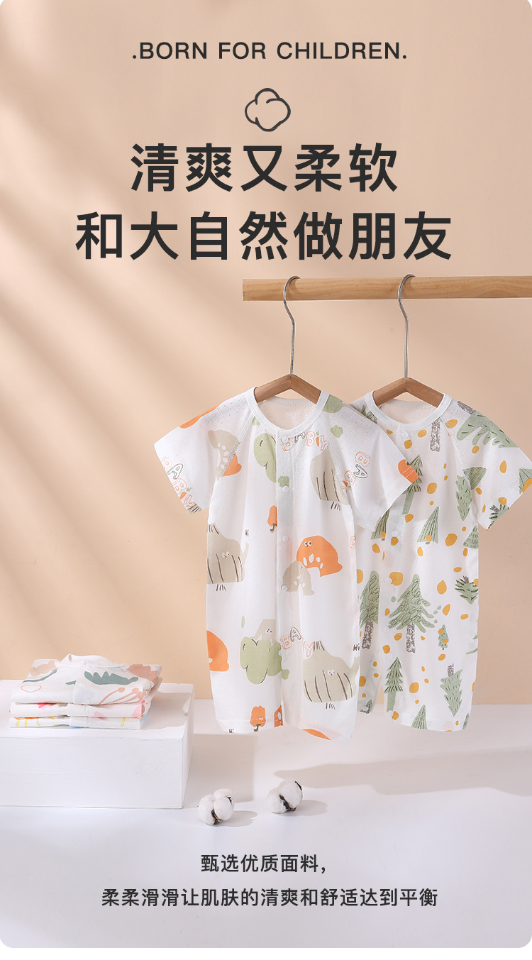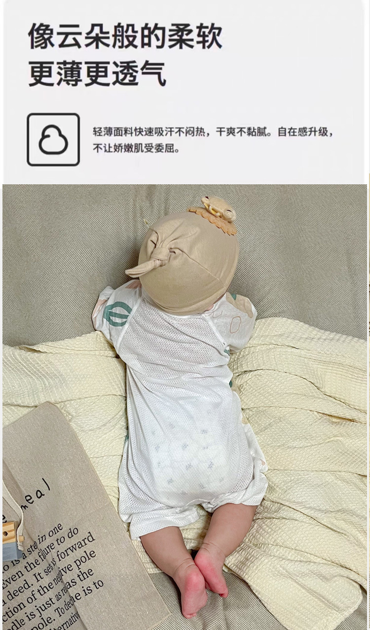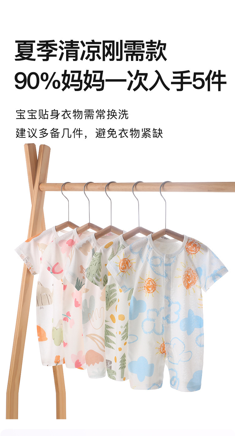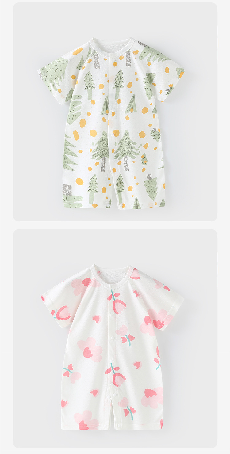 【AB双面 后背透气网眼清爽过夏】婴儿宝宝夏款透气网连体衣新生宝宝竹棉无骨开衫哈衣睡衣薄款短袖