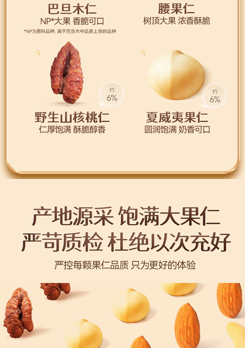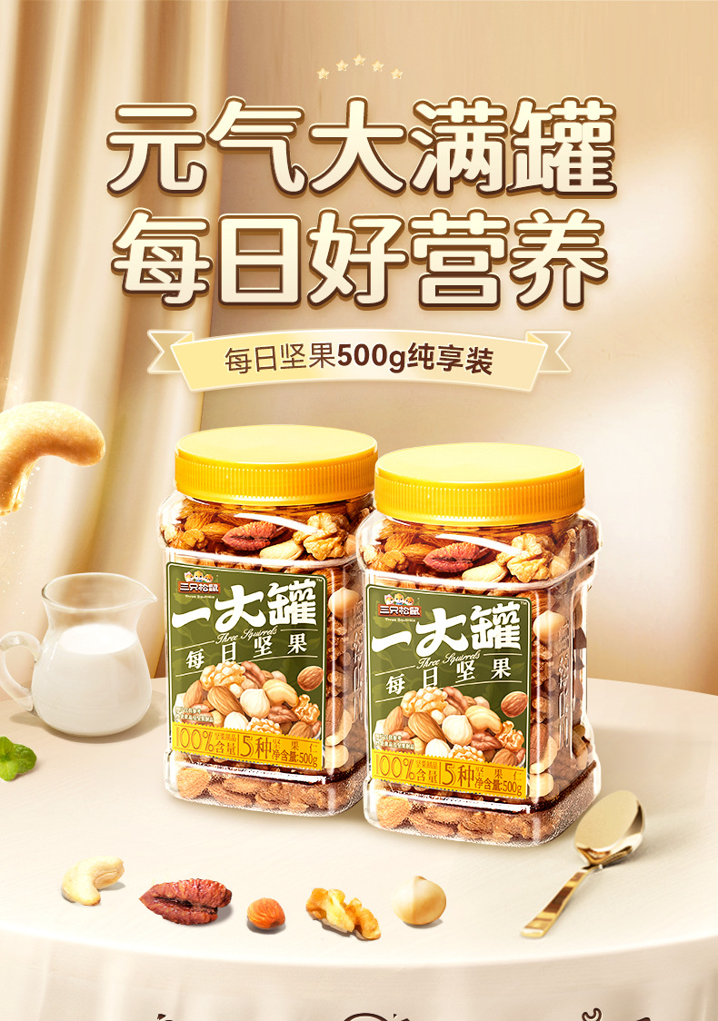 【三只松鼠罐装全坚果纯享款500g】0添加每日混合坚果健康大礼包