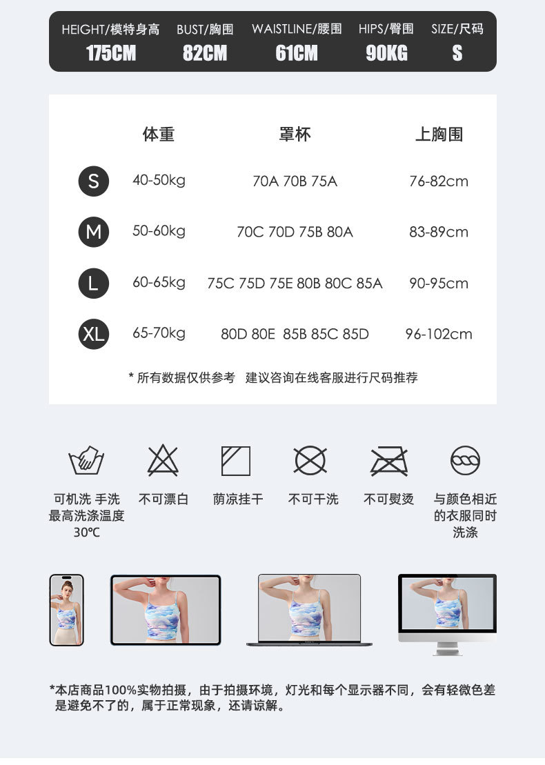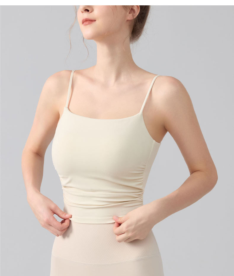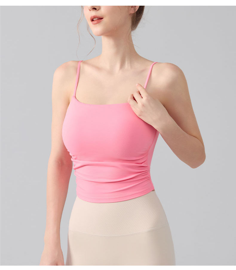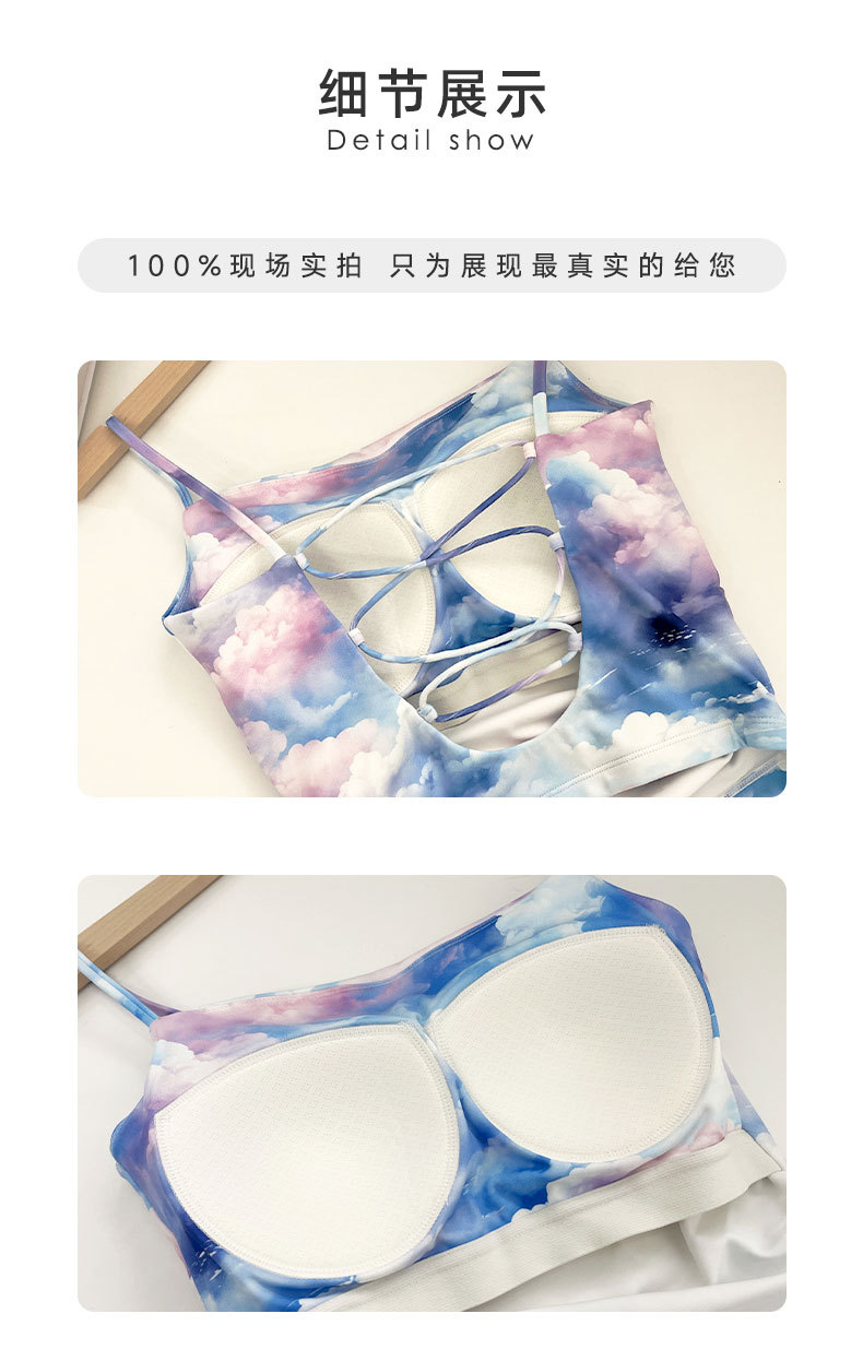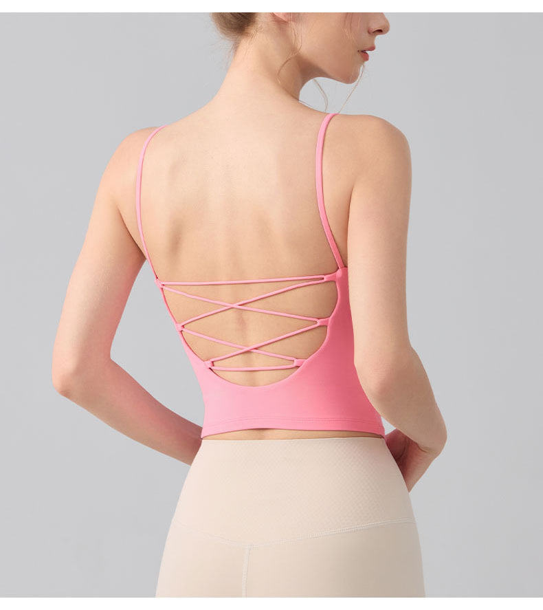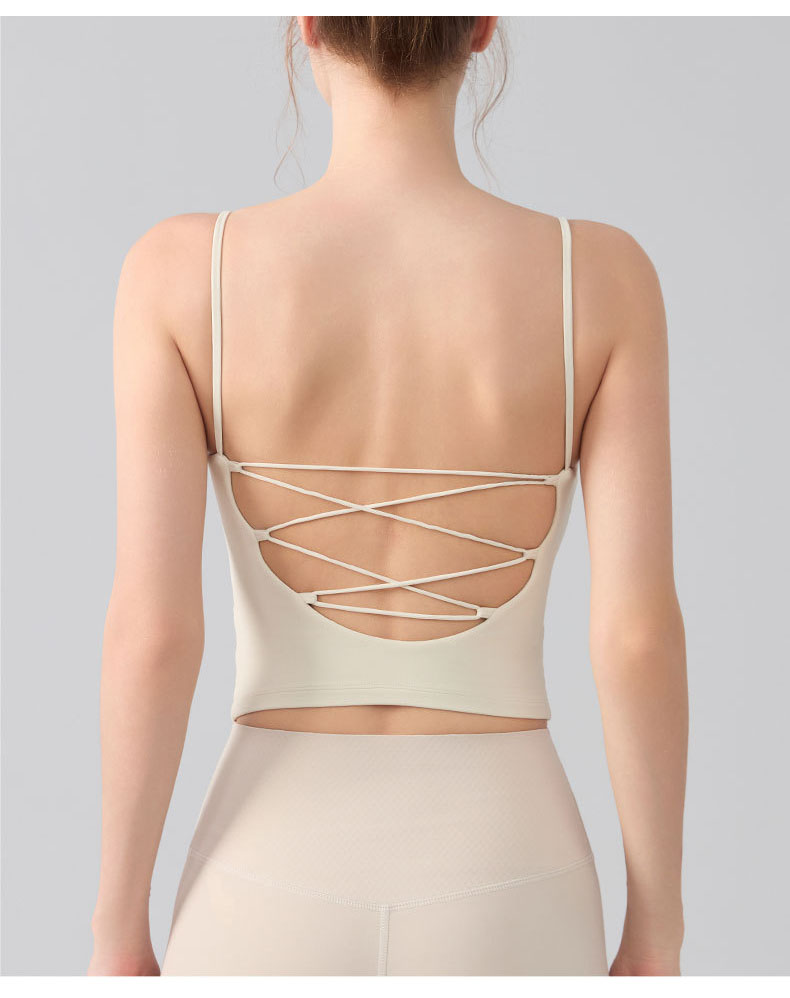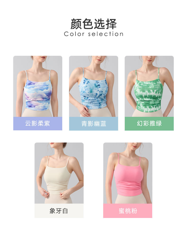 跃牌【海听系列】夏季减震聚拢吊带一体式带胸垫细带交叉美背运动印花背心XC82
