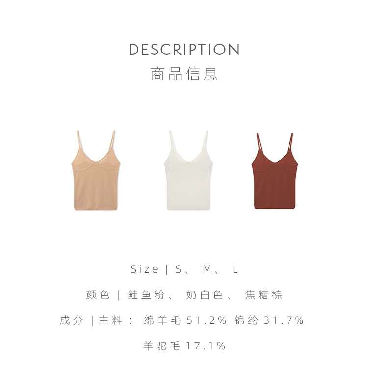 Her Senses|时装 12WTT31K1 V领吊带背心 [ 奶油白WH08 / 鲑鱼粉PK07 / 焦糖棕BR18 ]